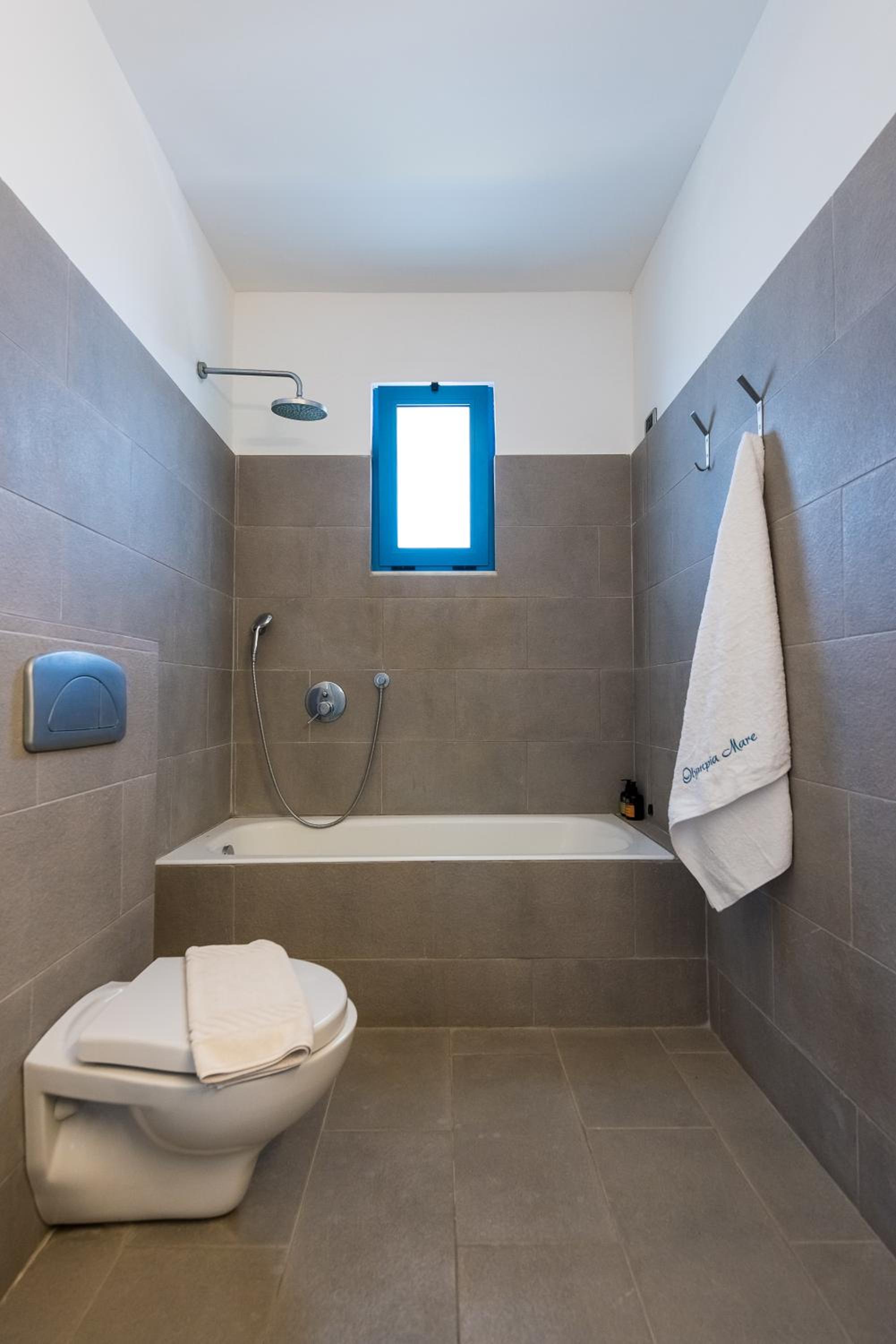 Beachfront Relaxation: Enjoy the convenience of a beautiful sandy beach just steps away from your serviced apartment at Olympia Mare. Spend your days swimming in the Aegean Sea and watching magical sunsets in the evenings.