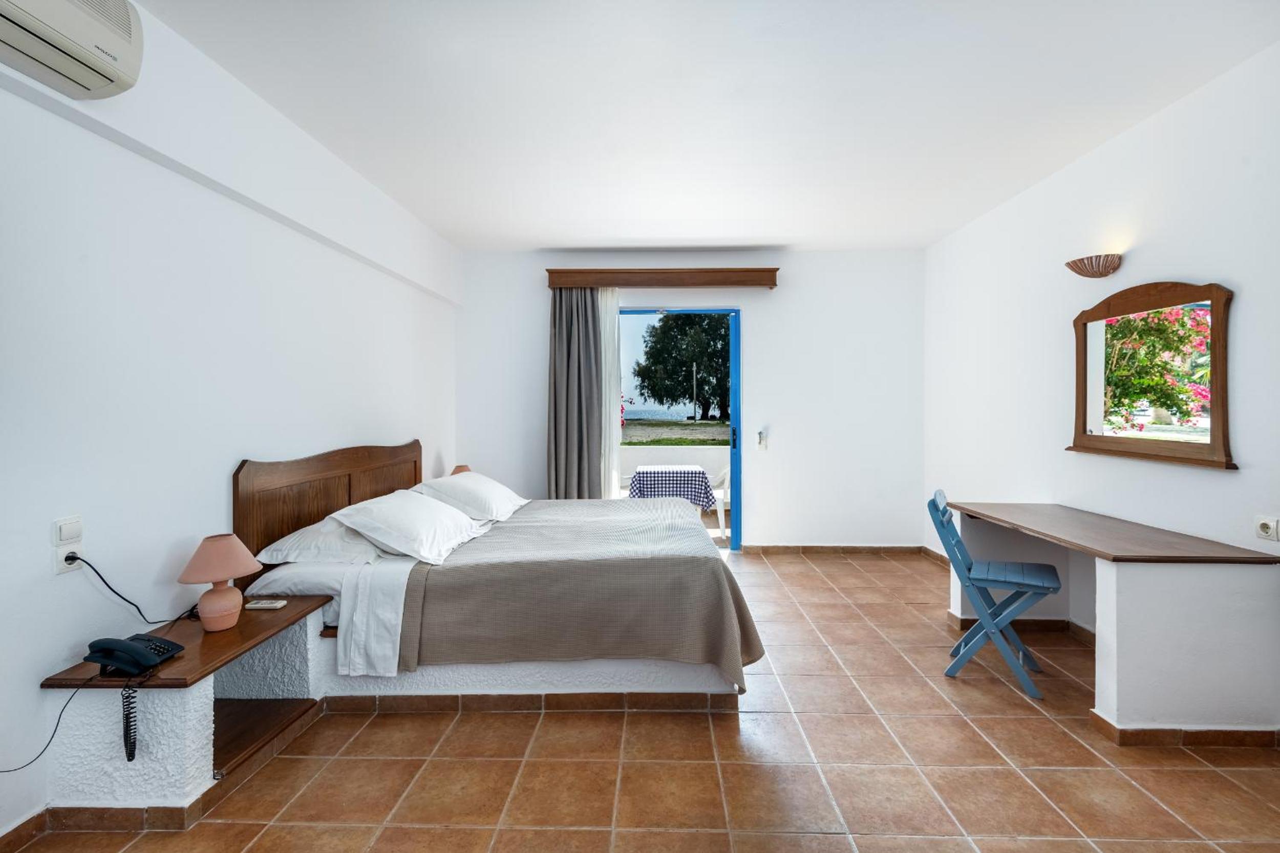 This place is amazing, I'd recommend to anyone and would love to come back. Nikos is a very kind host and gave us a great list of recommendations for places to eat and drink nearby (all of which were delicious). The room is so spacious and always kept very clean and tidy! There is a private beach right in front of the hotel, no need to cross the road to access it, and you can just sit on any of the loungers choosing to lay in the sun or under the shade of the trees. View from the room is amazing and the little balcony is a perfect place to eat while enjoying the scenery and a sea breeze. Would highly recommend renting a car for easy trip to the local town Kardamena and to explore other places in the island such as the natural thermal springs!