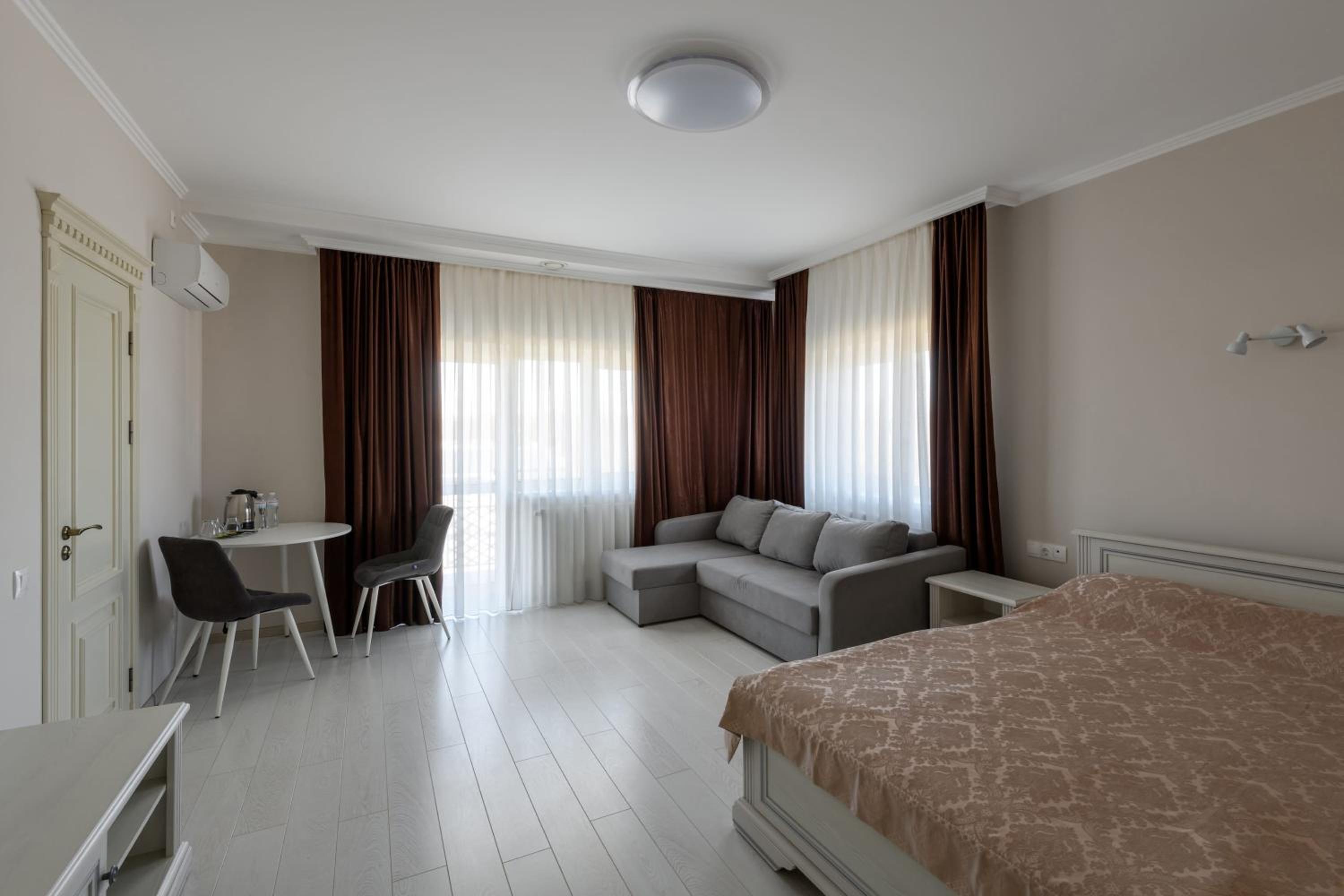 Experience comfort and style at Sagora Hotel in Chernivtsi. Enjoy spacious rooms with modern amenities like air conditioning, flat-screen TVs, and free toiletries.