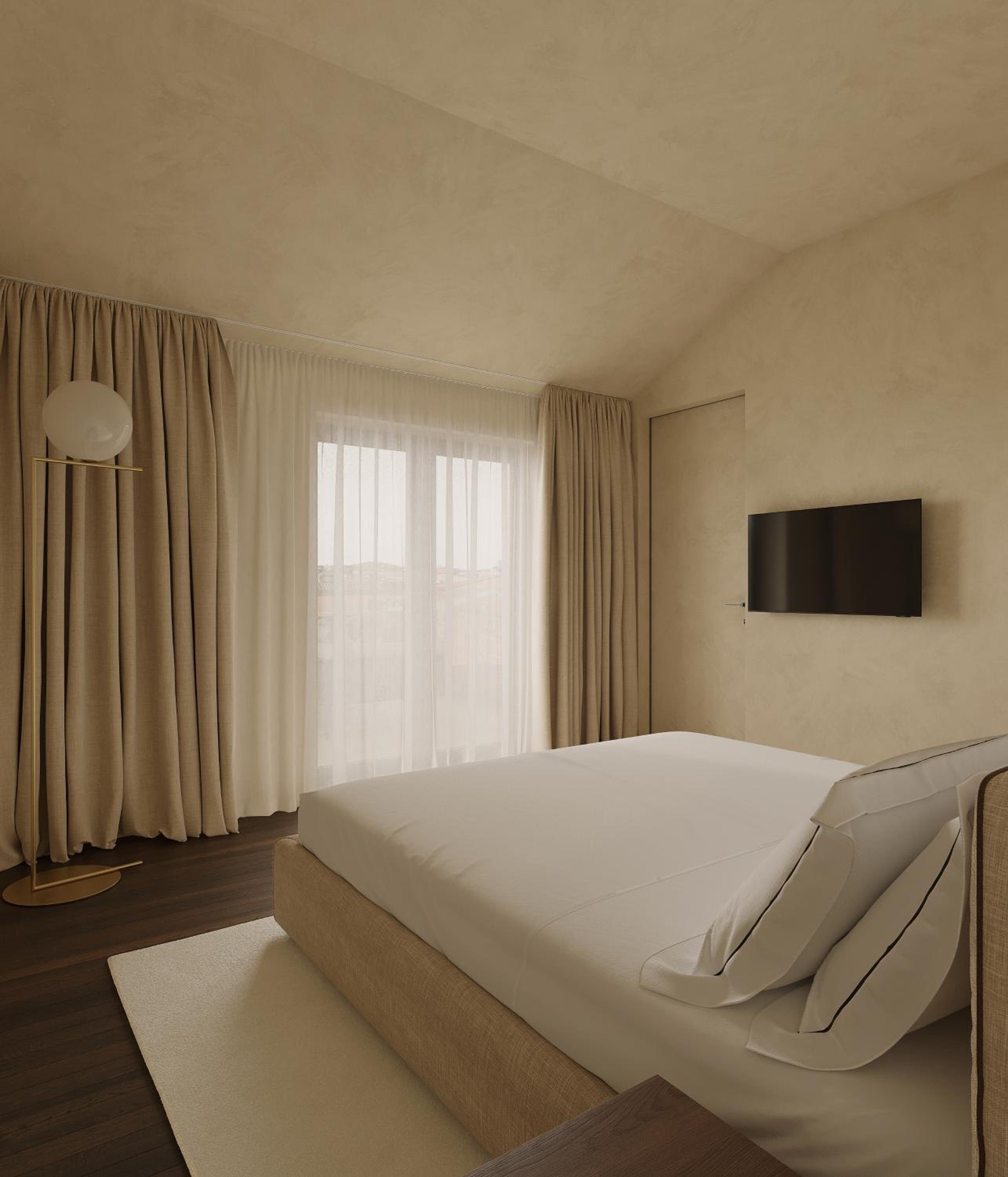 Die Zimmer sind elegant, sehr sauber und liebevoll gestaltet – eine perfekte Kombination aus modernem Komfort und italienischem Charme. Das Frühstück ist eher klein, bietet aber alles, was man für einen guten Start in den Tag braucht. Getränke sind den ganzen Tag über frei zugänglich und kostenlos erhältlich, und abends gibt es kleine Snacks und Wein, was den Aufenthalt besonders angenehm macht.