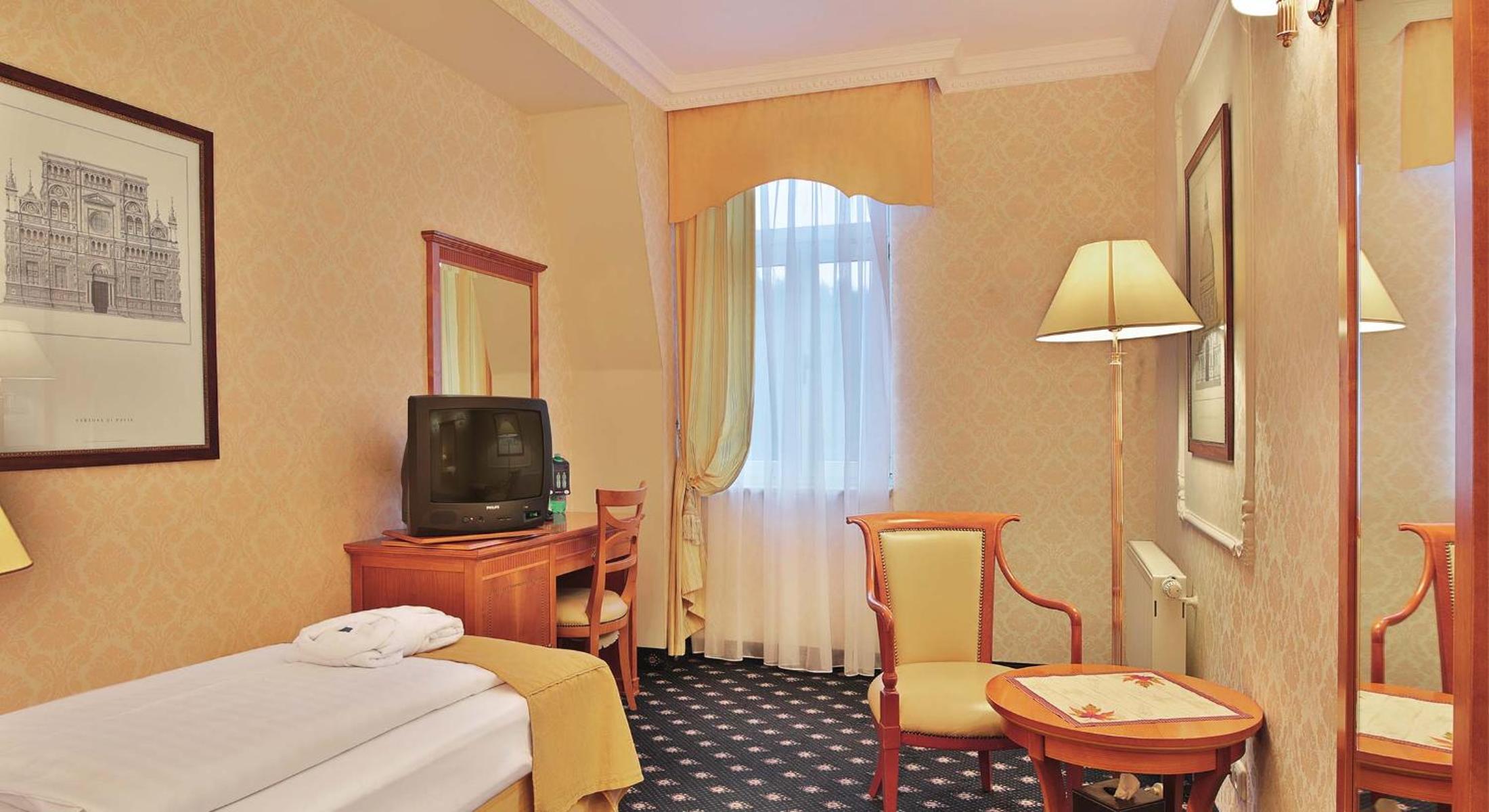 Experience the allure of the spa Belvedere Wellness Hotel, a historic gem in Marianské Lázně with a rich legacy dating back to 1838. Once owned by the esteemed Dr. Tadeáš Klinger, the hotel exudes prestige and sophistication, offering a glimpse into the past with its original Italian furniture and grand architecture.