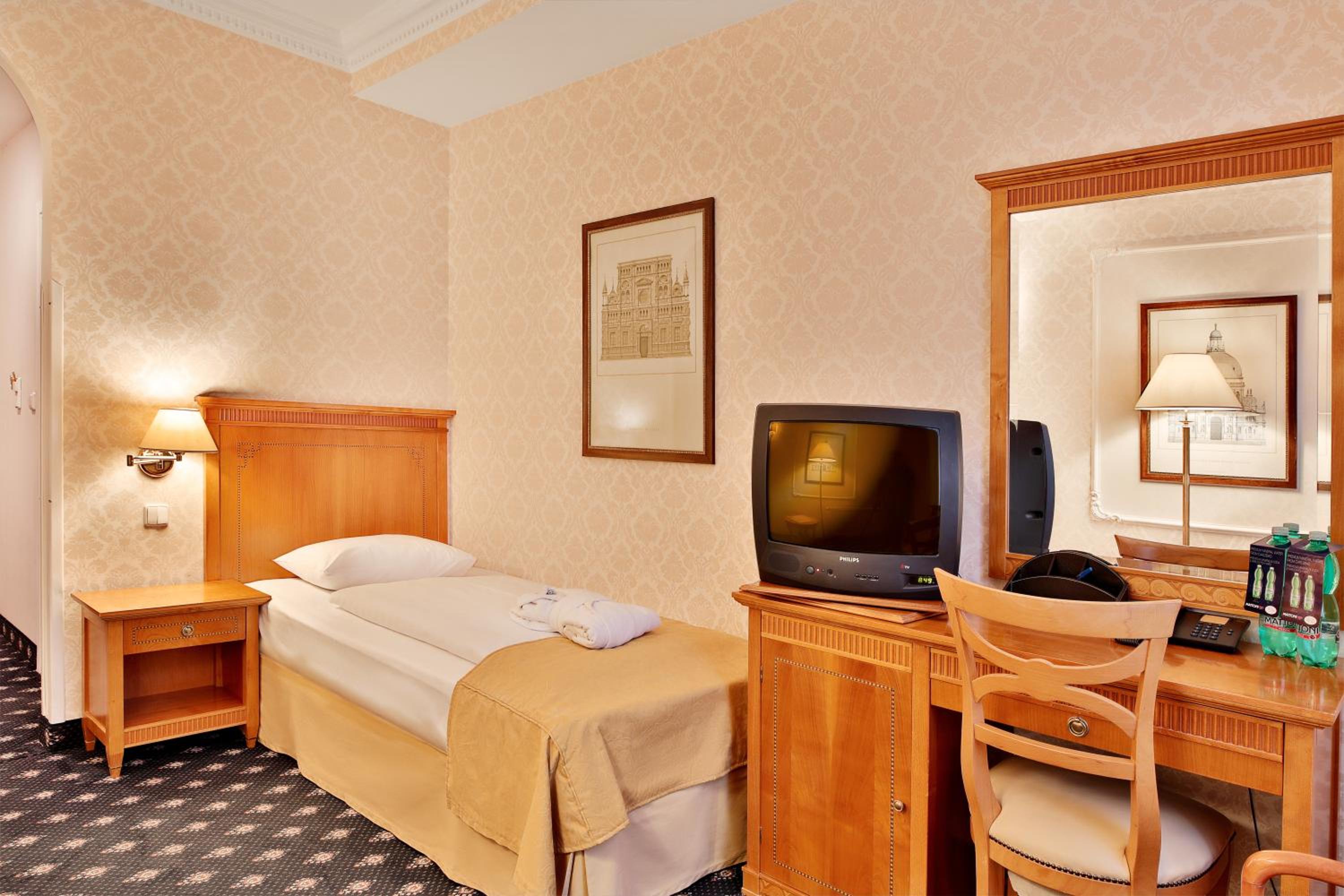 Indulge in comfort and style in the hotel's well-appointed rooms, where modern amenities blend seamlessly with historic charm. Although spa facilities are temporarily closed, guests can still enjoy a delightful stay with accommodation and breakfast services, with additional amenities available at the nearby sister-hotel Sun Palace Spa & Wellness.