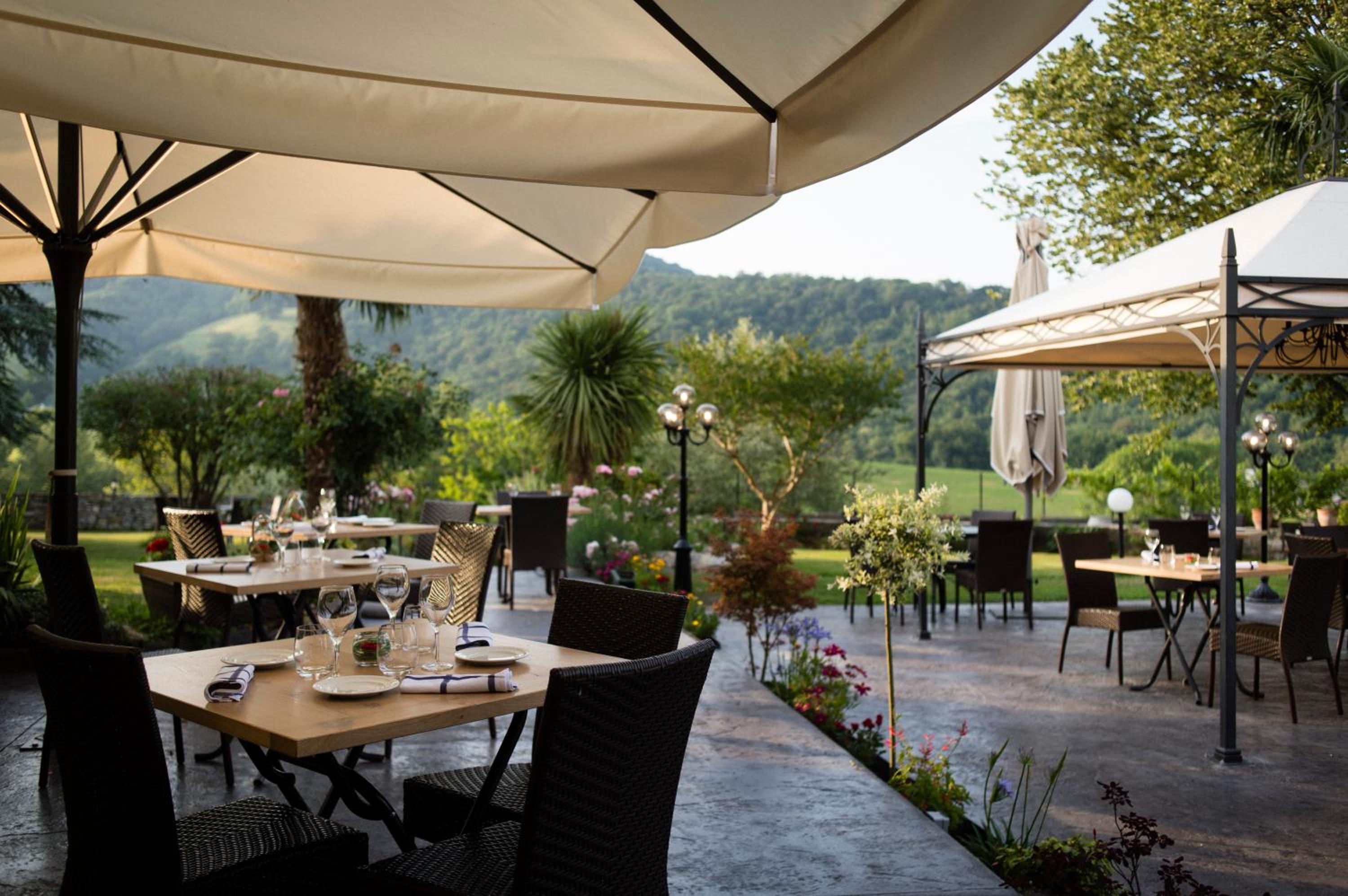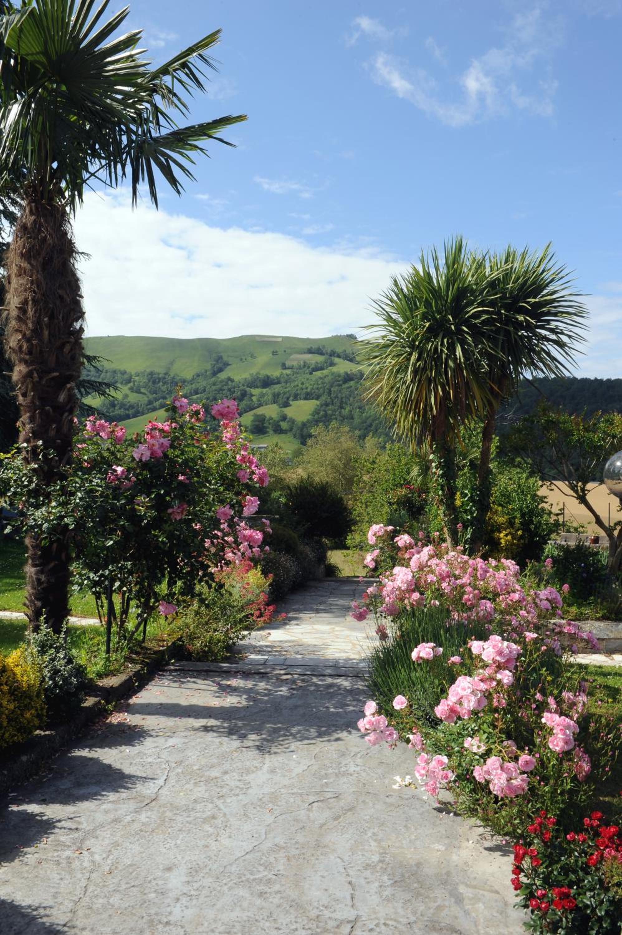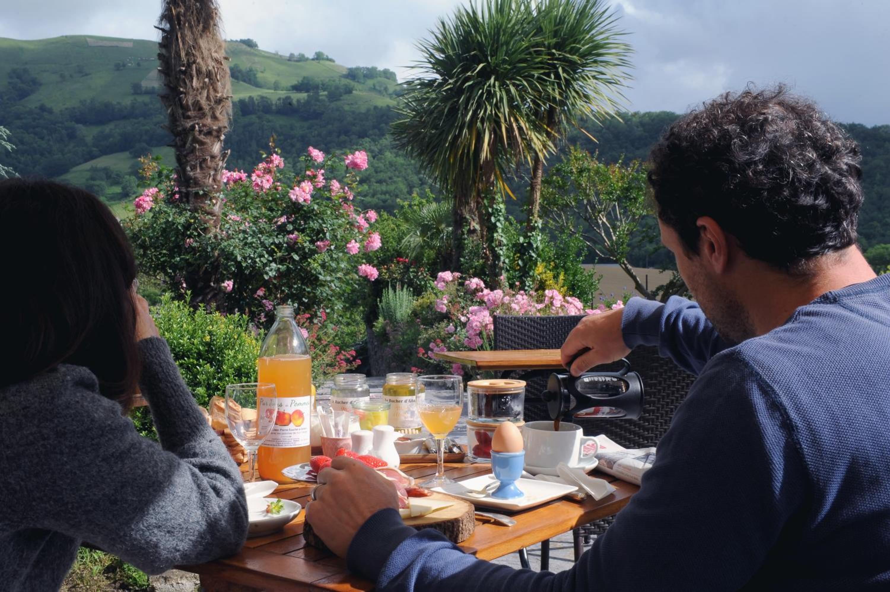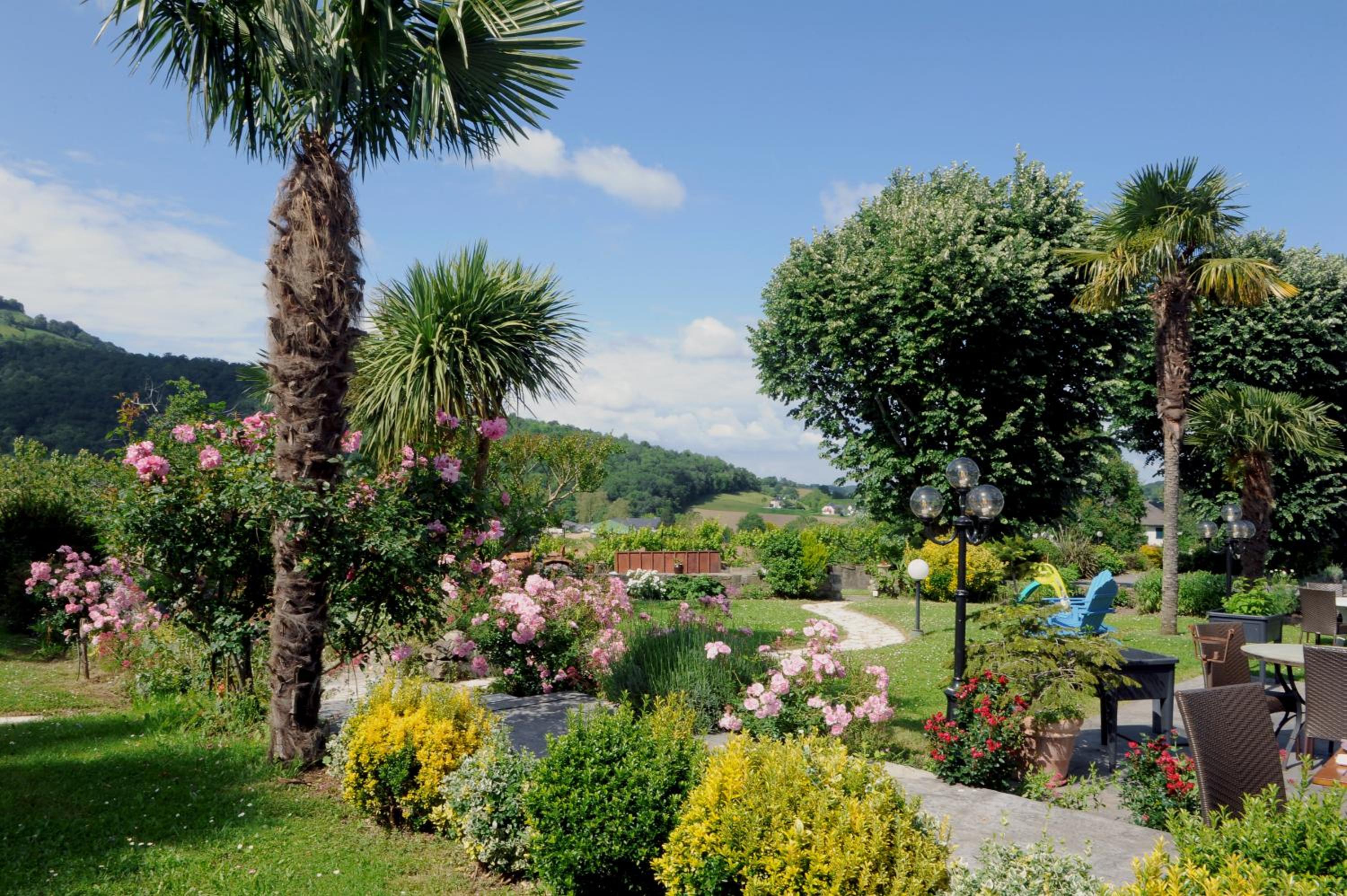 Scenic Surroundings: Nestled in the heart of the mountains in Barcus, Hotel Restaurant Chilo offers a serene escape with a picturesque tree-lined garden and a refreshing swimming pool.