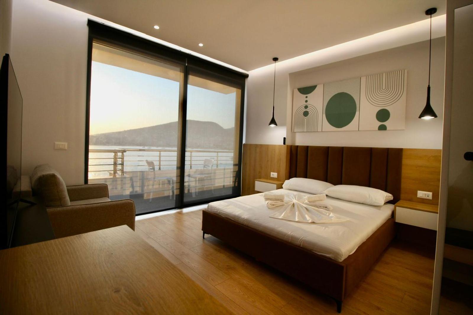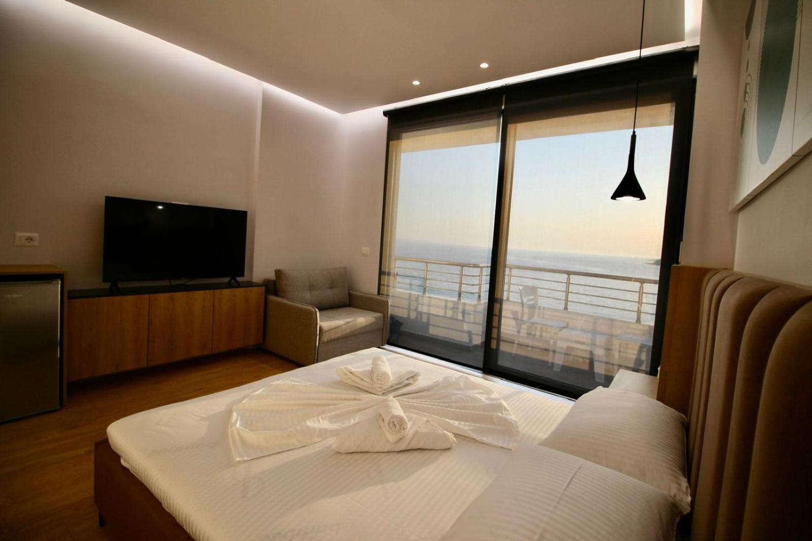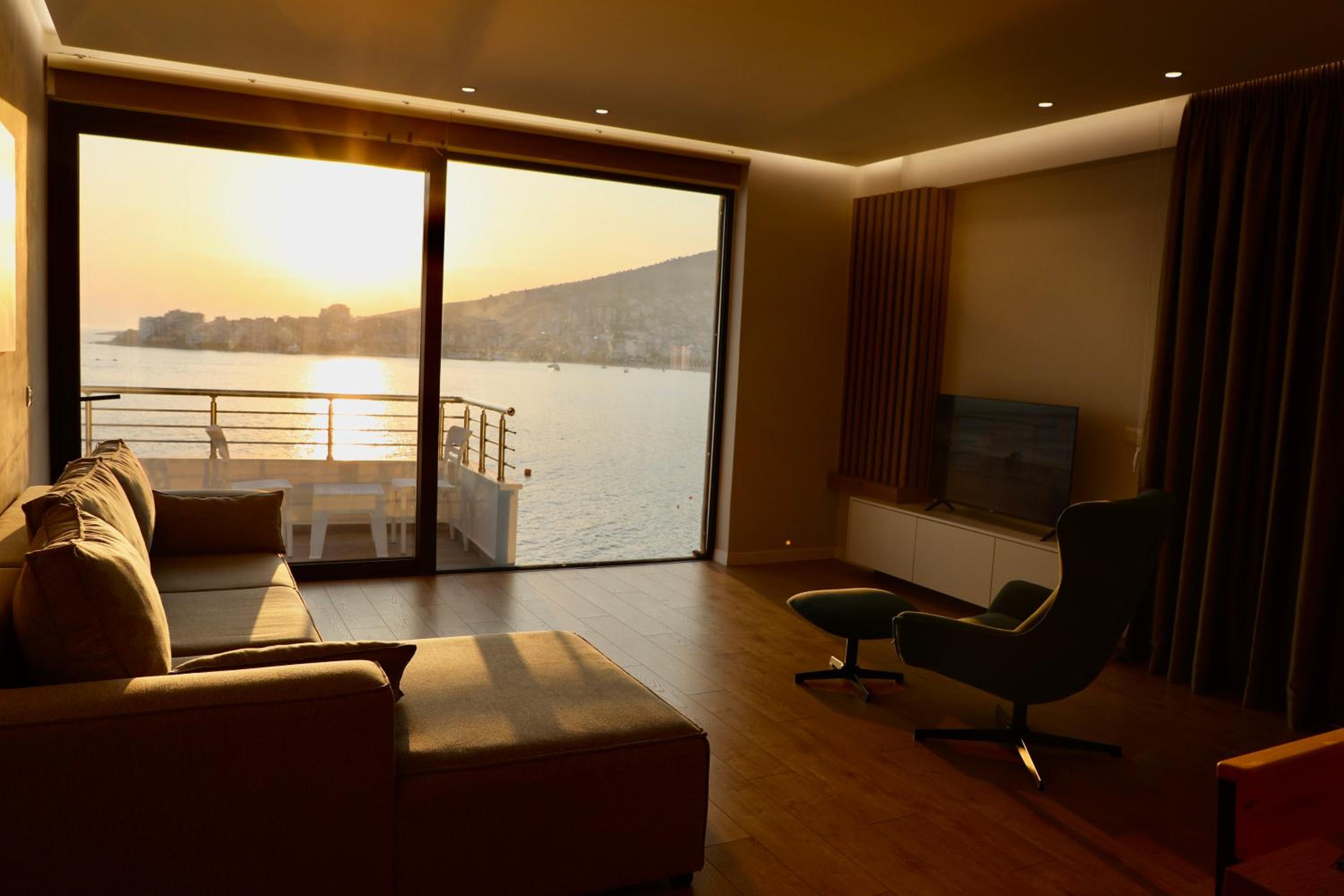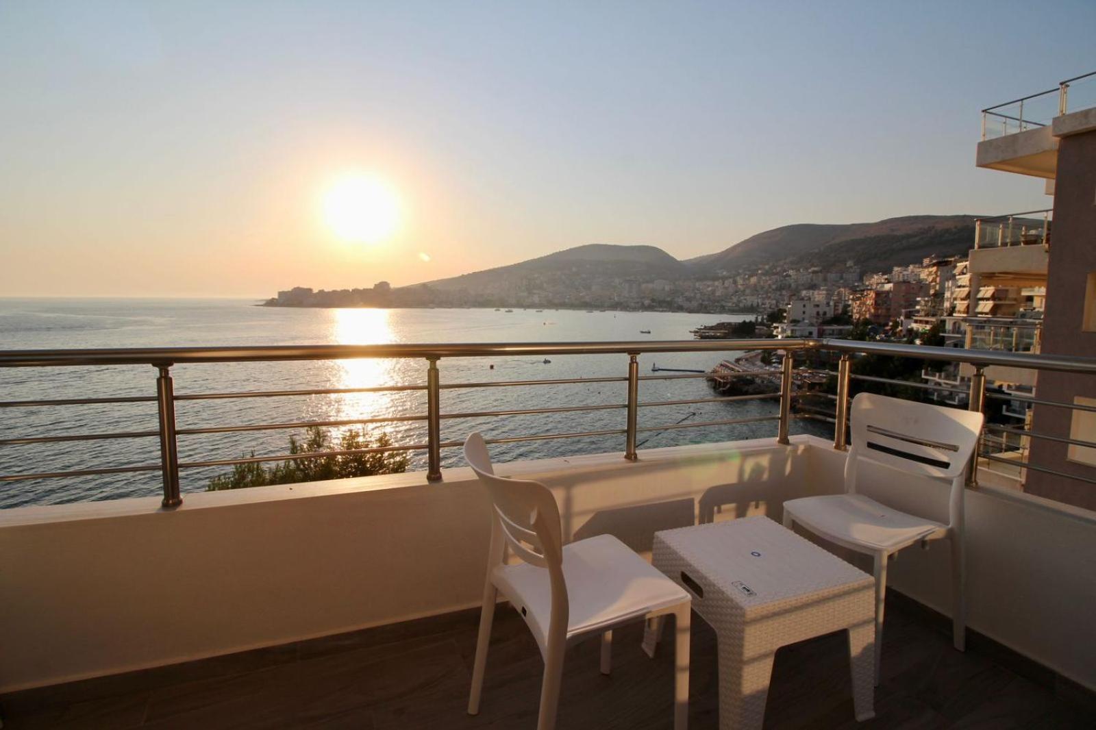 Très moderne …. une vue époustouflante sur la baie de Saranda…. Commerces, Restaurants au pied de la résidence…. accueil, très chaleureux et bienveillant de l’hôte….. petit déjeuner buffet magnifique…. Sur terrasse, donnant sur la baie…. Vue sur mer…. je recommande…