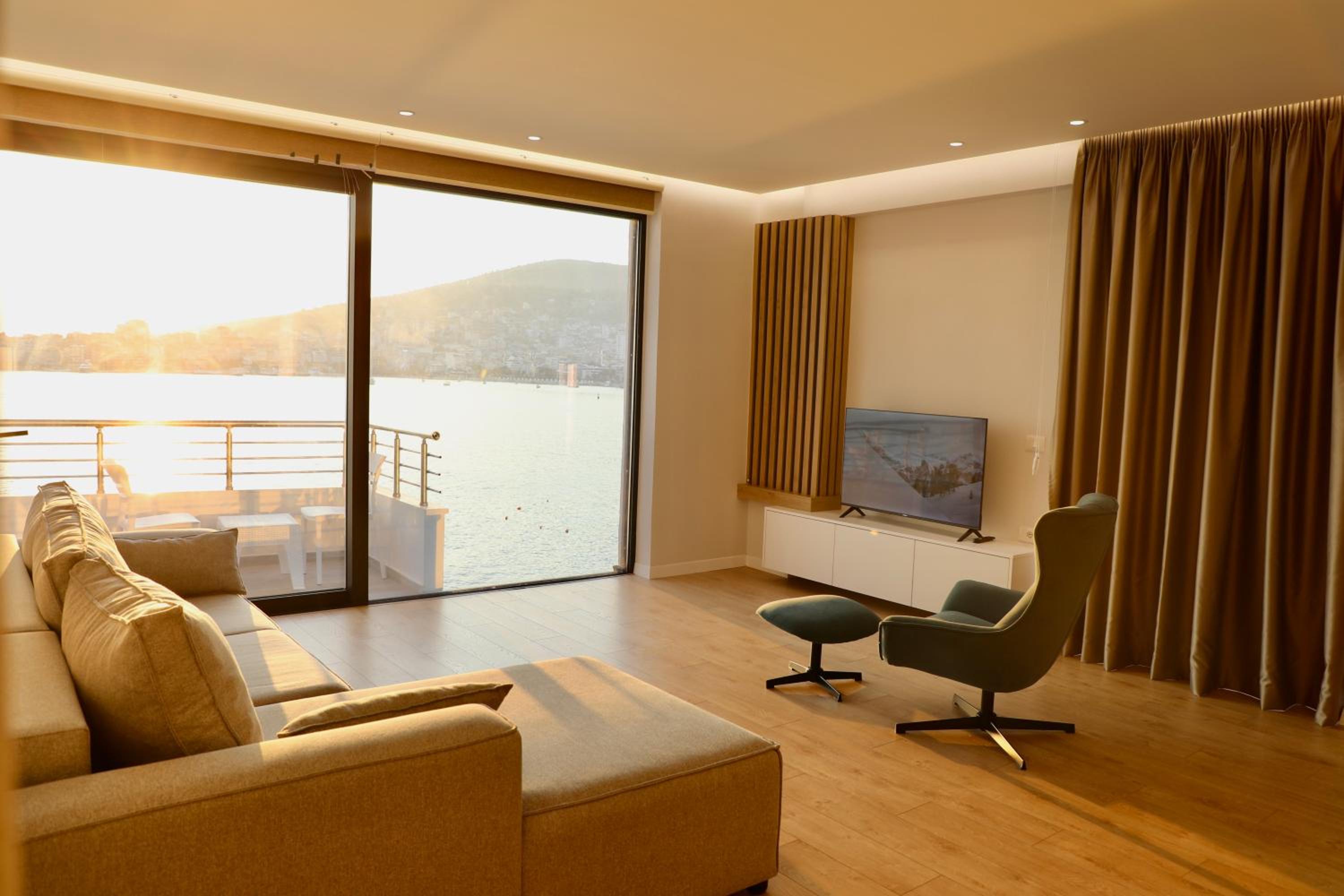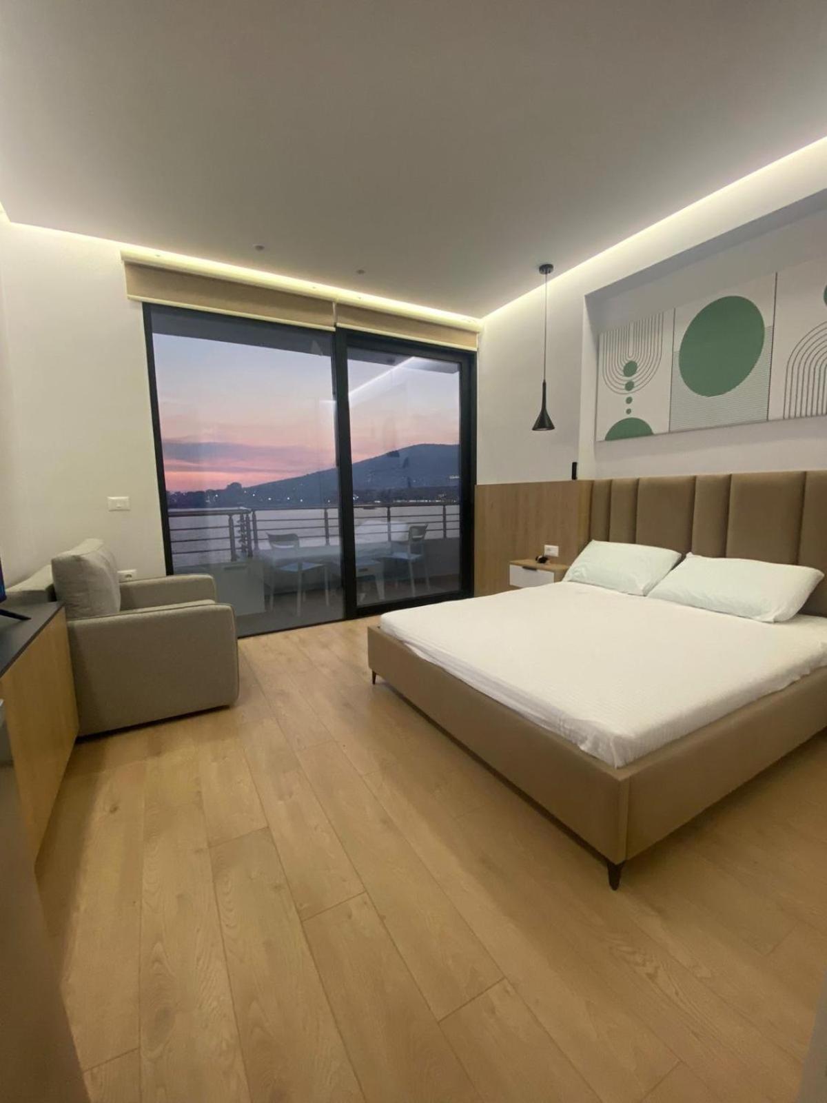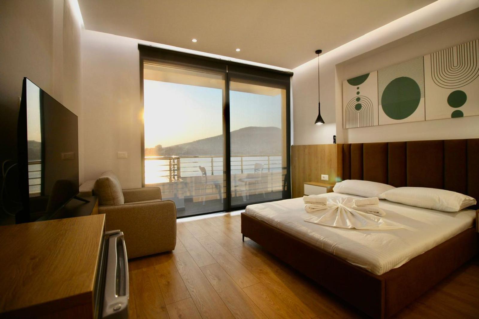 Très moderne …. une vue époustouflante sur la baie de Saranda…. Commerces, Restaurants au pied de la résidence…. accueil, très chaleureux et bienveillant de l’hôte….. petit déjeuner buffet magnifique…. Sur terrasse, donnant sur la baie…. Vue sur mer…. je recommande…