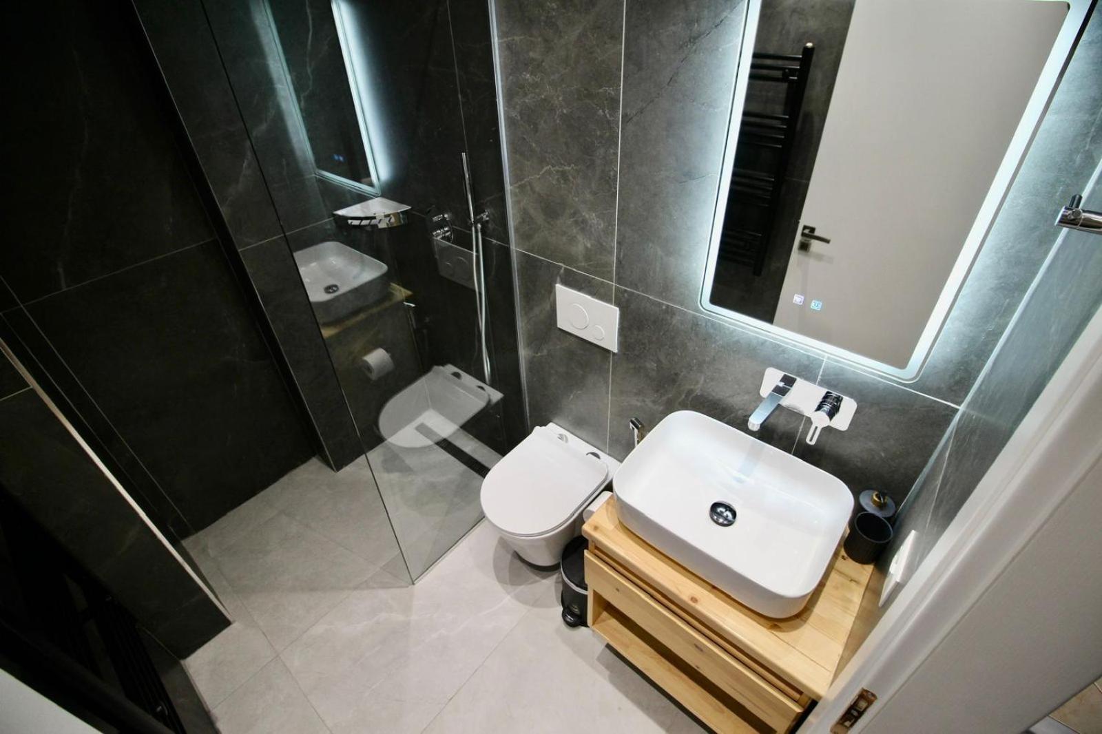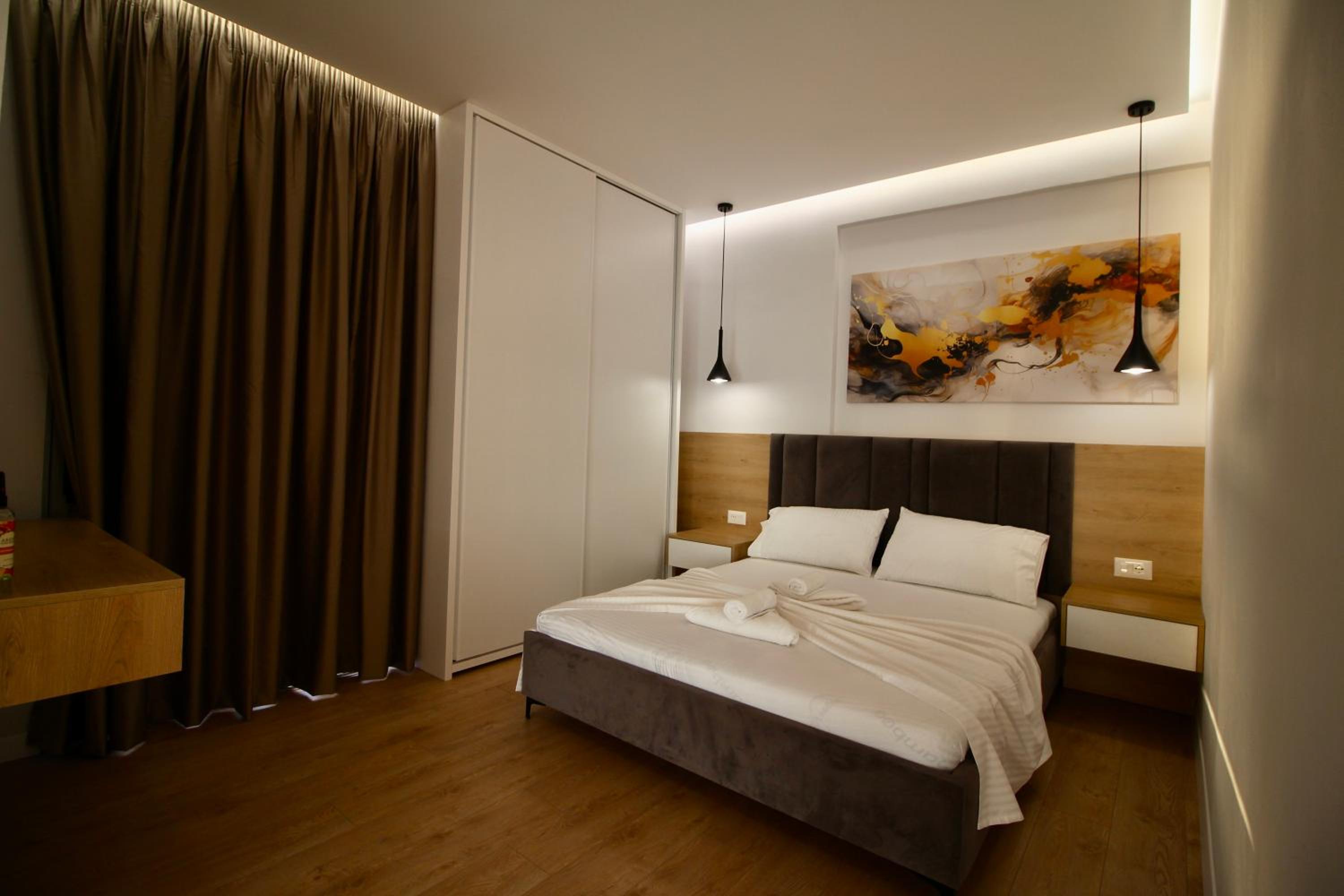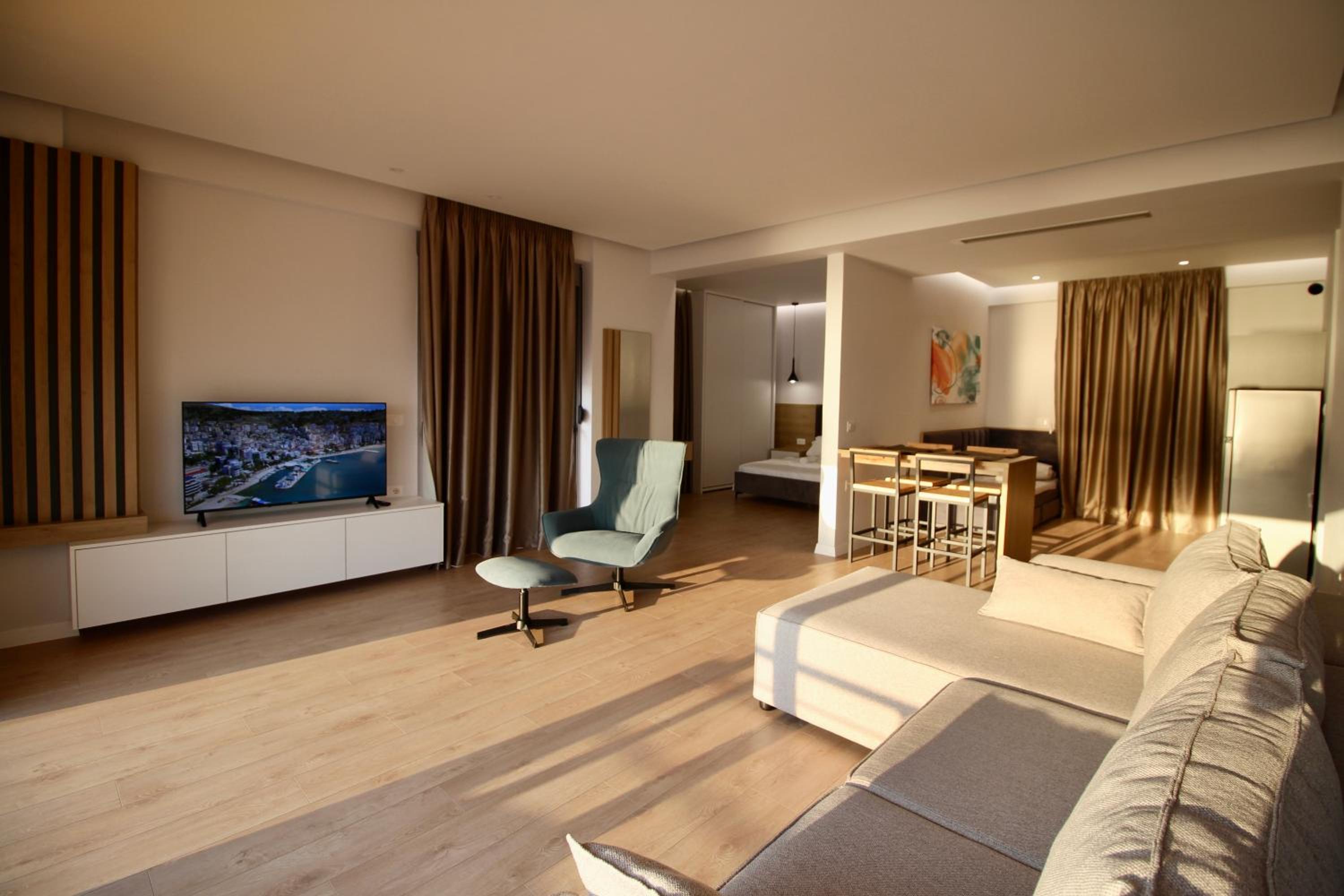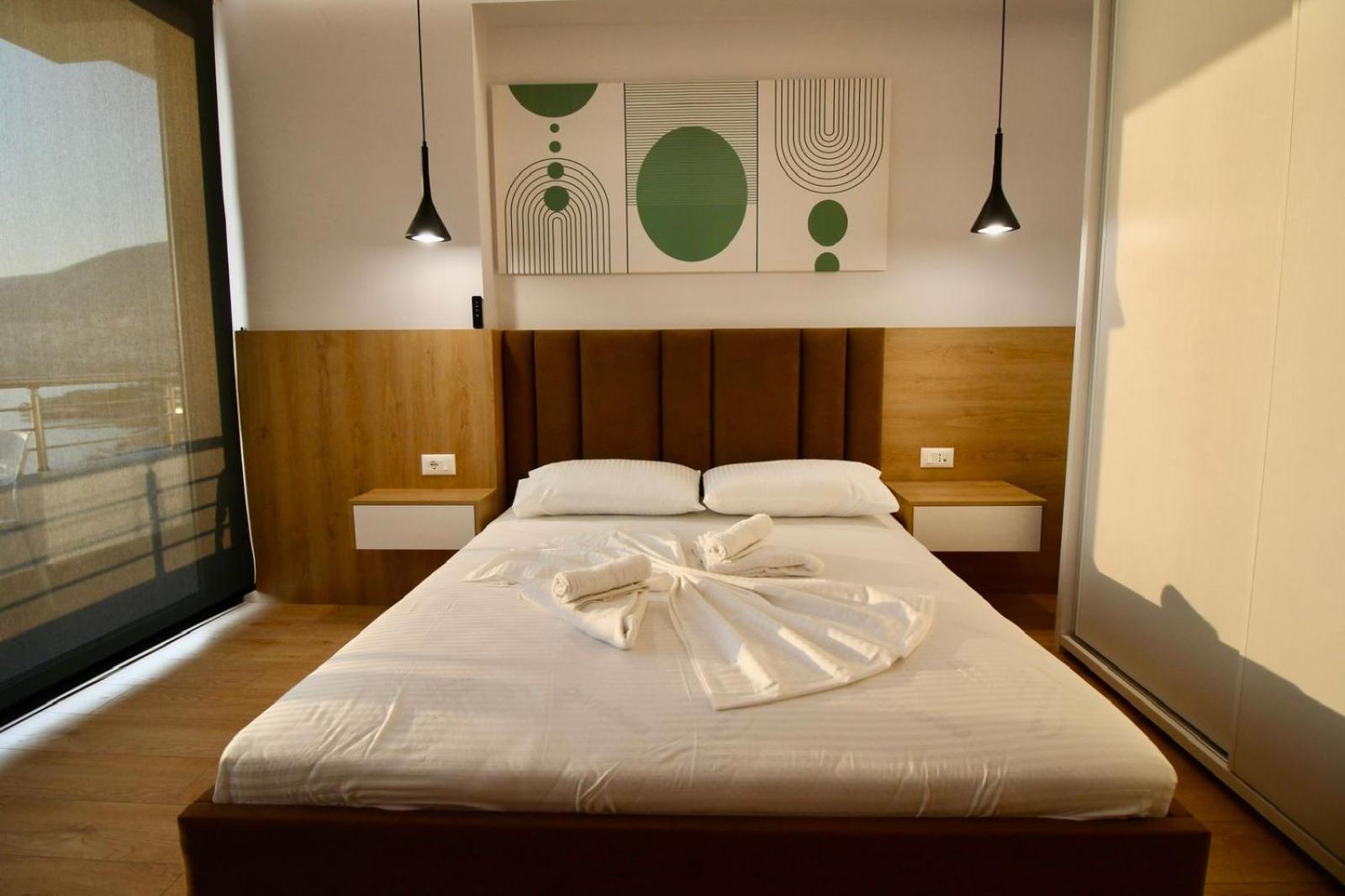 Très moderne …. une vue époustouflante sur la baie de Saranda…. Commerces, Restaurants au pied de la résidence…. accueil, très chaleureux et bienveillant de l’hôte….. petit déjeuner buffet magnifique…. Sur terrasse, donnant sur la baie…. Vue sur mer…. je recommande…