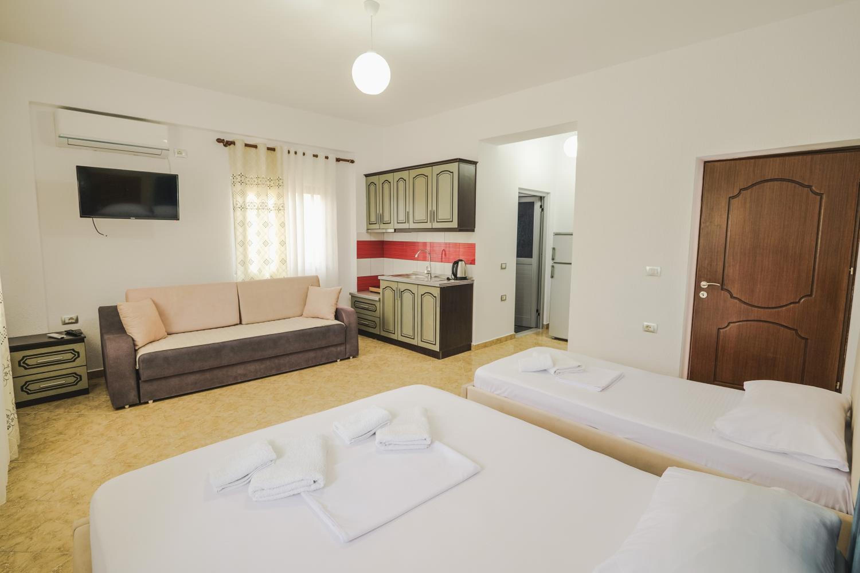 Its a brand new hotel it looks amazing it exceeded my expectations,l was booked in for 5 days of chill time in Ksamil that's exactly what l got,the breakfast was actually really nice,the people who run it were lovely,the room was spotless clean,hotel was about 10 minutes if that walk to the beach,it was exactly what wanted and l would stay again! You can also pay card which is super rare around Ksamil!