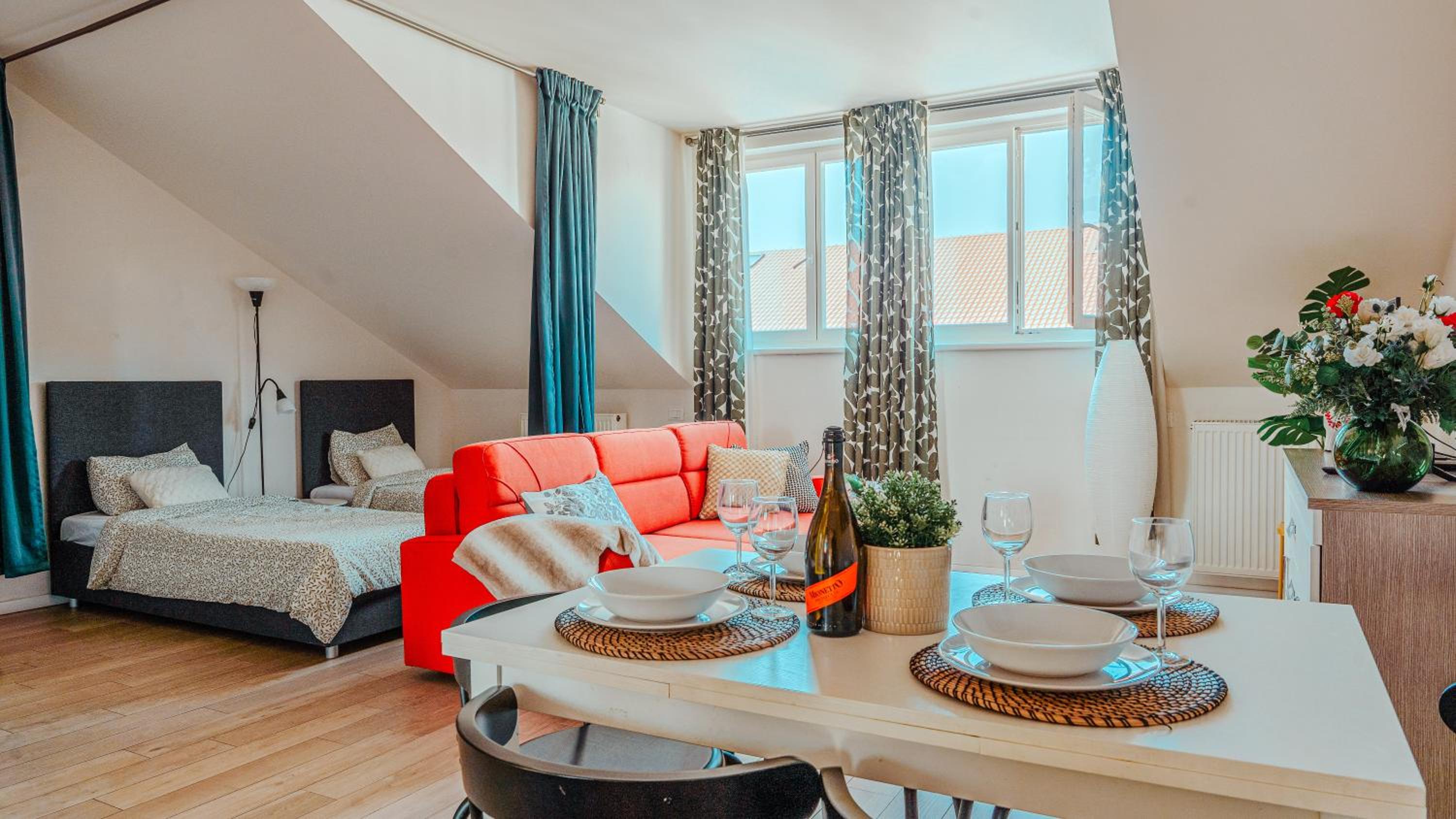 Výborné umístění, čisté a velmi prostorný apartmán se vším vybavením.