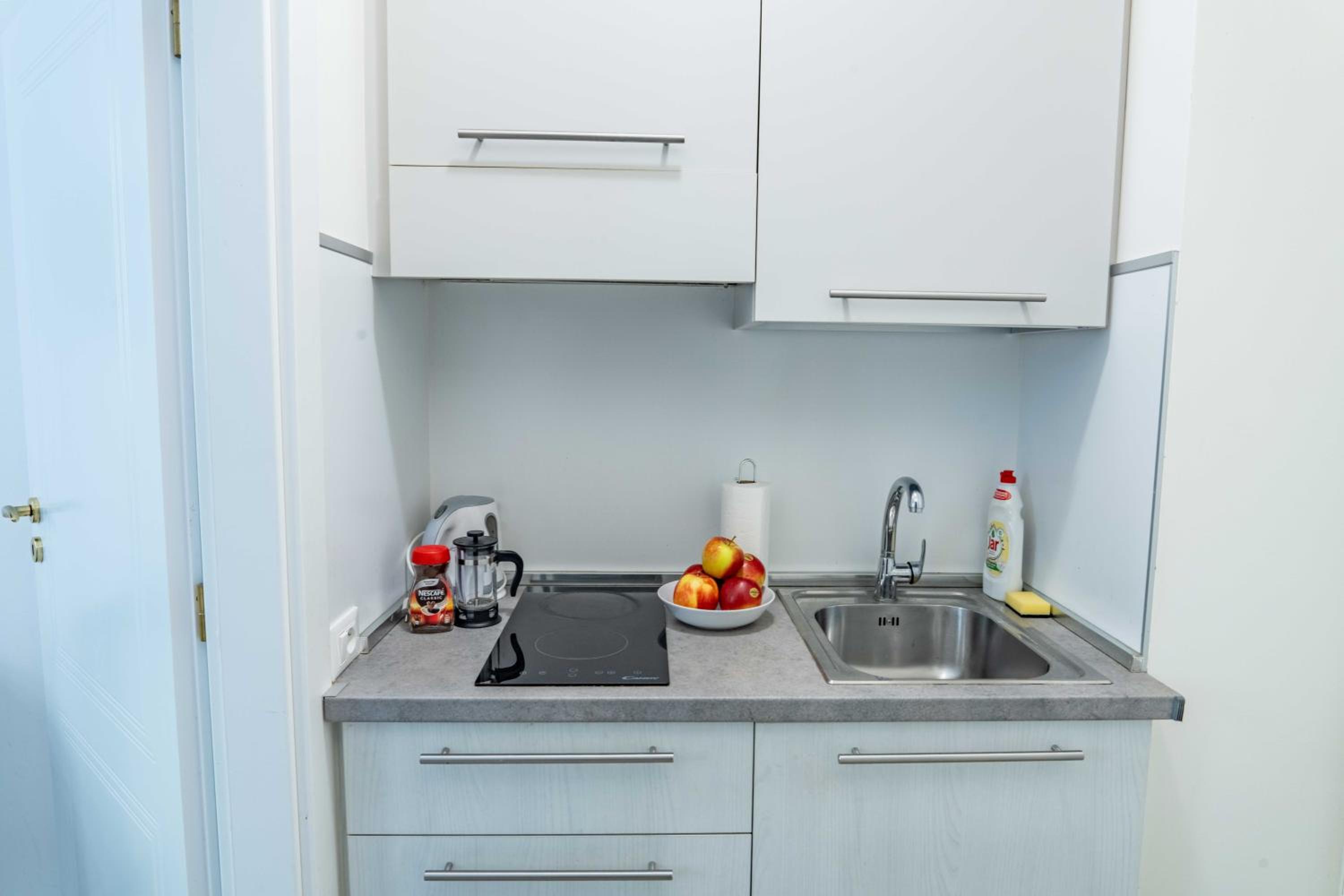 We had two apartments in this building and there is nothing to complain. It was clean, everything was provided, starting from towels to kitchen utensils. It was really nice stay for longer period of time as well. Tram and metro station are around 8-10 minutes of walk, maybe not even that much. Area felt very safe.