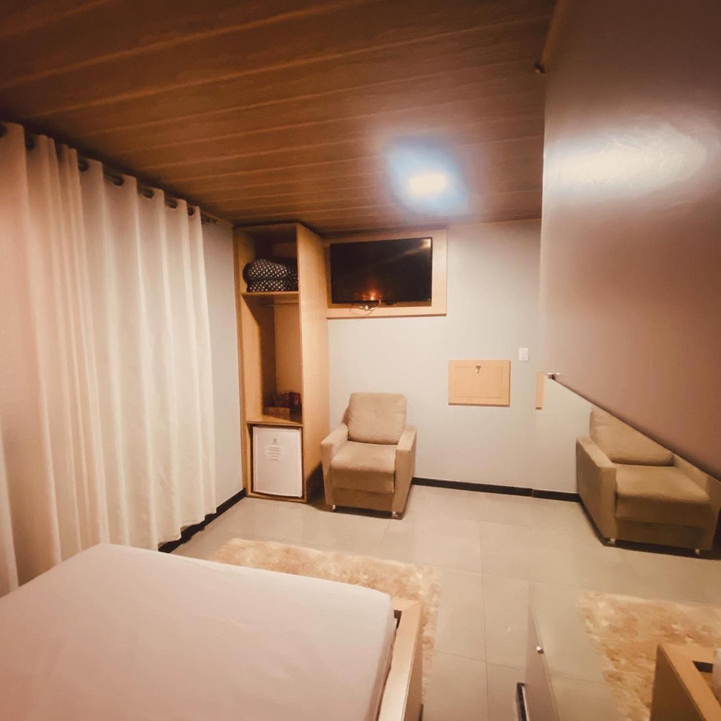Experience comfort with air-conditioned rooms, flat-screen TVs, and cozy bed linen at Angico Motel.