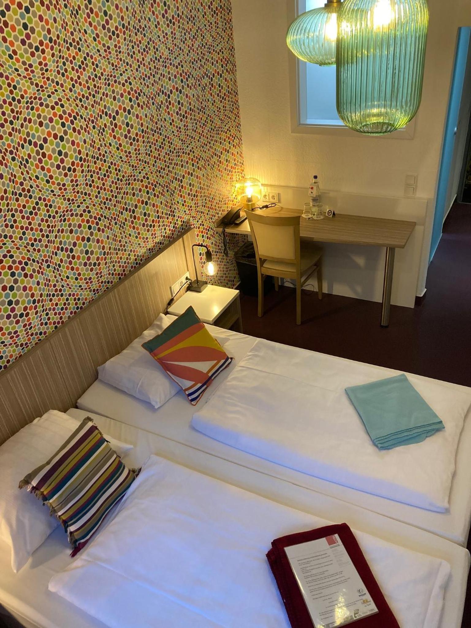 Die Lage ist super, sehr nah zum Zentrum aber sehr ruhig. Das Personal ist sehr freundlich und das Zimmer sauber. Wir konnten das Auto direkt vor dem Hotel parken.