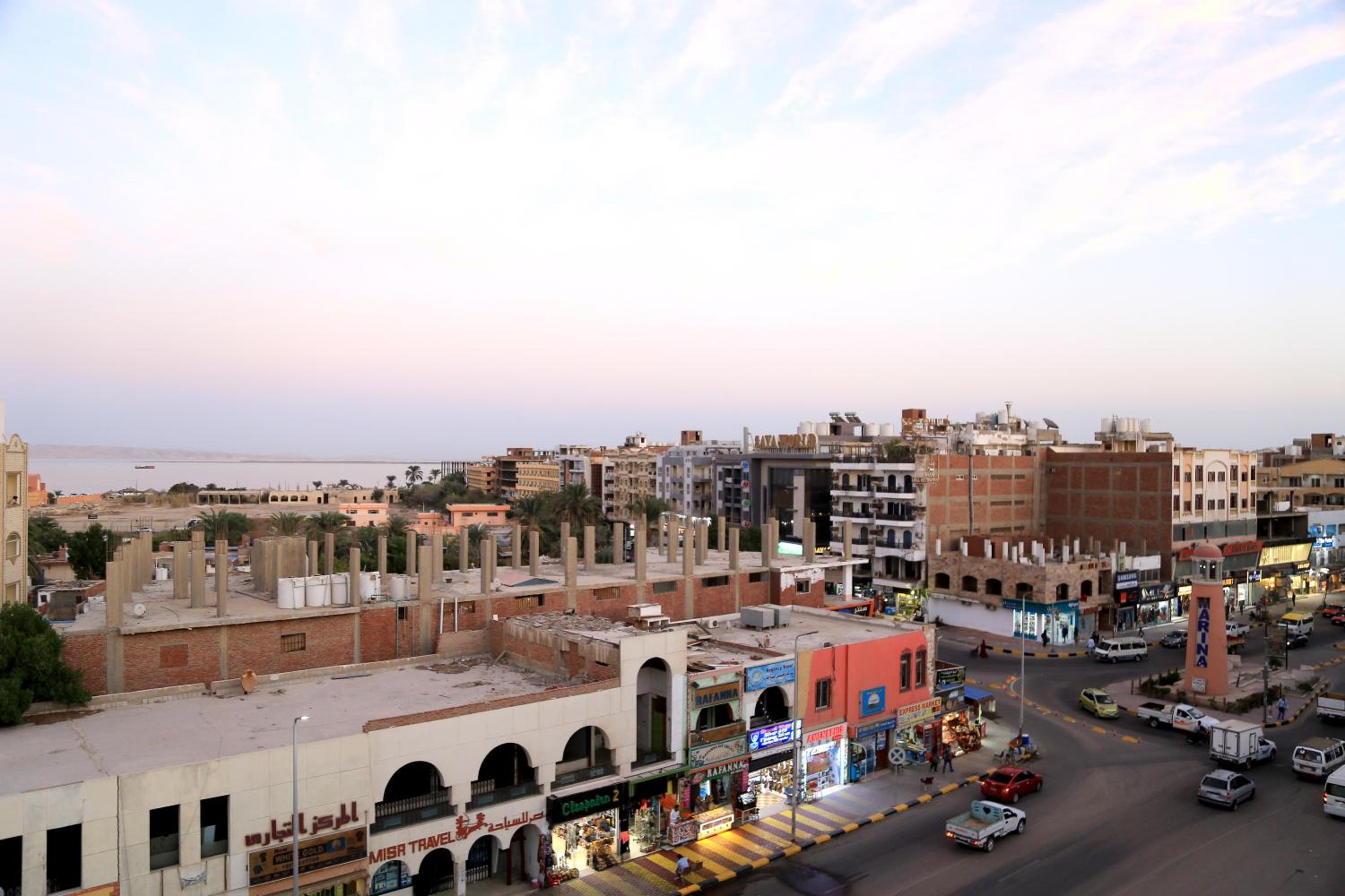 Hotel situé dans le vieux hurghada - sur une rue populaire et animée . Un accueil chaleureux. Un personnel qui vous aide. , En egypte tout le monde parle anglais !!! Pas français ! Entraîner vous a la langue! Et le temps est plus long en egypte! Accepter d apprendre