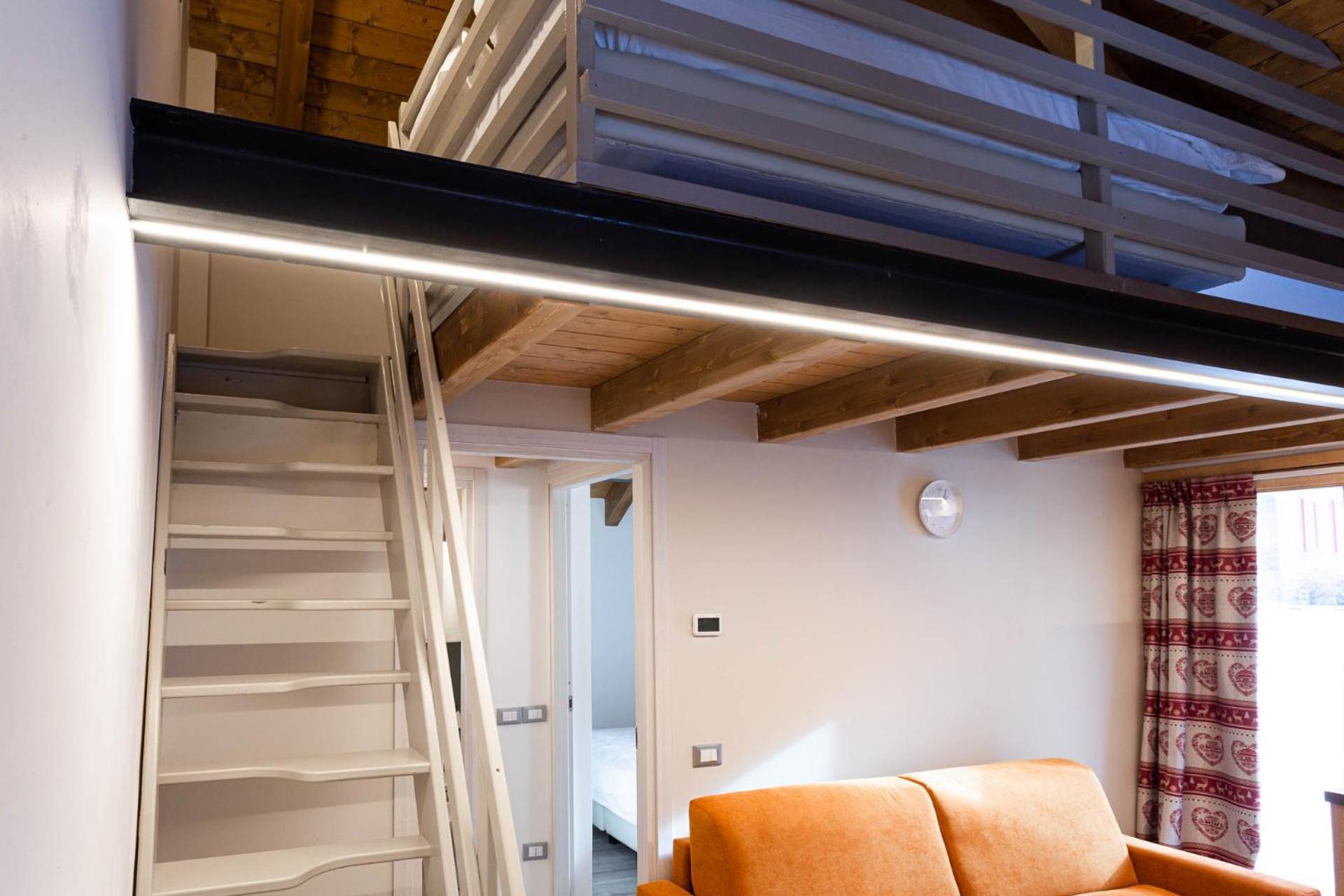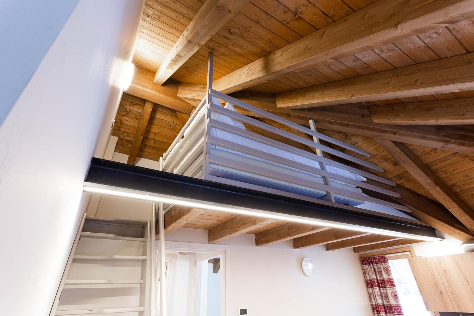 La camera da letto era sul soppalco, con un tetto troppo basso, il bagno al piano inferiore non era molto comodo.