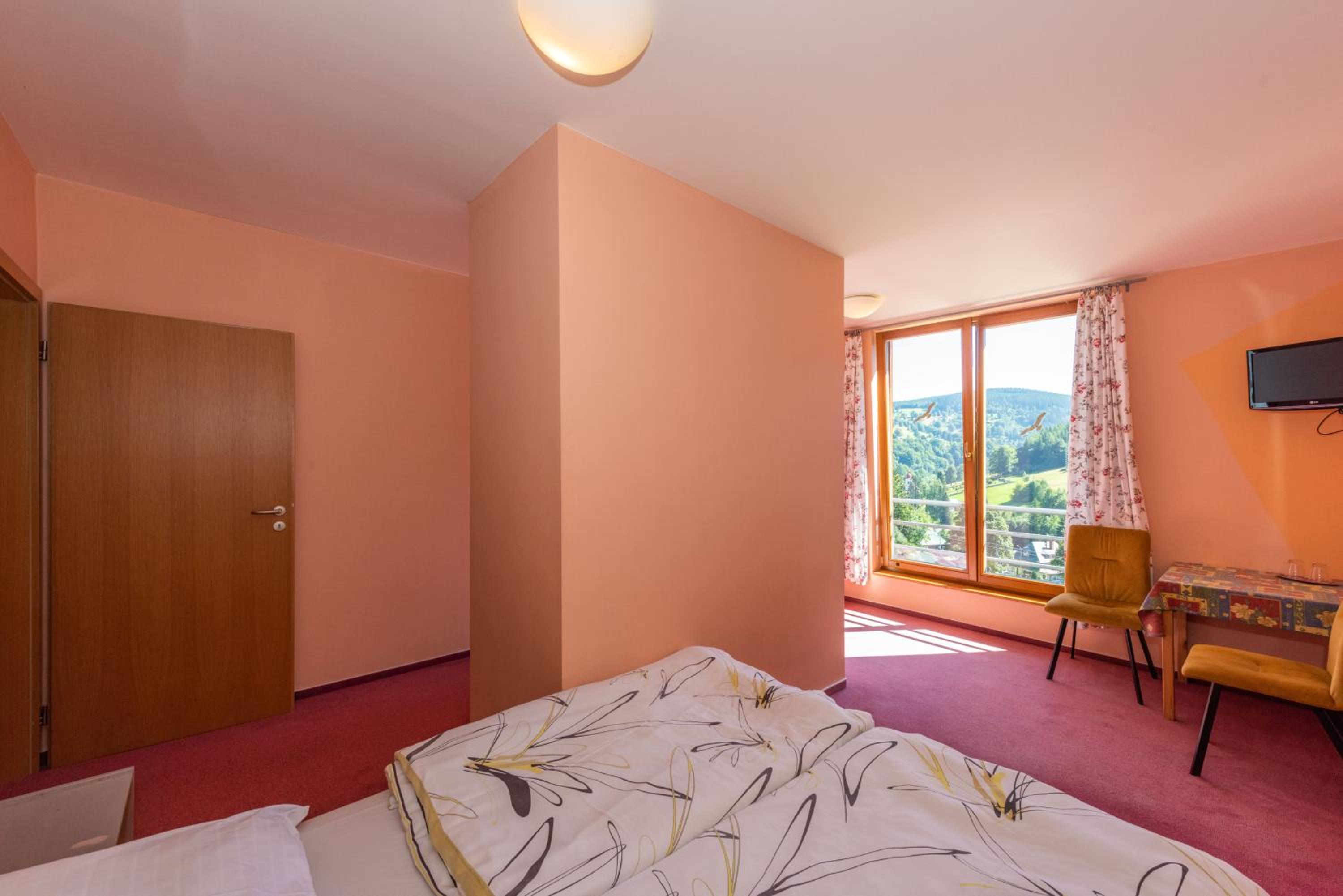 Fajne, przytulne miejsce. Strefa spa ,,głowy,, nie urywa, pokoje czyściutkie i wygodne, ale nie jakiś super komfort. Głównie jednak same zalety- jedzenie w restauracji przeprzyszne, śniadanka tez zawsze świeżutko i smacznie. W barze dla narciarzy pod hotelem również, mają nawet zupę. Lokalizacja super, nie wjedziecie autem bo droga do hotelu przecina stok, więc auta zostają przy ulicy na parkingu, ale hotel drukuje zniżkę. Dzieciaki rano wstają, śniadanie i lecą na stok, a urlop mozesz spędzić z dobrym czeskim piwkiem i prosecco. Jak znudzi się Vielka Upa to skibusy zawiozą za darmo na inne stoki. Ale największą zaletą hotelu jest atmosfera, wspaniały, przesympatyczny personel i cudowny właściciel. Polecamy ❤️ tylko w głęboką zimę kupcie wysokie śniegowce 😉 bo nawet dwieście metrów z górki czy pod górkę potrafi zaskoczyć i zmoczyć nogi, śniegu zdecydowanie pod kolanka 😉
