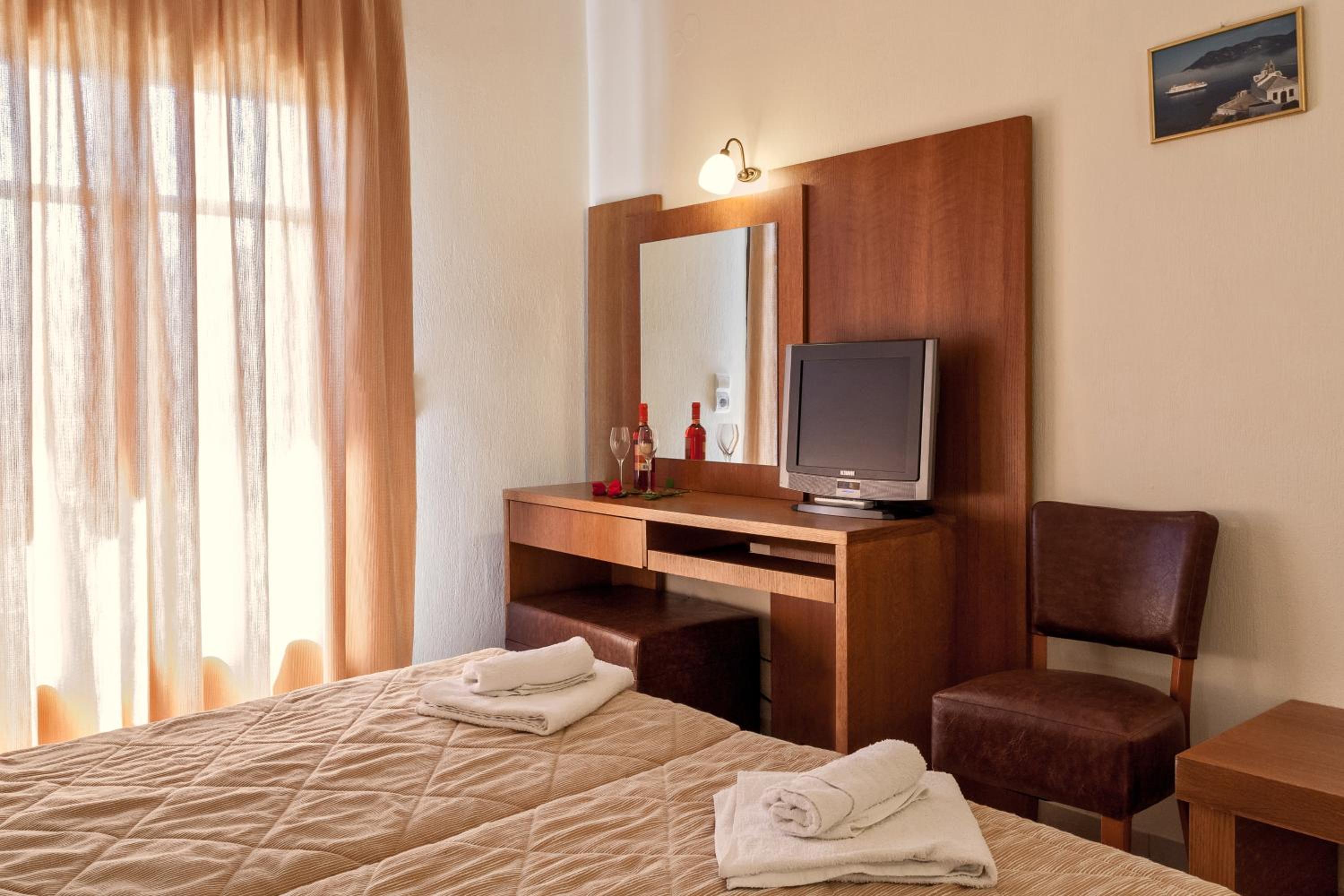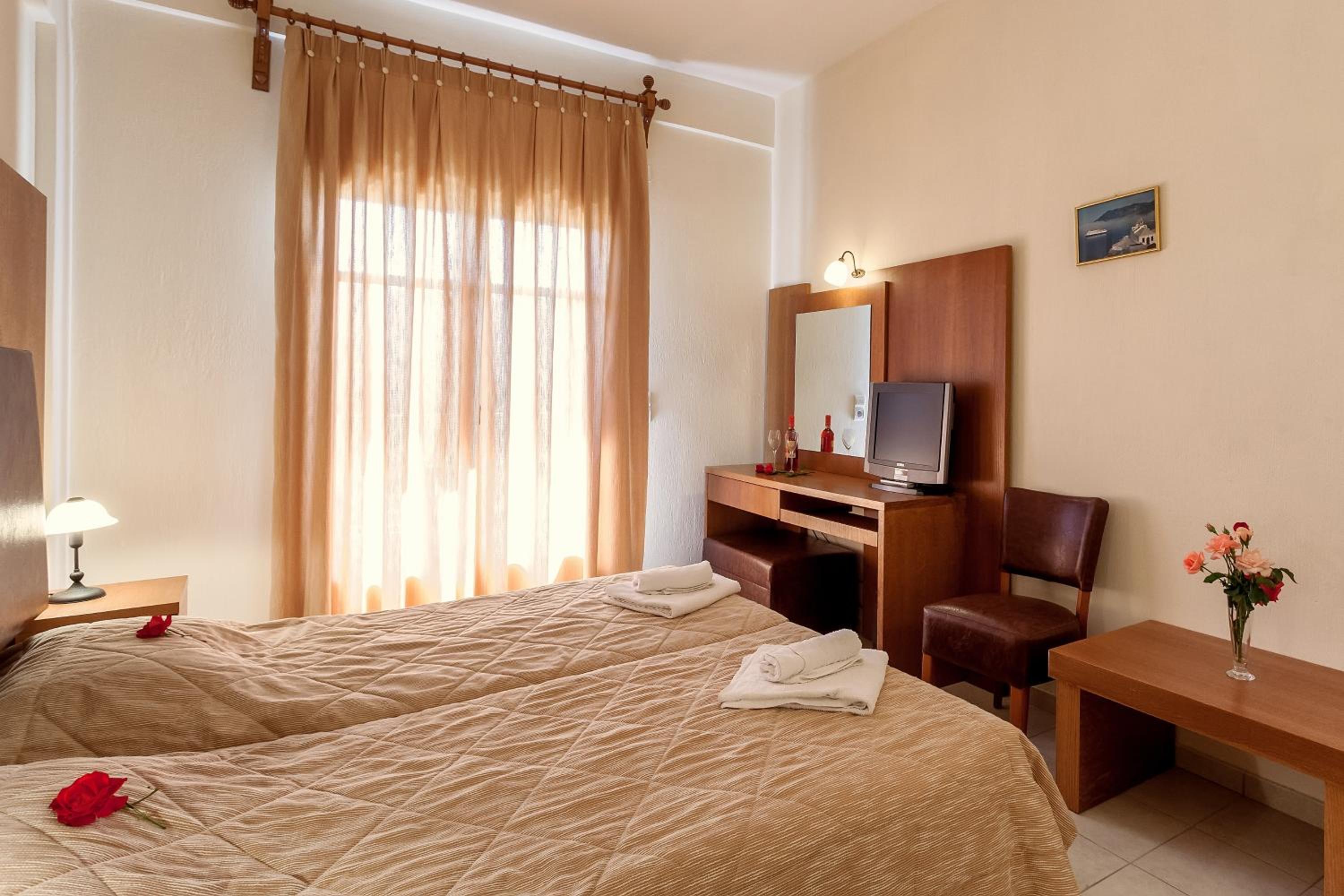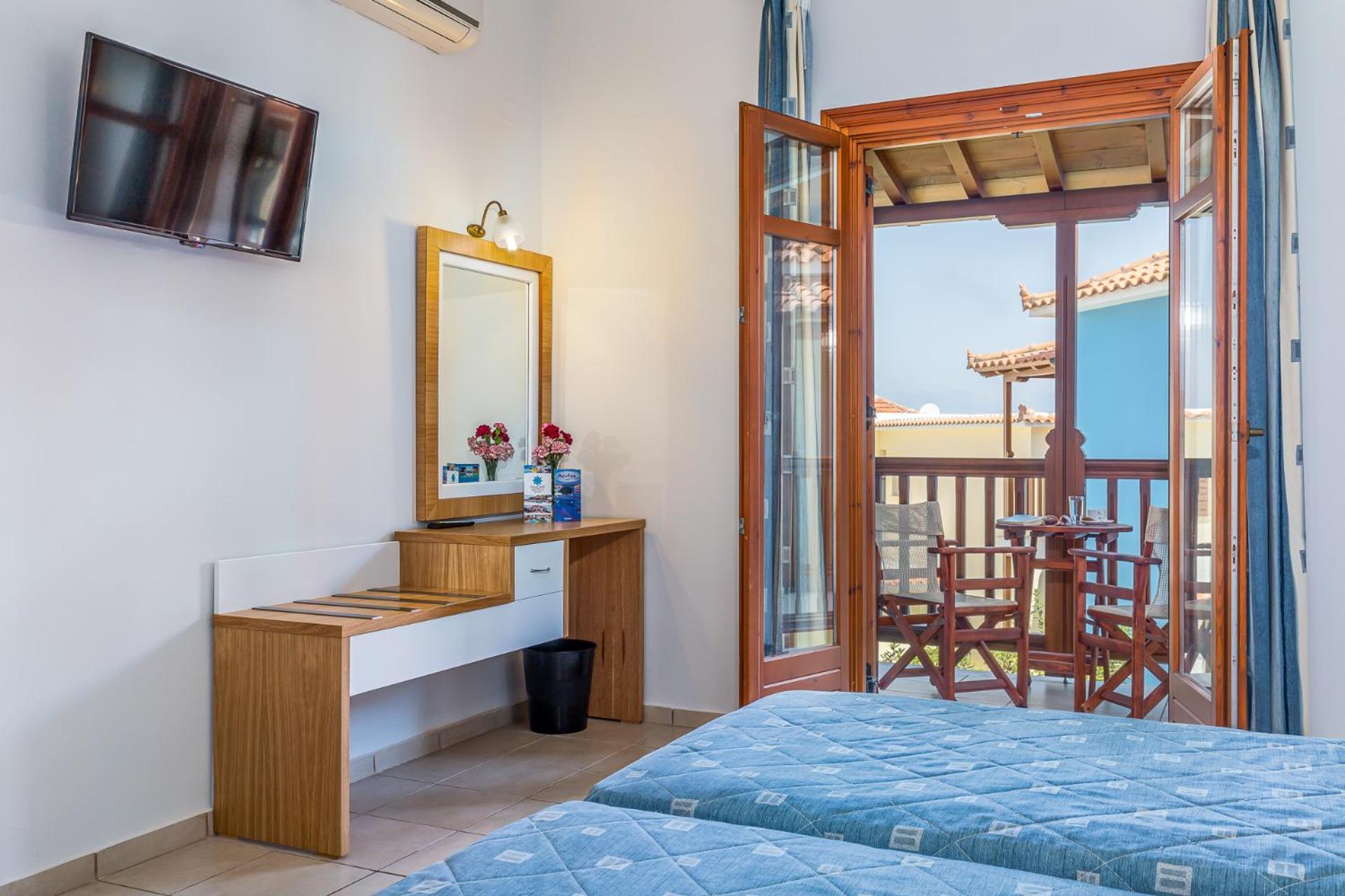 Each room at Aeolos Hotel is equipped with free Wi-Fi, LCD satellite TV, and air conditioning for a comfortable stay. Enjoy the furnished balcony in every room, with some offering scenic sea views.