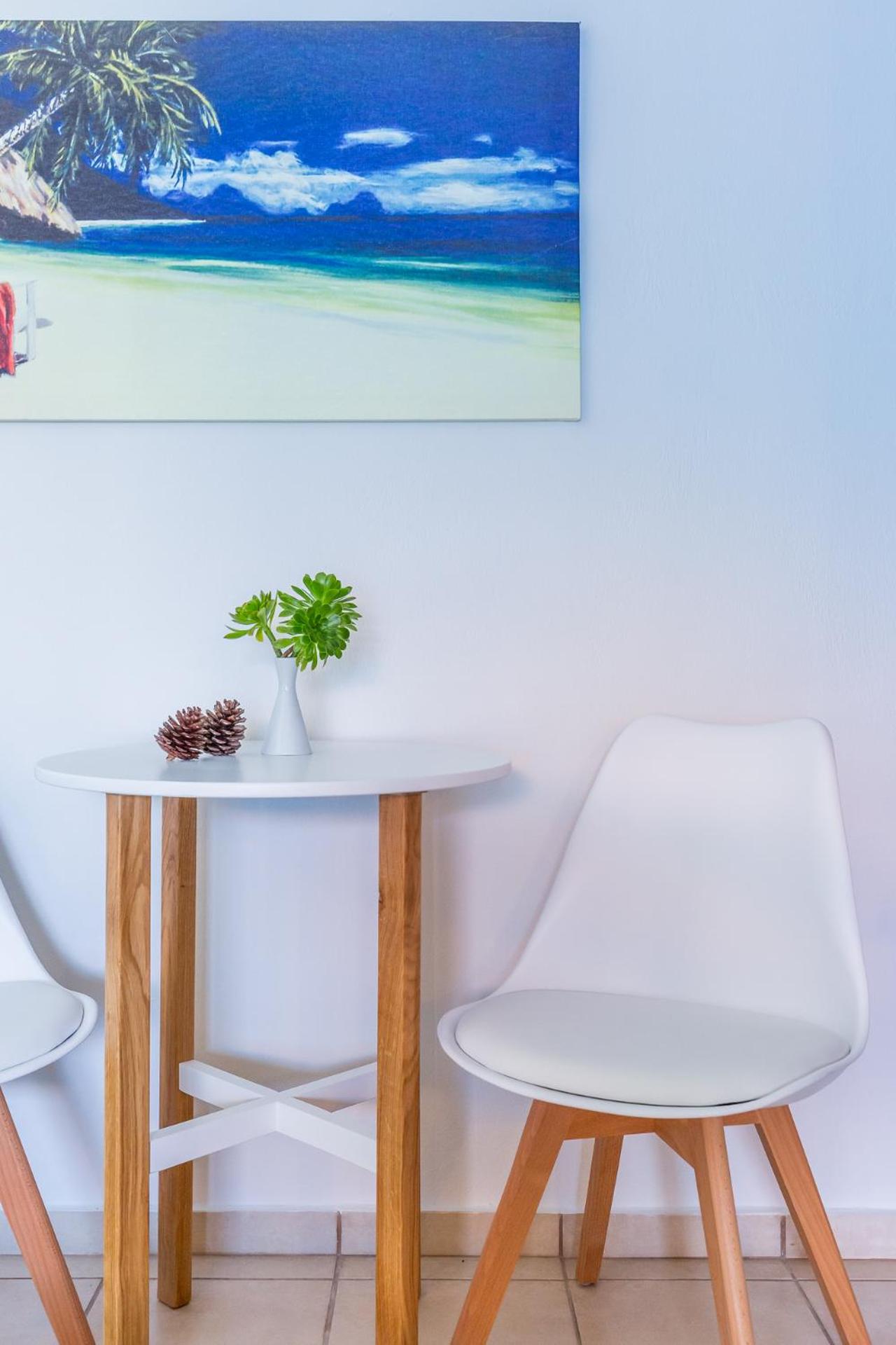 Ubicación perfecta frente al puerto. Tiene una playa al frente por si no quieres moverte mucho en la isla. El desayuno completo y variado. El personal muy atento.