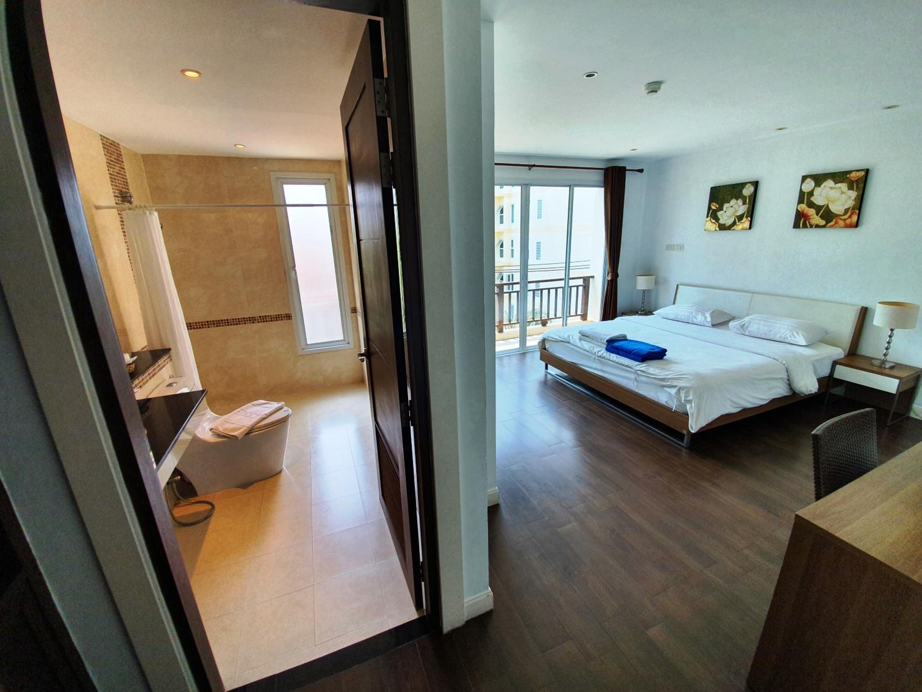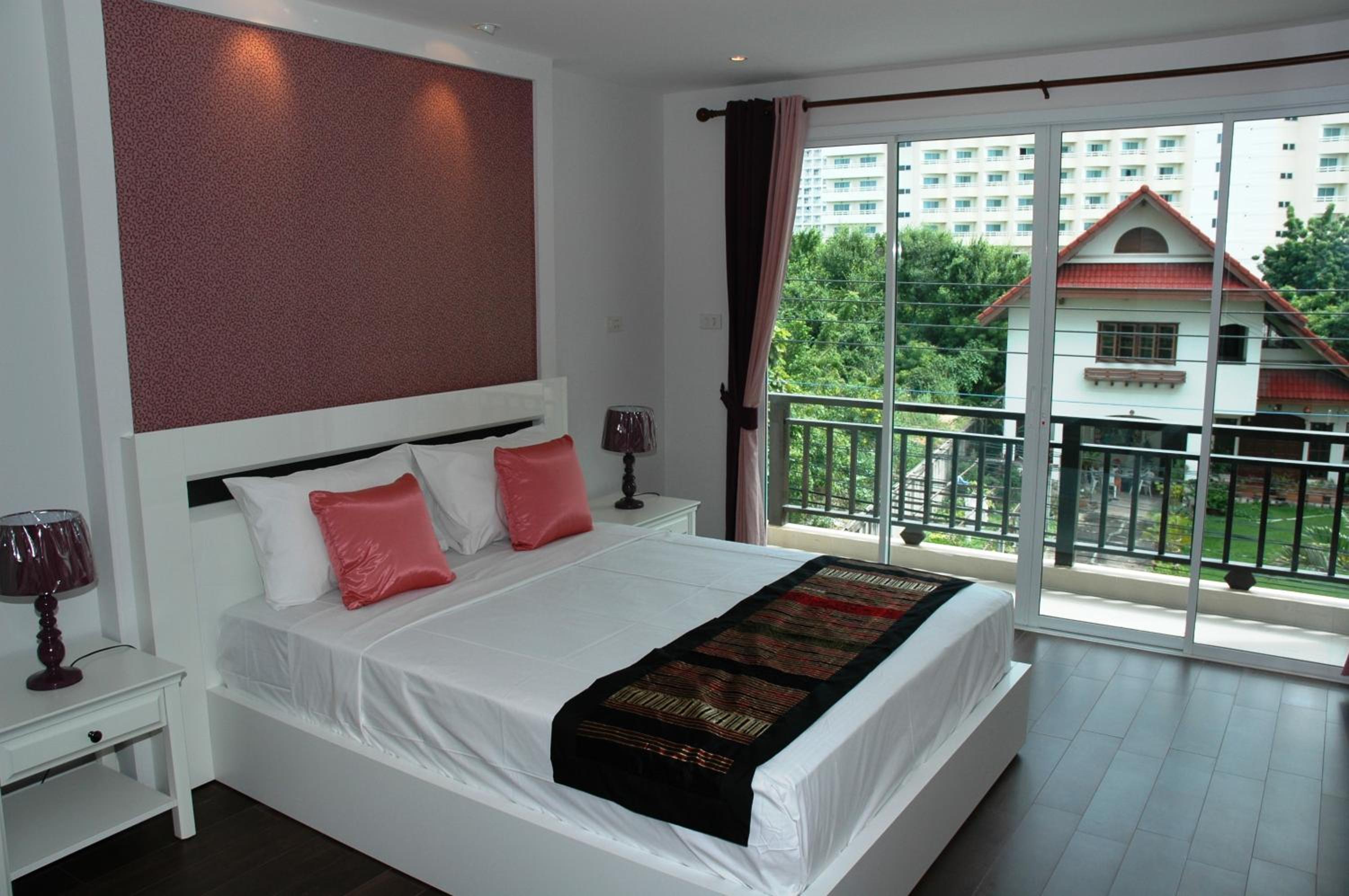 Jomtien Beach Penthouses offers elegantly decorated apartments with private balconies, Thai-style prints, and modern furnishings. Enjoy the large outdoor pool and free Wi-Fi, along with a fitness centre and car rental facilities.