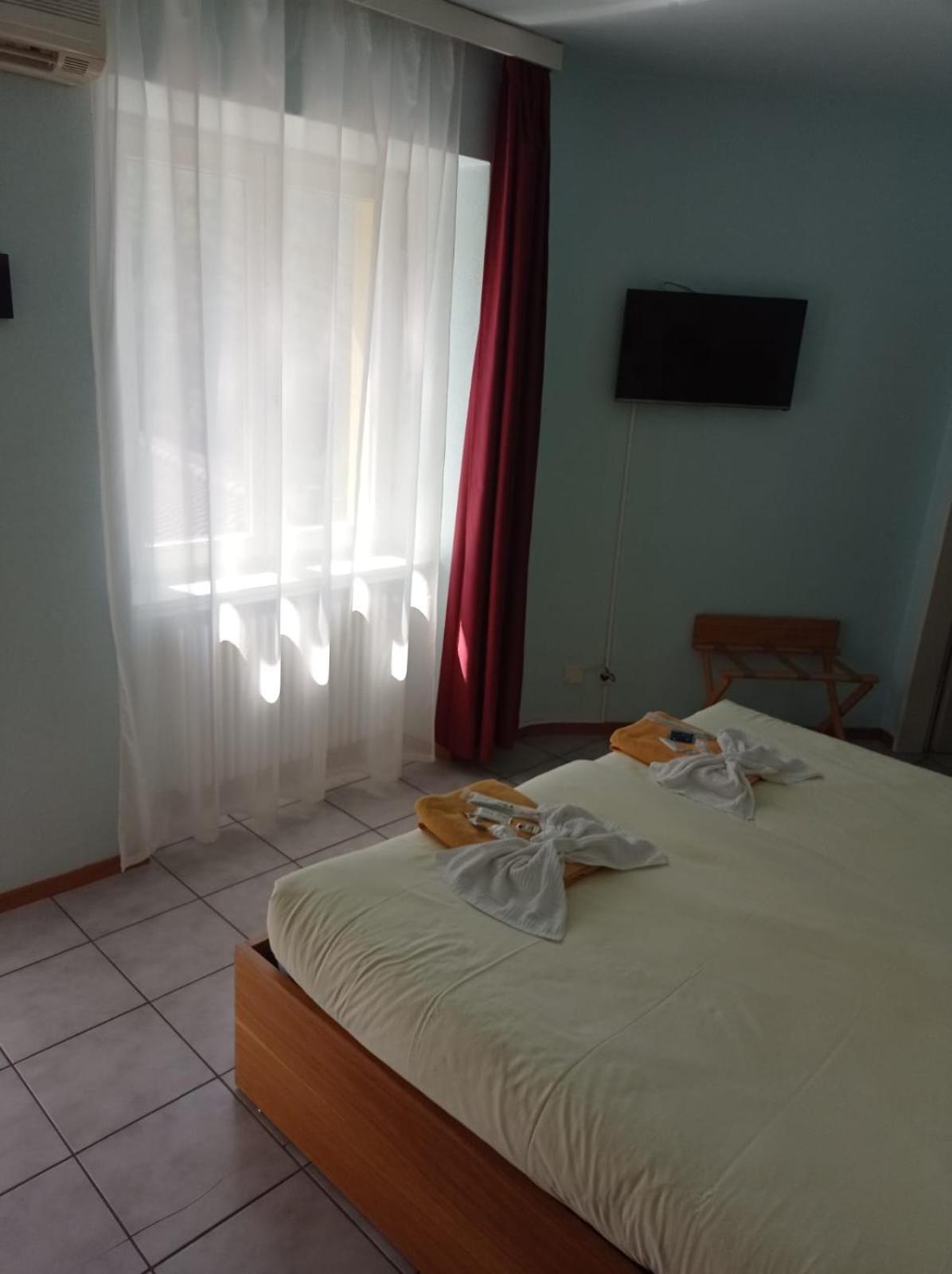 Unterkunft ist etwas in die Jahre gekommen (Risse in Bodenplatten, beschädigte Ecken und Kanten) und lieblos bis „schmuddelig“ in der Austattung mit abgenutzter Einrichtung, Billig-Deko und minderwertigen „Kunst-Gemälde“ einer Amateurin an den Wänden, die zum Kauf angeboten werden. Treppenhaus zum Restaurant-WC war schmutzig, so auch das Etagen-WC & -Dusche. Unangenehmer Duft im Zimmer. Service am (späteren) Nachmittag auf Terasse hätte besser sein können. Personal kam nur zum Rauchen raus. Hätten eigentlich noch was bestellt, wurden aber nie gefragt, obwohl wir vor leeren Gläsern sassen. Schade.