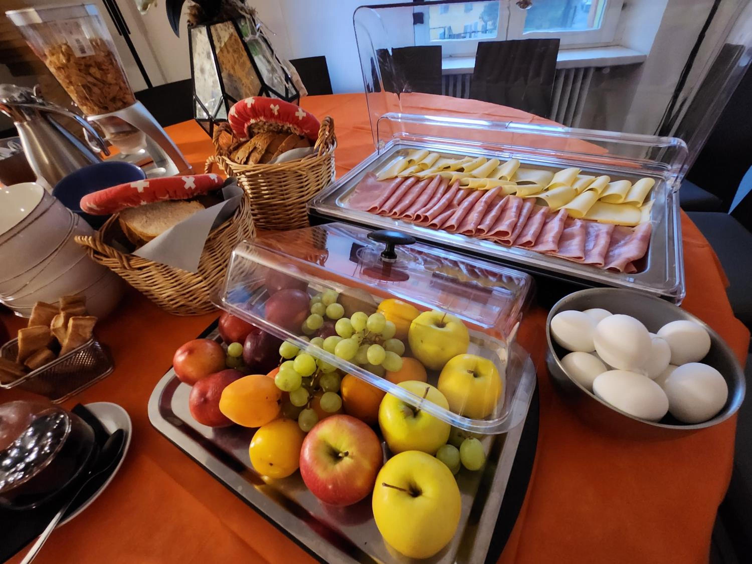 Het ontbijt: weinig vers brood, vooral in plastiek verpakte broodjes. We moesten betalen voor de 2e cappuccino die we vroegen (3,80 CHF per cappuccino) want bij het ontbijt is blijkbaar maar één drankje inbegrepen. Nog in geen enkel hotel meegemaakt.
