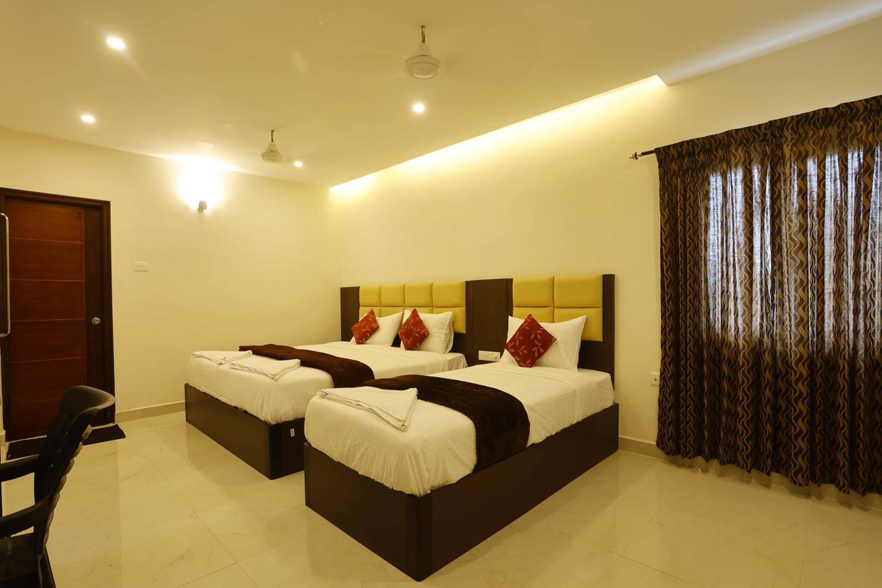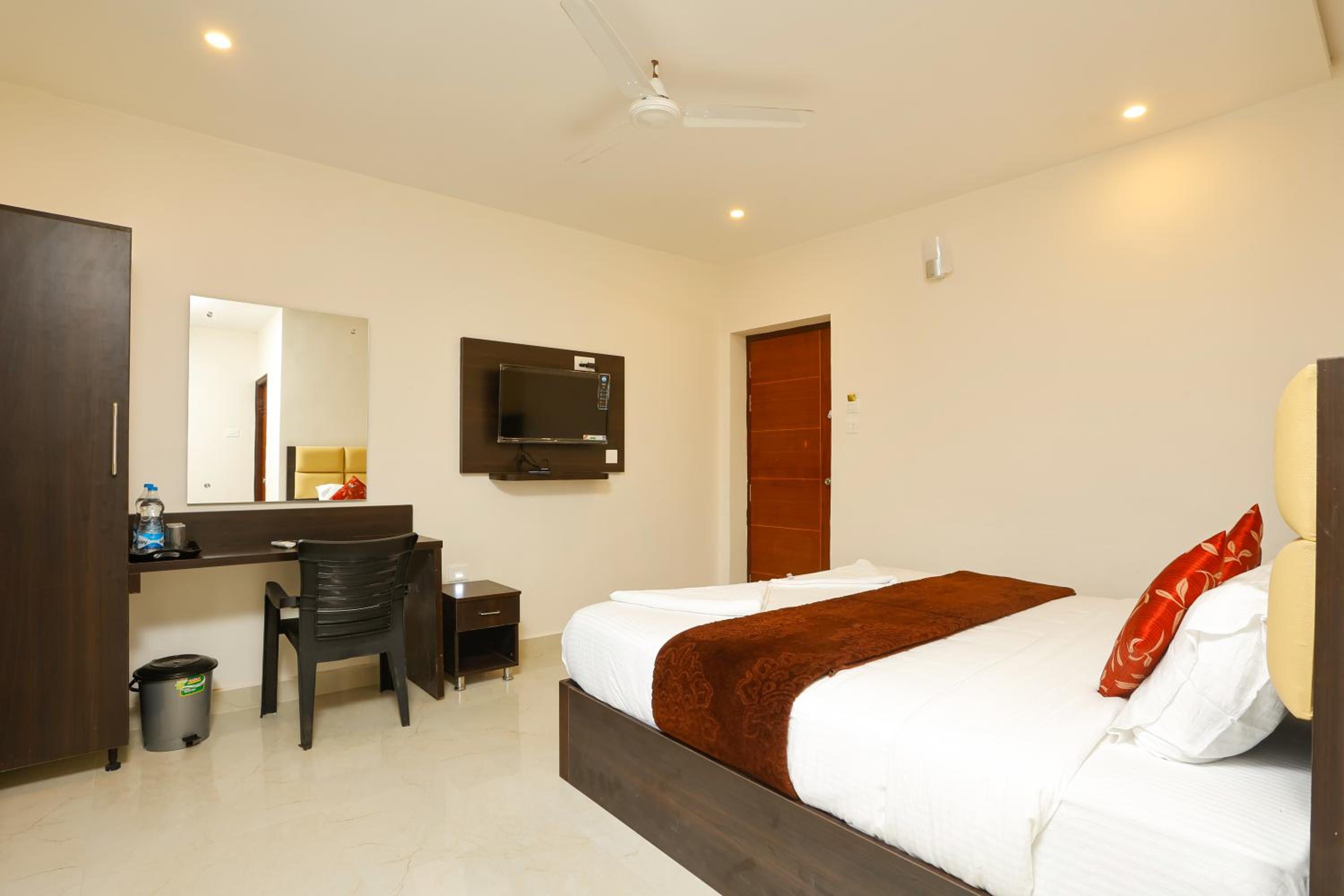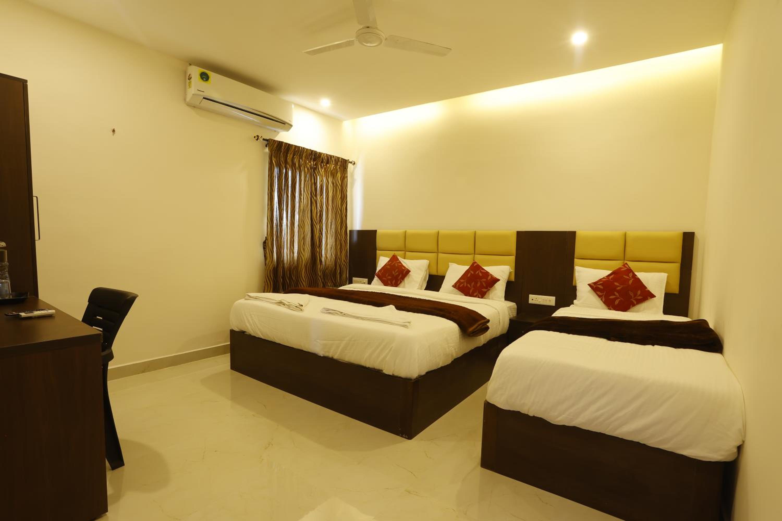 The hotel was very near from temple it was only 300mts the attached restaurant at the premisis was serving delicious food both north and south Indian,the managers are very friendly, this hotel has car parking facility with cctv cameras and has 24/7 security on this premisis i would love to visit again