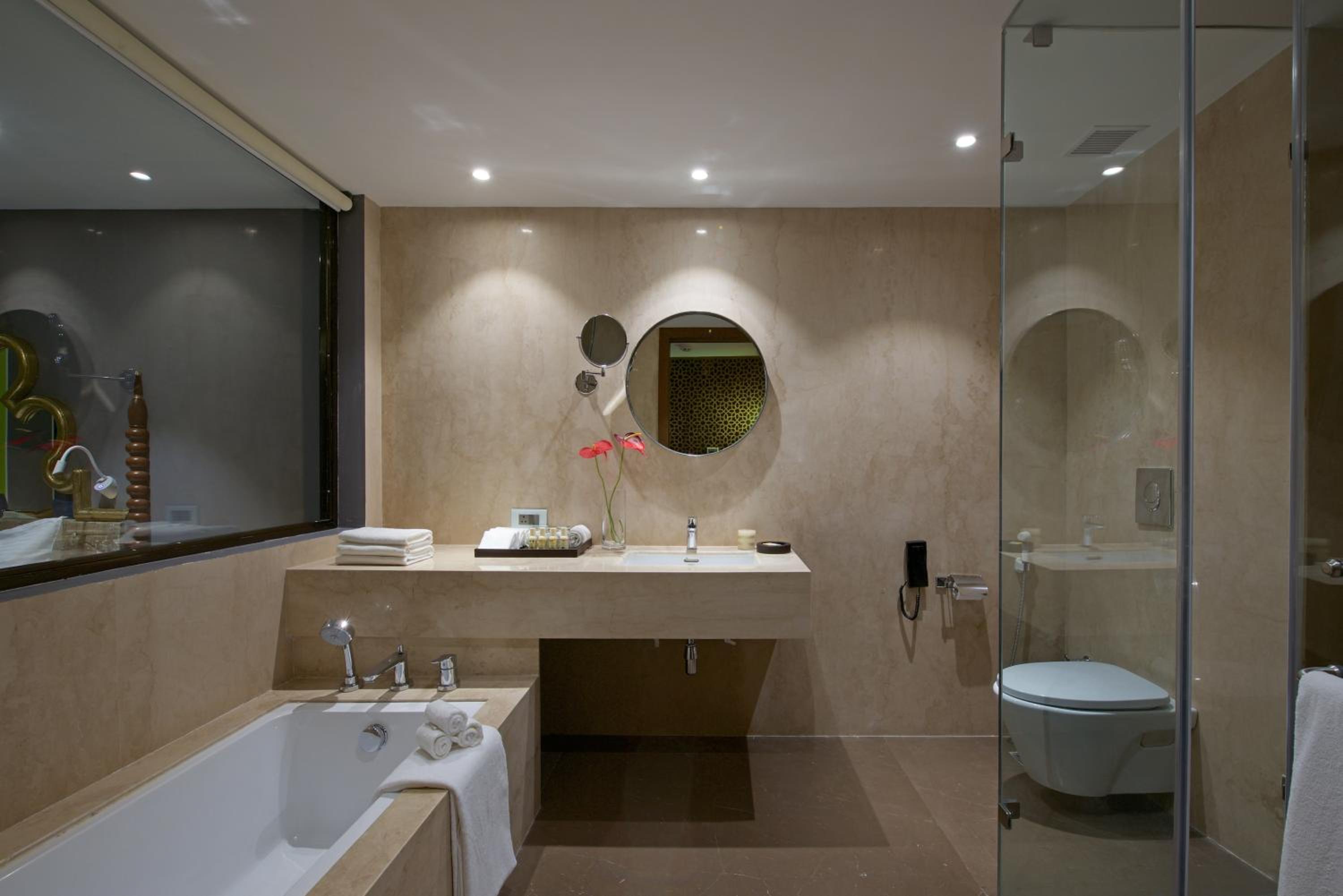 First day during the breakfast we found a paper clip in the idli (Food) . Next day everyone (all 7) family members were sick with bad stomach that included 4 adults and 3 kids. The room we were given had the balcony just opposite to a garbage dump. I don't know why its rated 5 stars as there are bare minimum facilities and even those are barely functioning. And prices are sky high as if it were a real 5 star hotel. Stay away as there is no reason to be here.