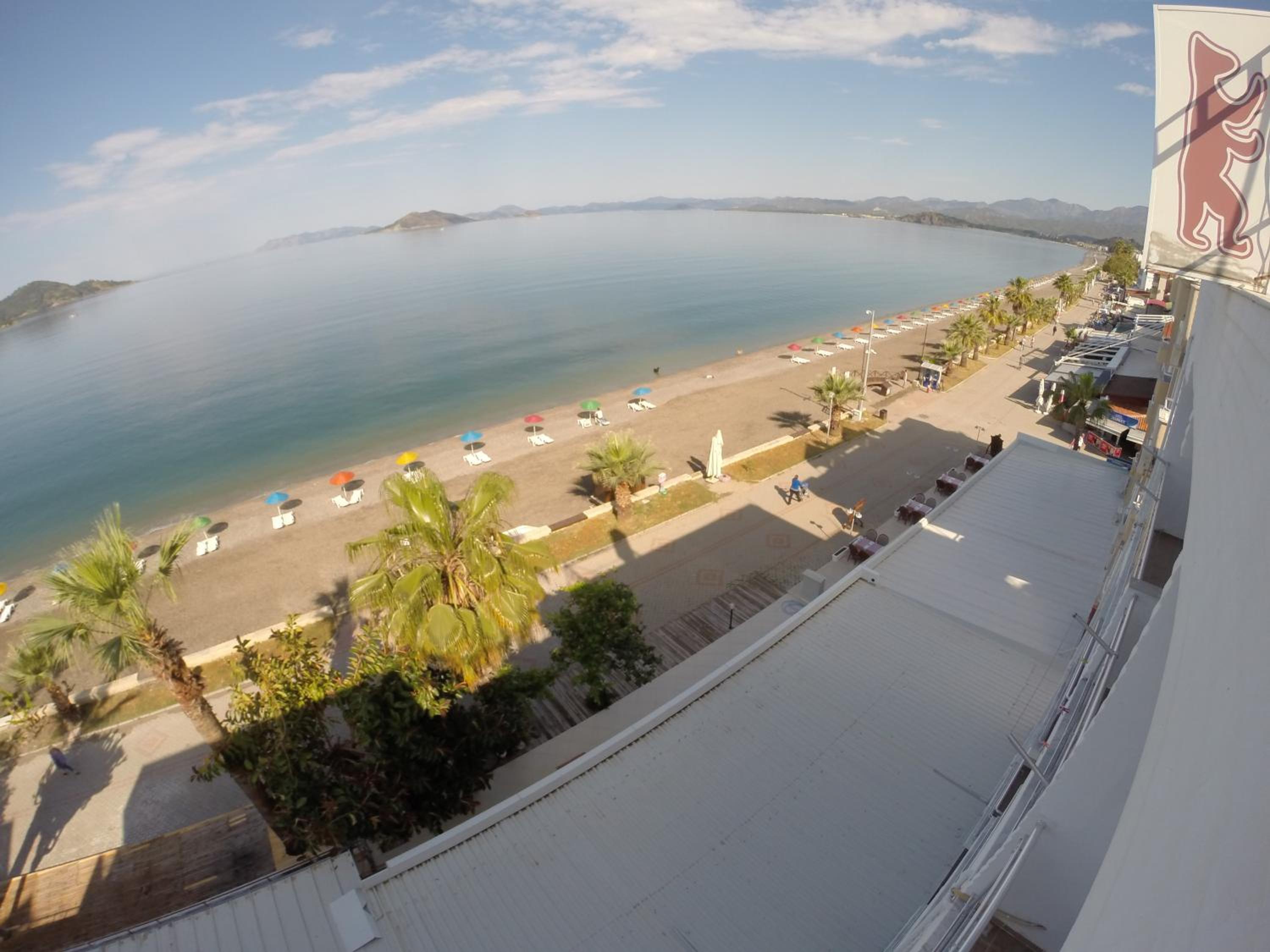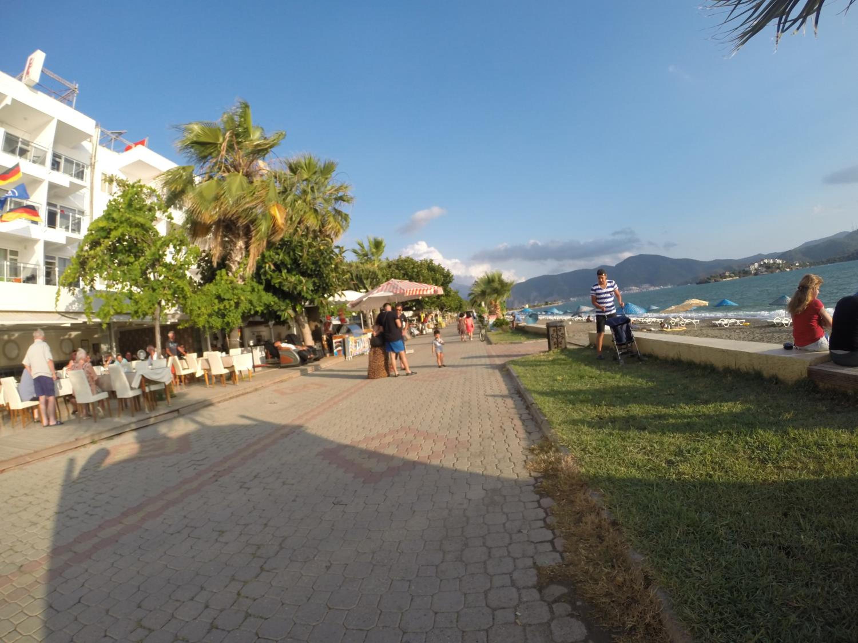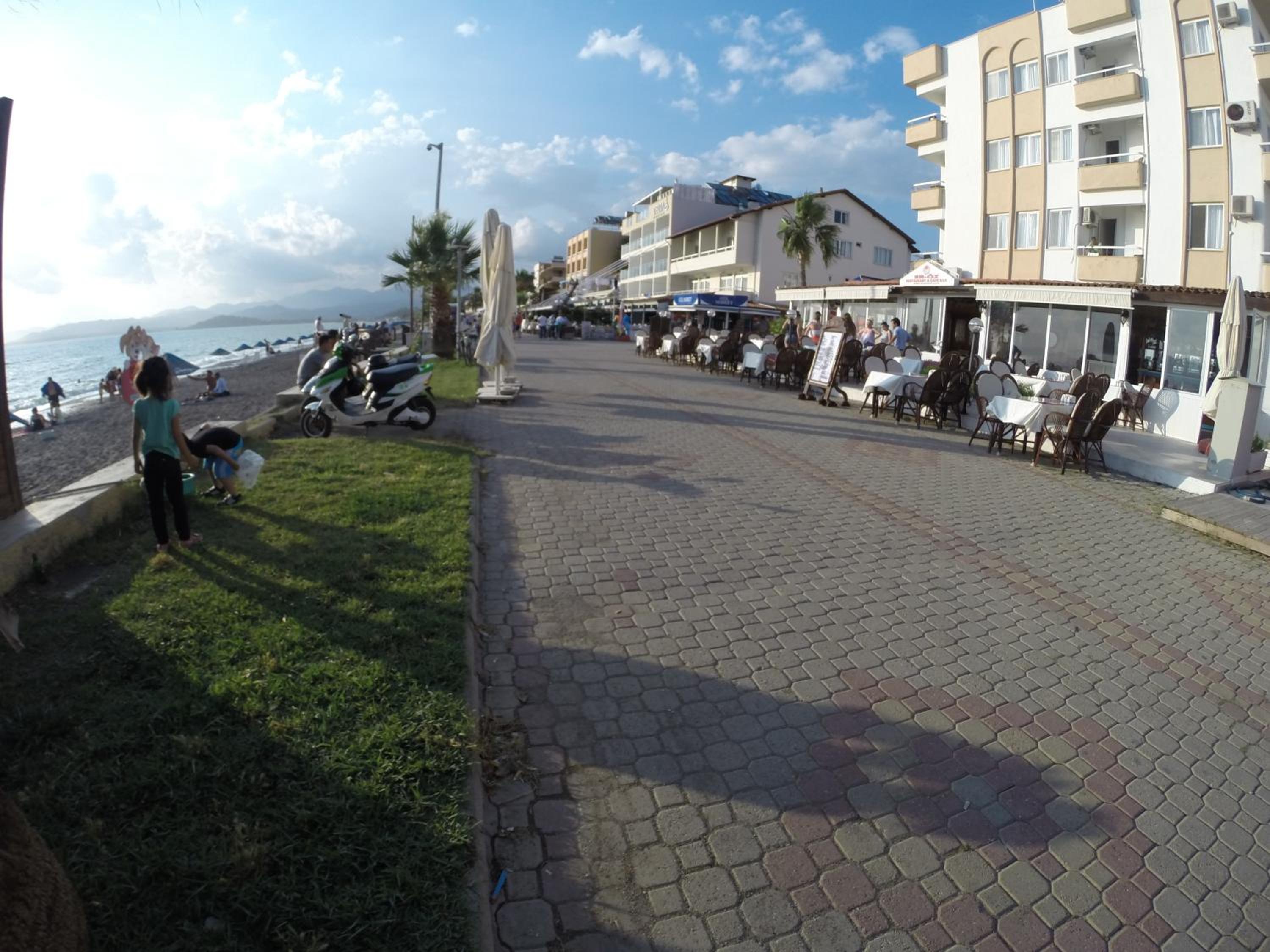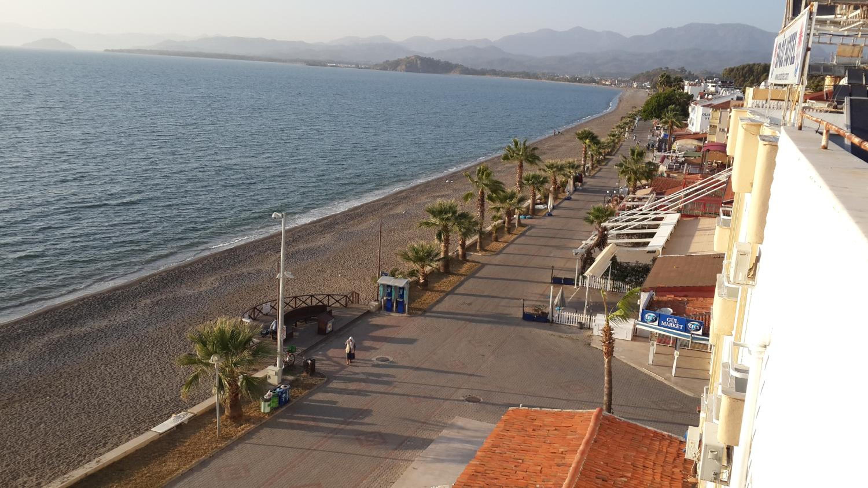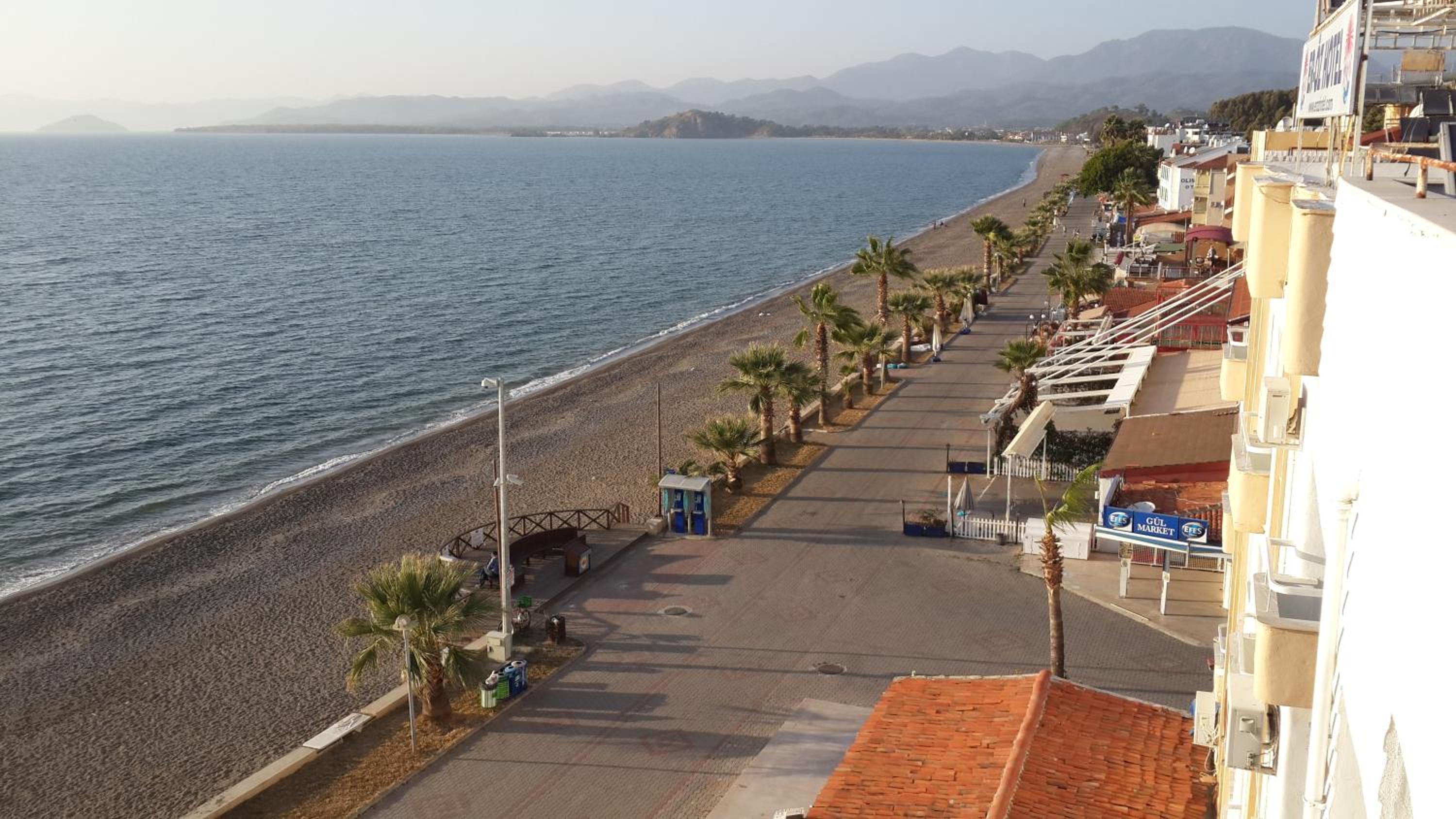 I booked this hotel because of the location - right on front of a beach. There are a few supermarkets nearby, and in 5 minutes of walk you reach the promenade that goes to central Fethiye, the walk is about 45-60 minutes, quite enjoyable, as there are parks and cafeterias and beautiful views to the sea. There are free public parking spaces in front of the hotel. There is a very nice balcony, where you can sit and enjoy the views to the mountains and the nearby boat channel. The WiFi was strong, the place also has a restaurant, but I did not try it. The rooms need renovation, but for the price I paid I am happy with what I got.