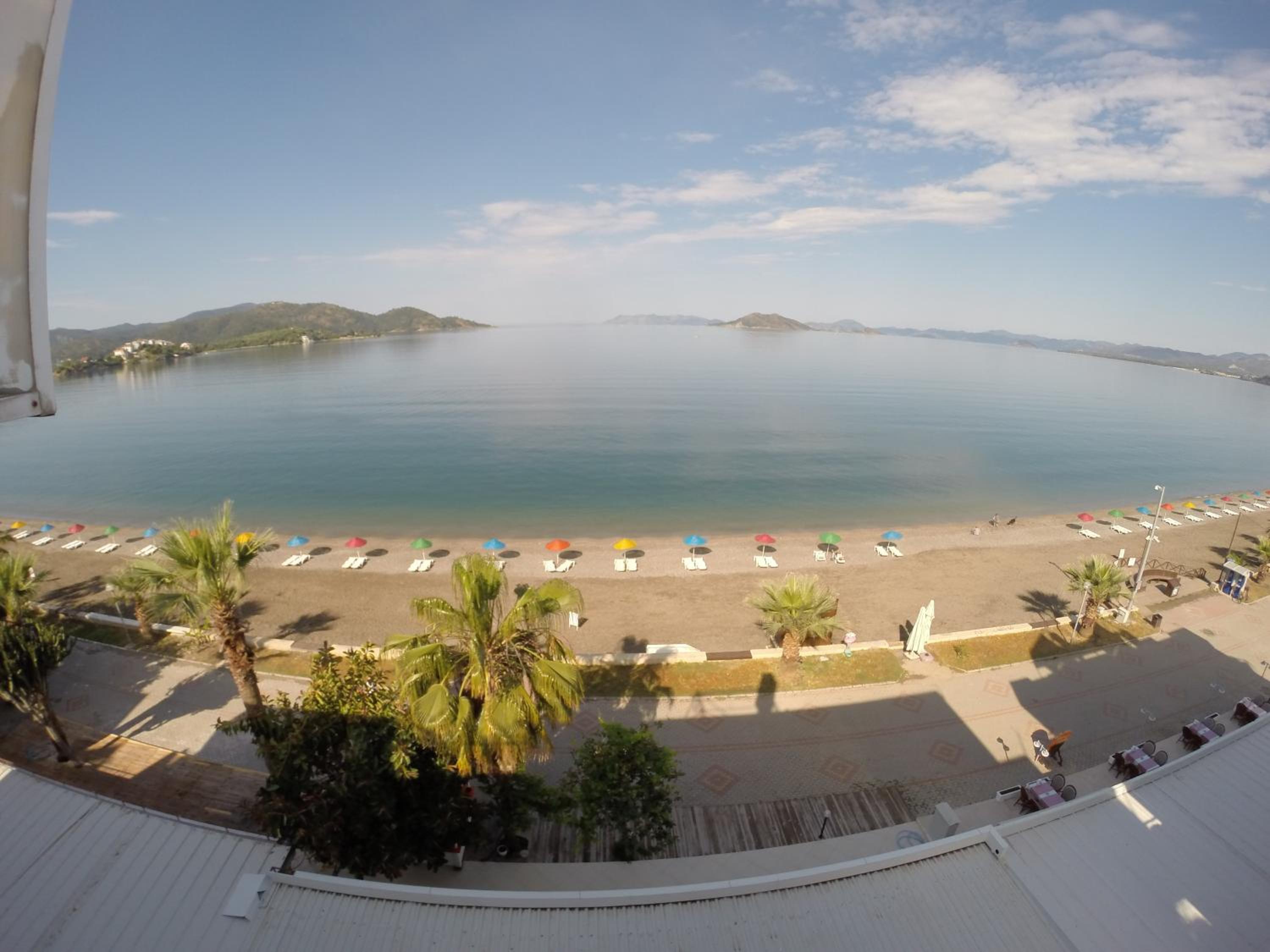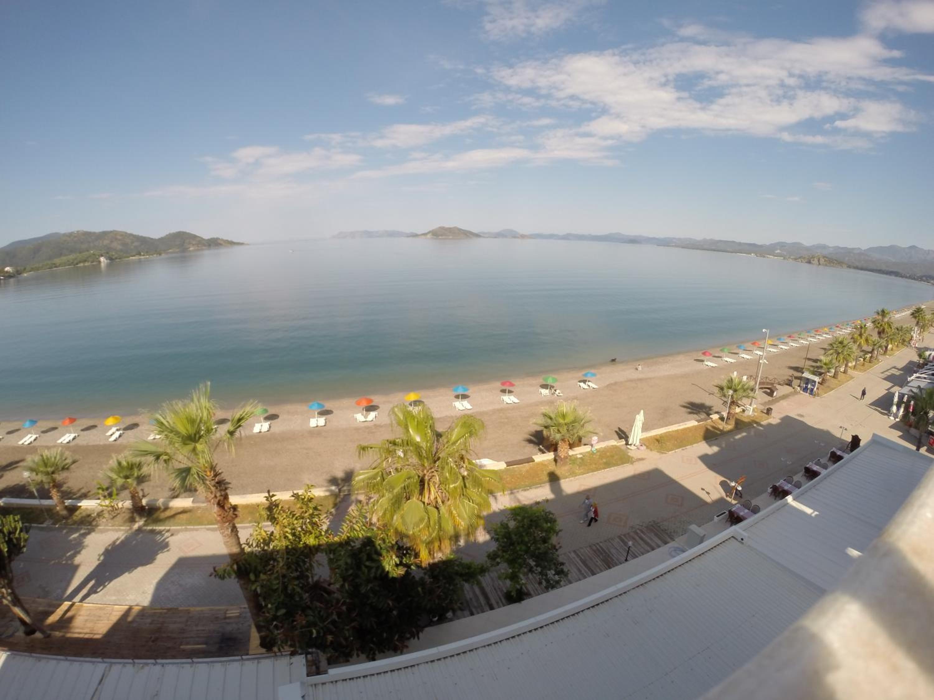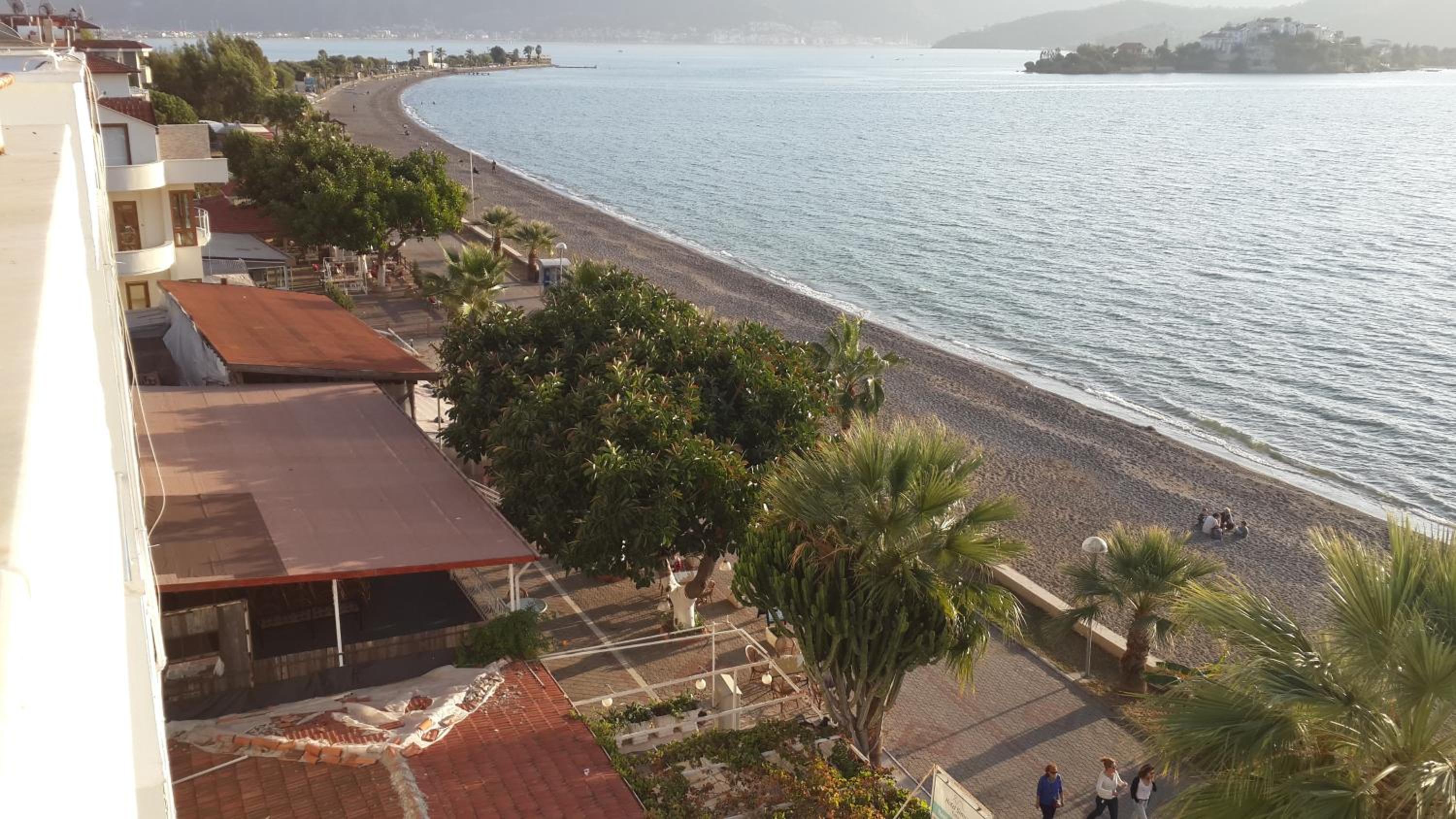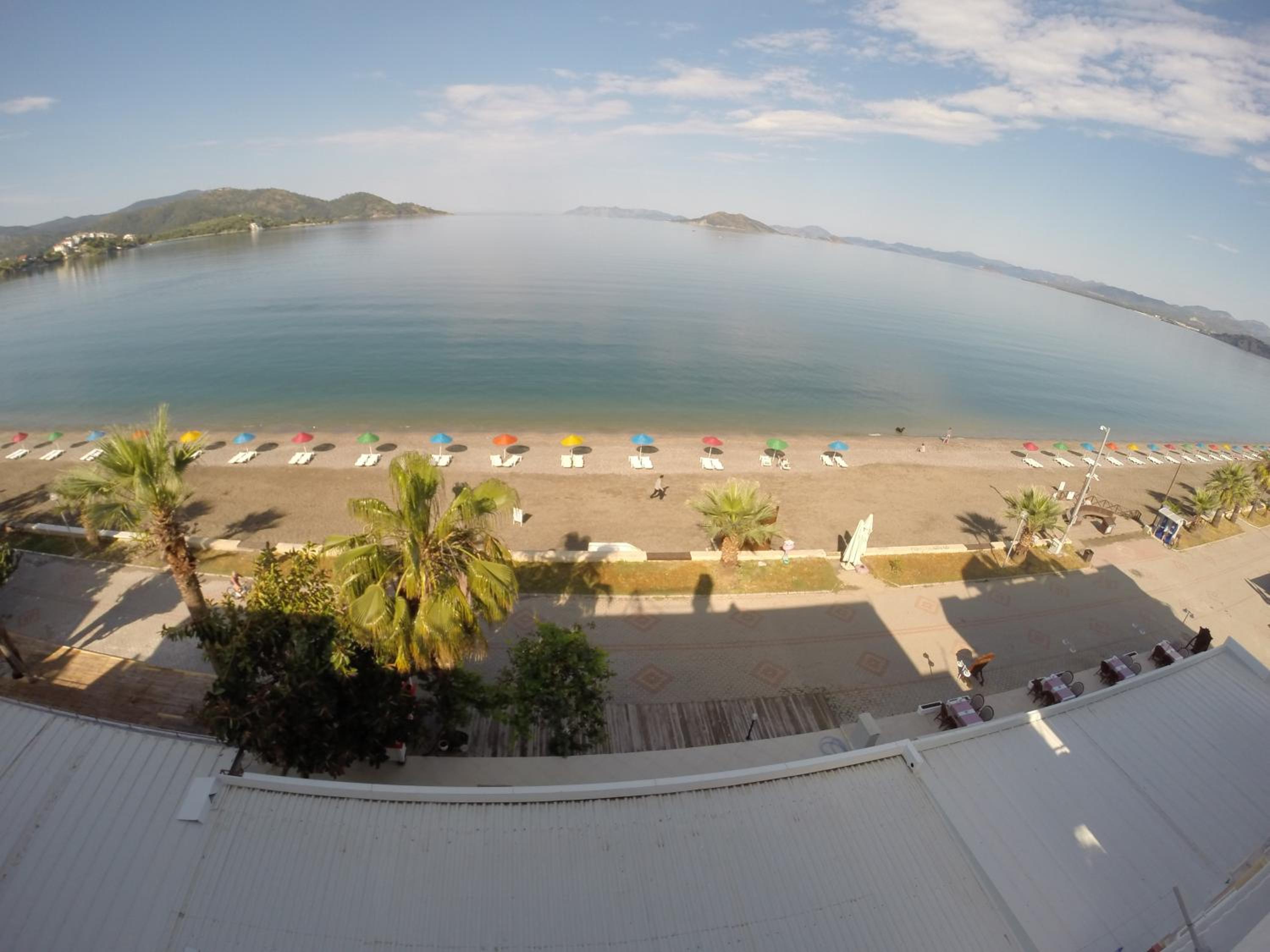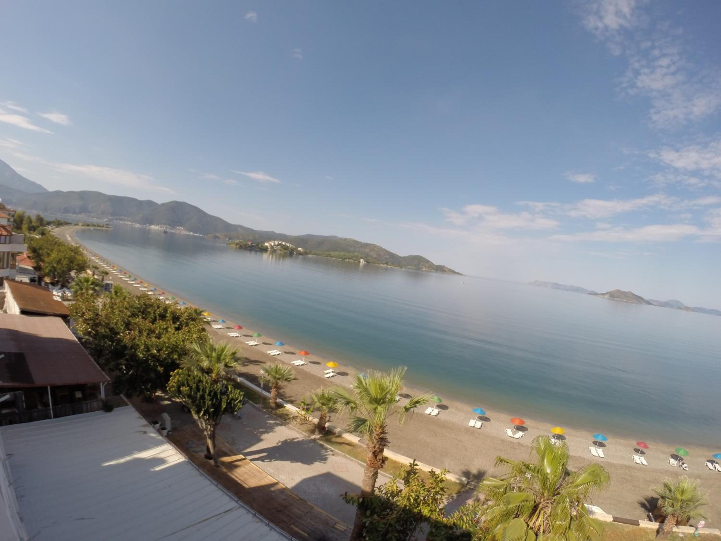 I booked this hotel because of the location - right on front of a beach. There are a few supermarkets nearby, and in 5 minutes of walk you reach the promenade that goes to central Fethiye, the walk is about 45-60 minutes, quite enjoyable, as there are parks and cafeterias and beautiful views to the sea. There are free public parking spaces in front of the hotel. There is a very nice balcony, where you can sit and enjoy the views to the mountains and the nearby boat channel. The WiFi was strong, the place also has a restaurant, but I did not try it. The rooms need renovation, but for the price I paid I am happy with what I got.