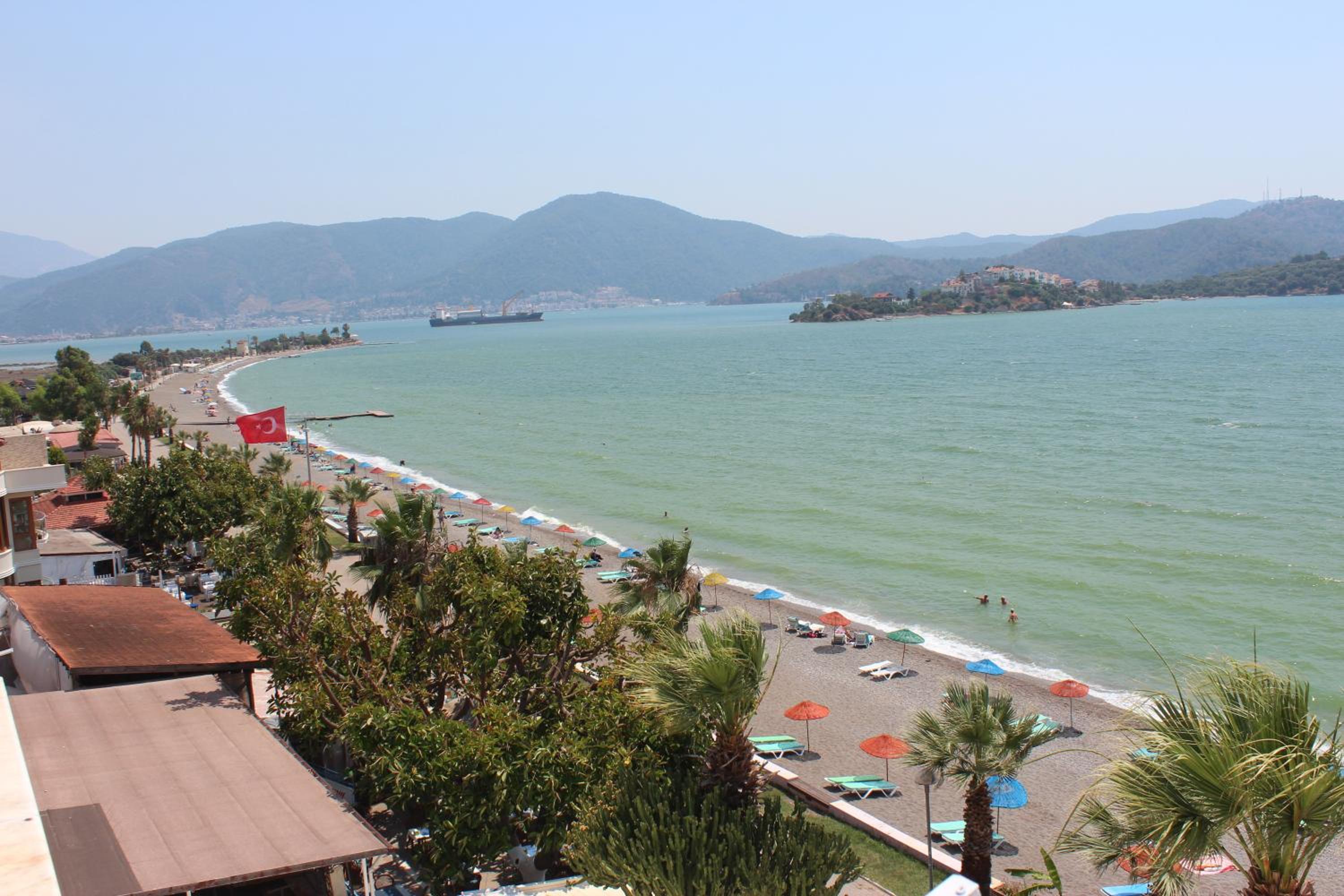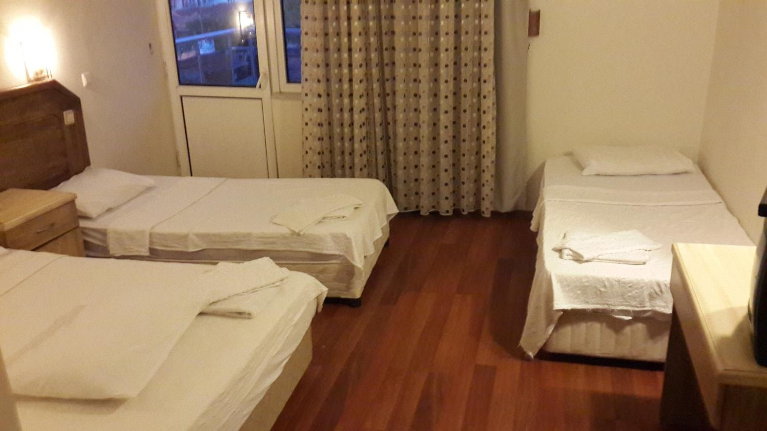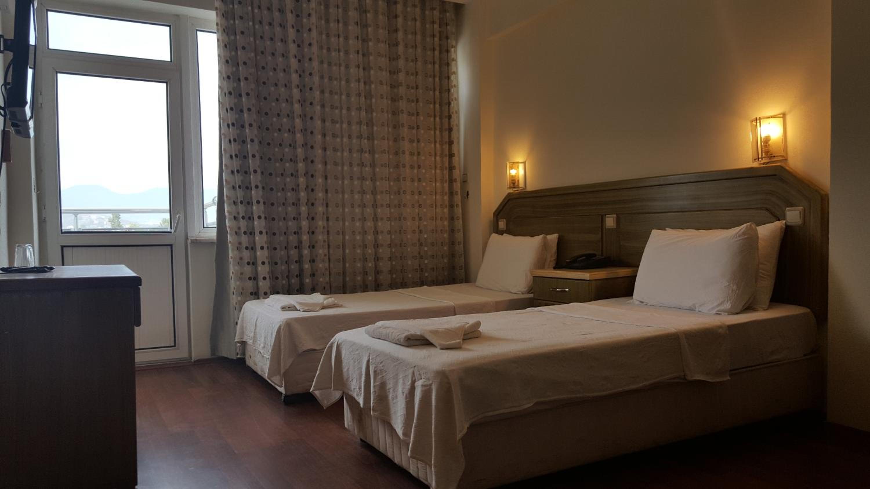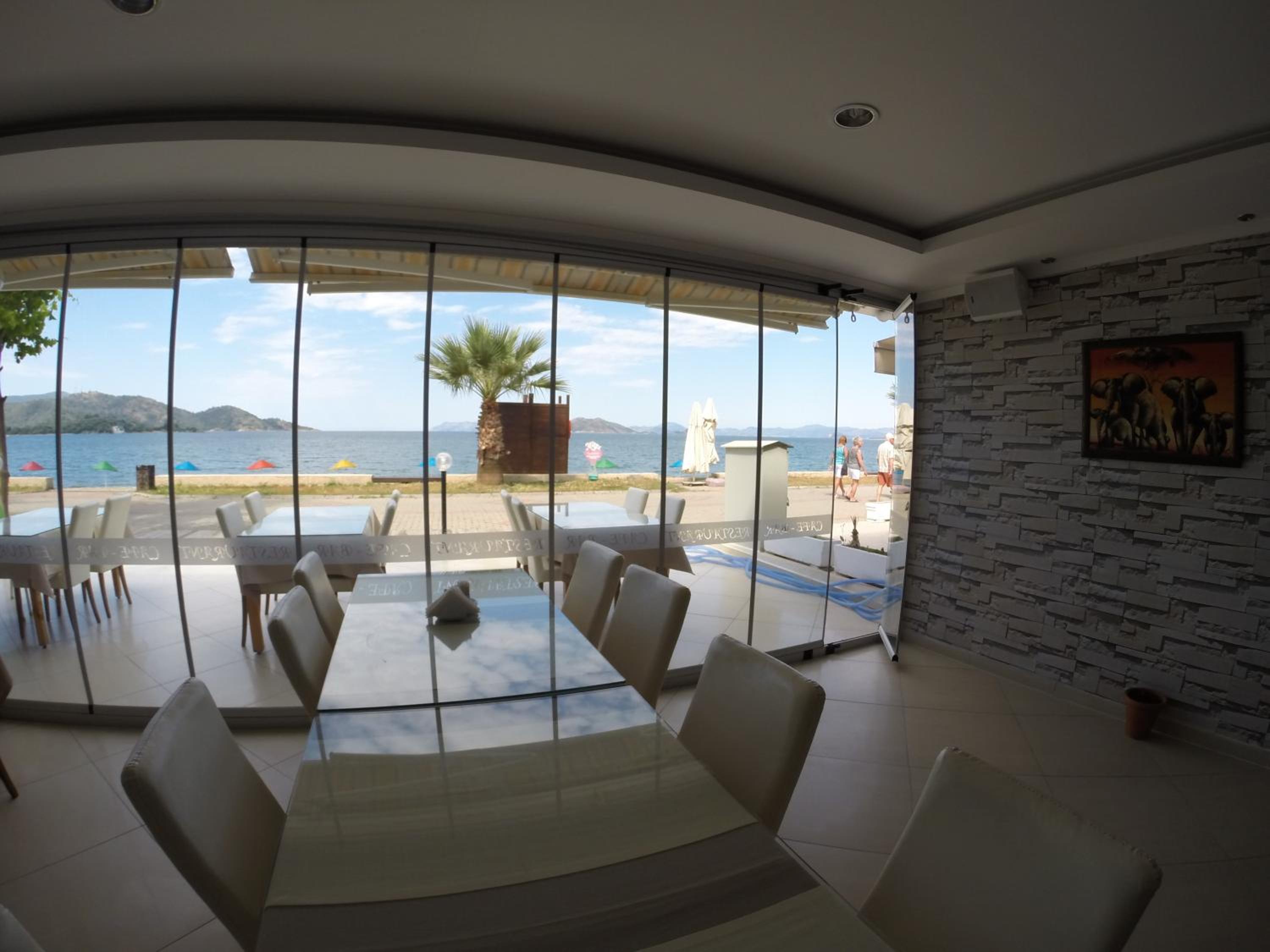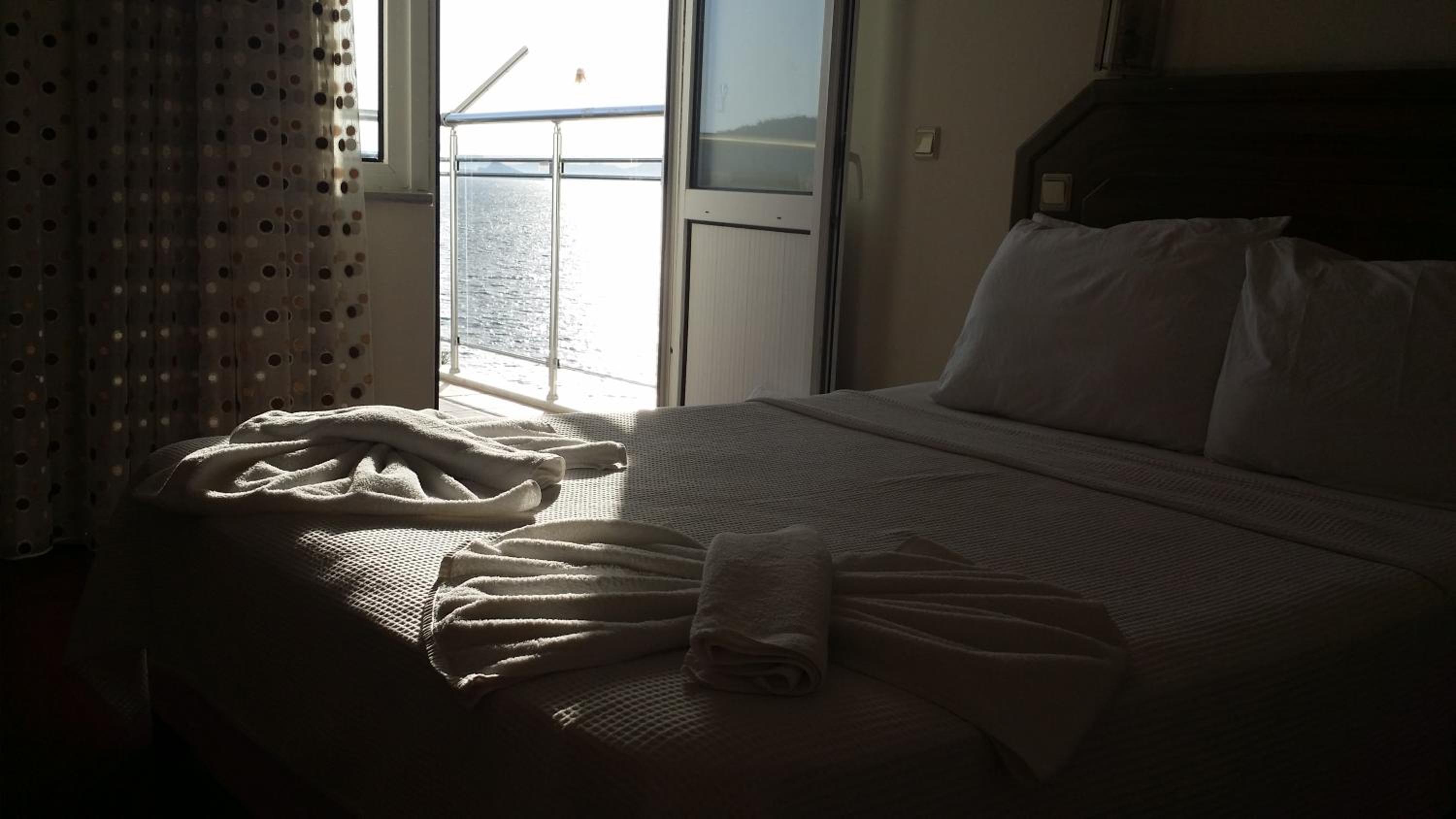 I booked this hotel because of the location - right on front of a beach. There are a few supermarkets nearby, and in 5 minutes of walk you reach the promenade that goes to central Fethiye, the walk is about 45-60 minutes, quite enjoyable, as there are parks and cafeterias and beautiful views to the sea. There are free public parking spaces in front of the hotel. There is a very nice balcony, where you can sit and enjoy the views to the mountains and the nearby boat channel. The WiFi was strong, the place also has a restaurant, but I did not try it. The rooms need renovation, but for the price I paid I am happy with what I got.
