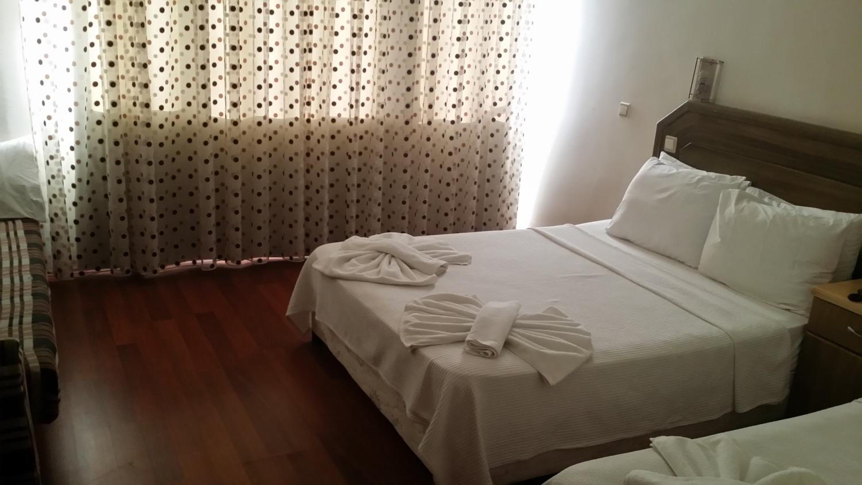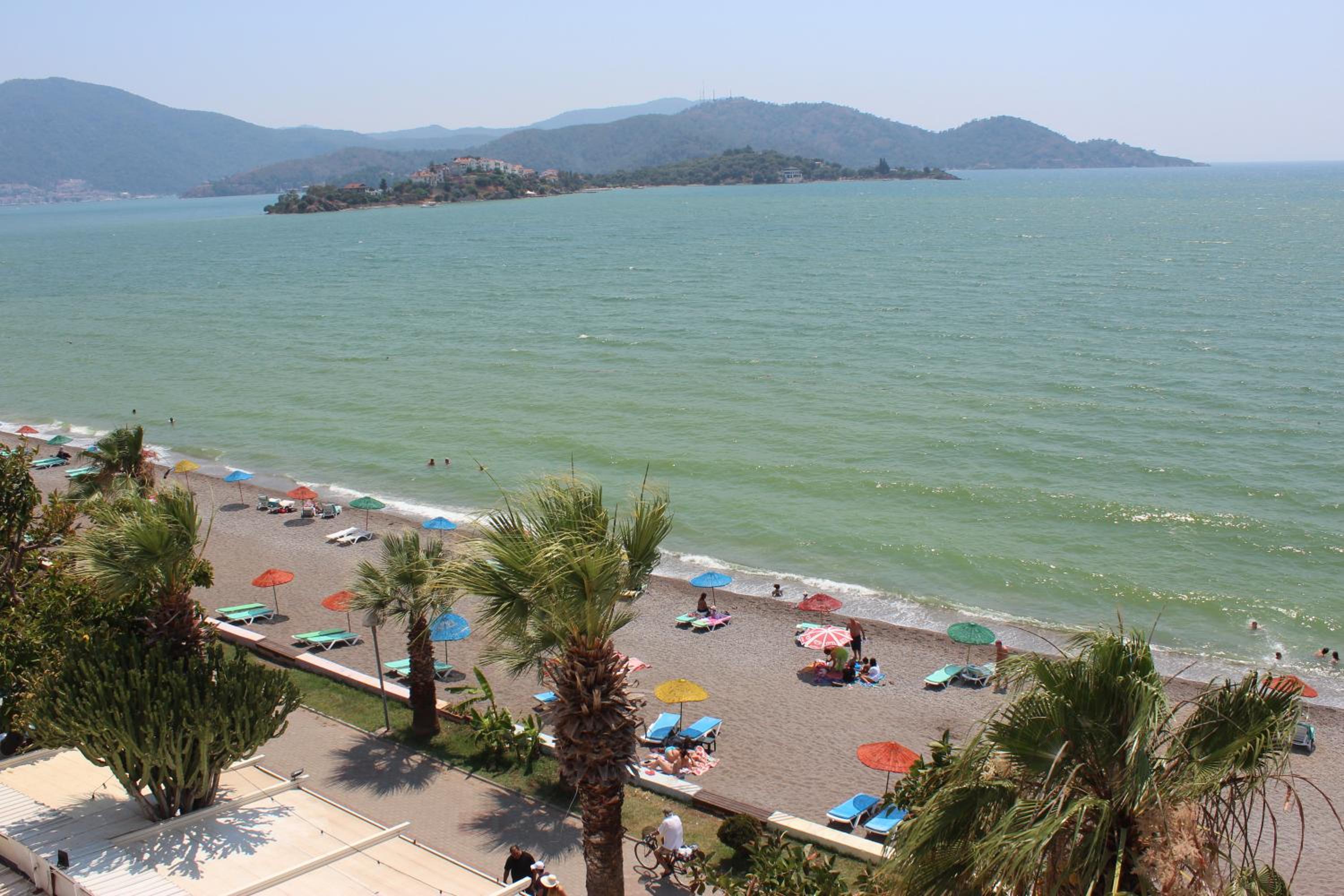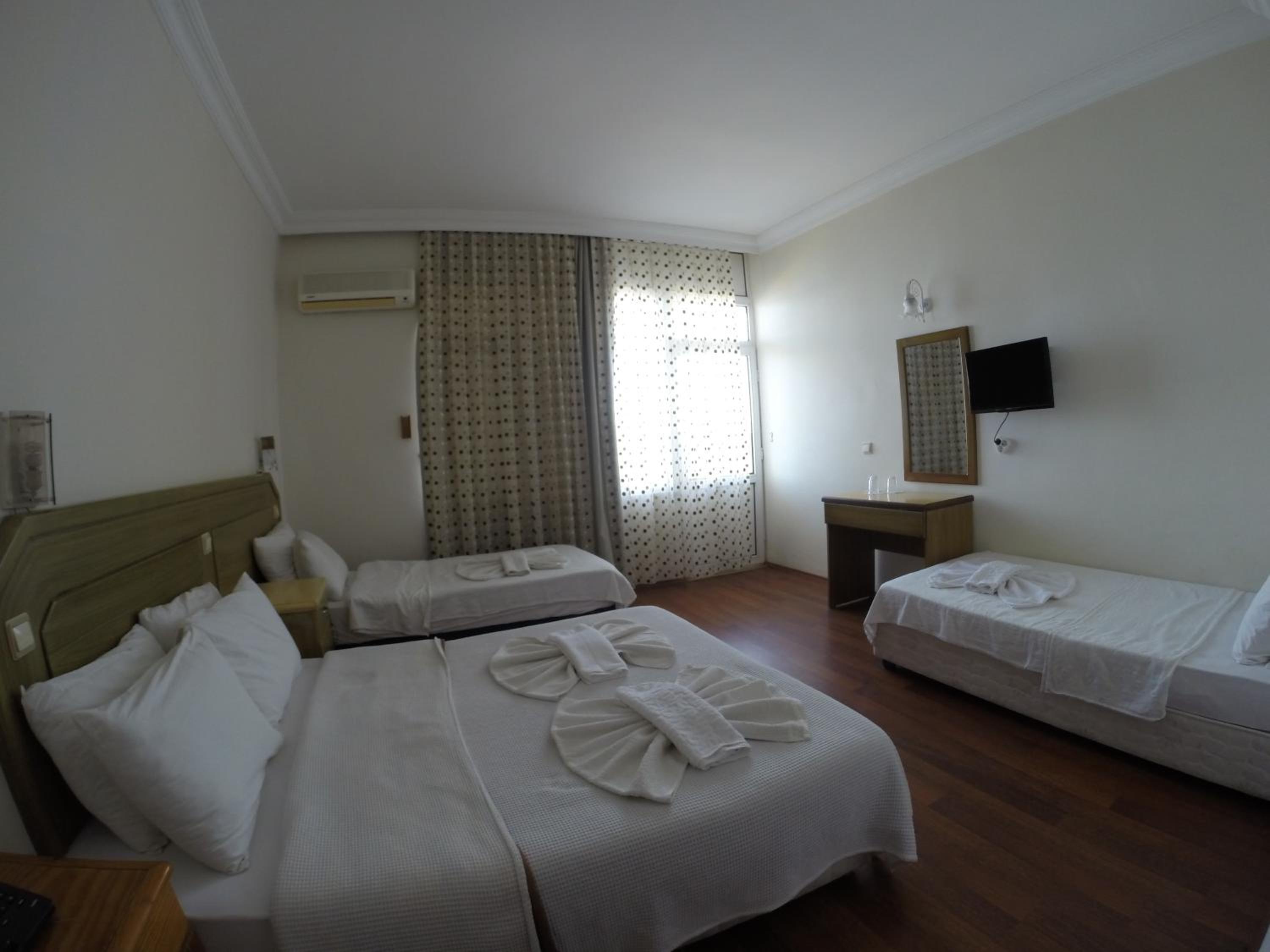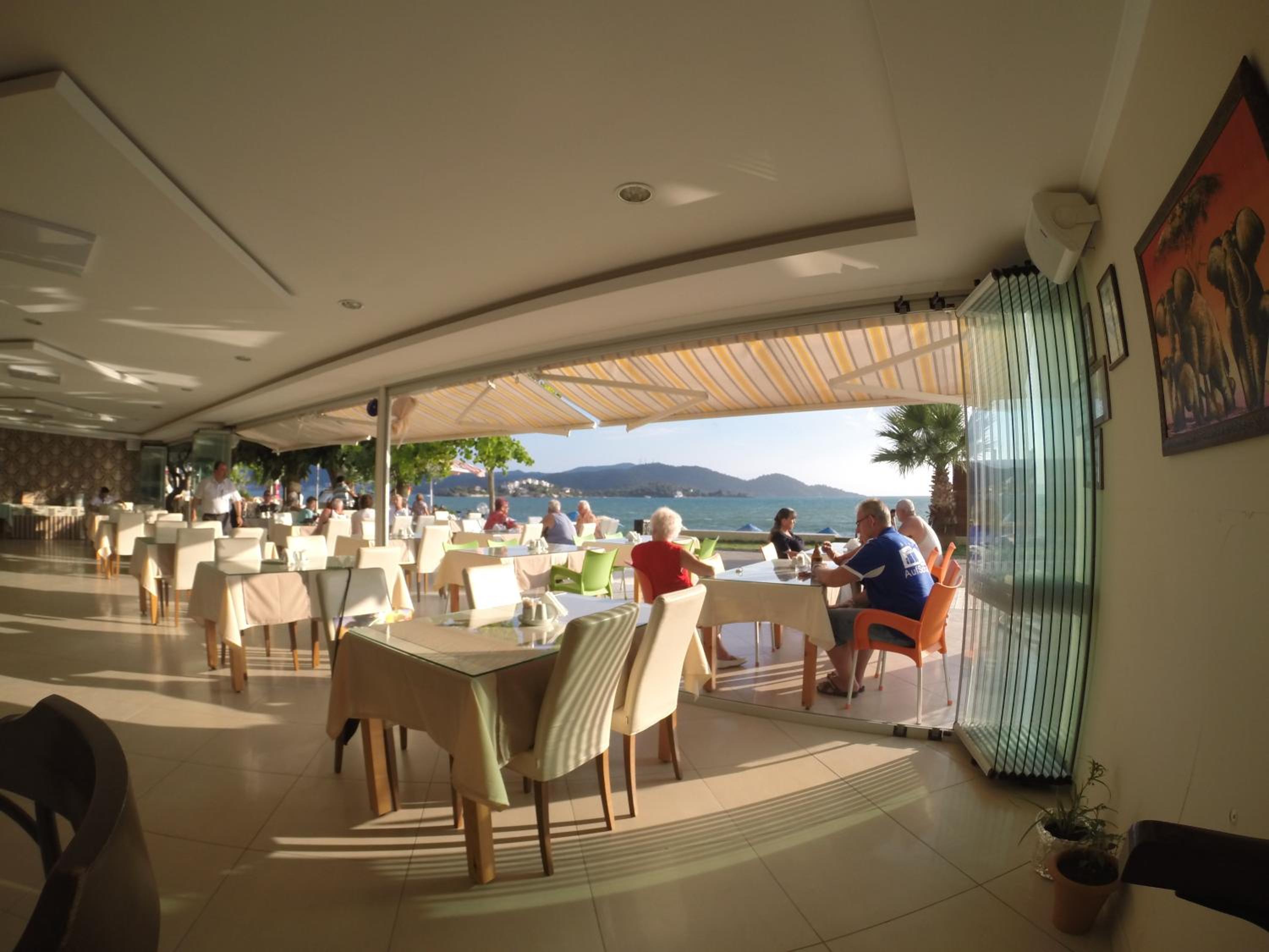 I booked this hotel because of the location - right on front of a beach. There are a few supermarkets nearby, and in 5 minutes of walk you reach the promenade that goes to central Fethiye, the walk is about 45-60 minutes, quite enjoyable, as there are parks and cafeterias and beautiful views to the sea. There are free public parking spaces in front of the hotel. There is a very nice balcony, where you can sit and enjoy the views to the mountains and the nearby boat channel. The WiFi was strong, the place also has a restaurant, but I did not try it. The rooms need renovation, but for the price I paid I am happy with what I got.