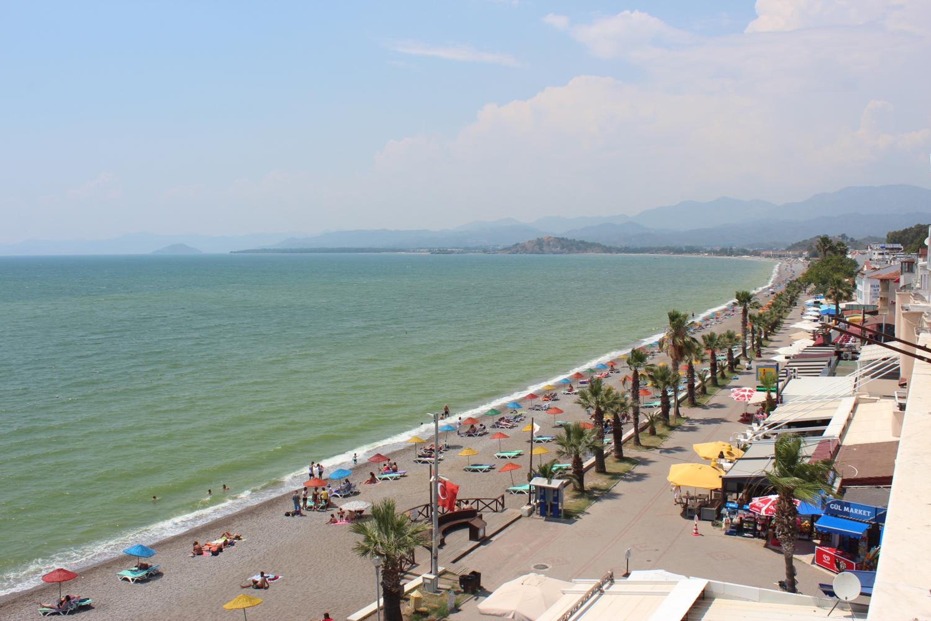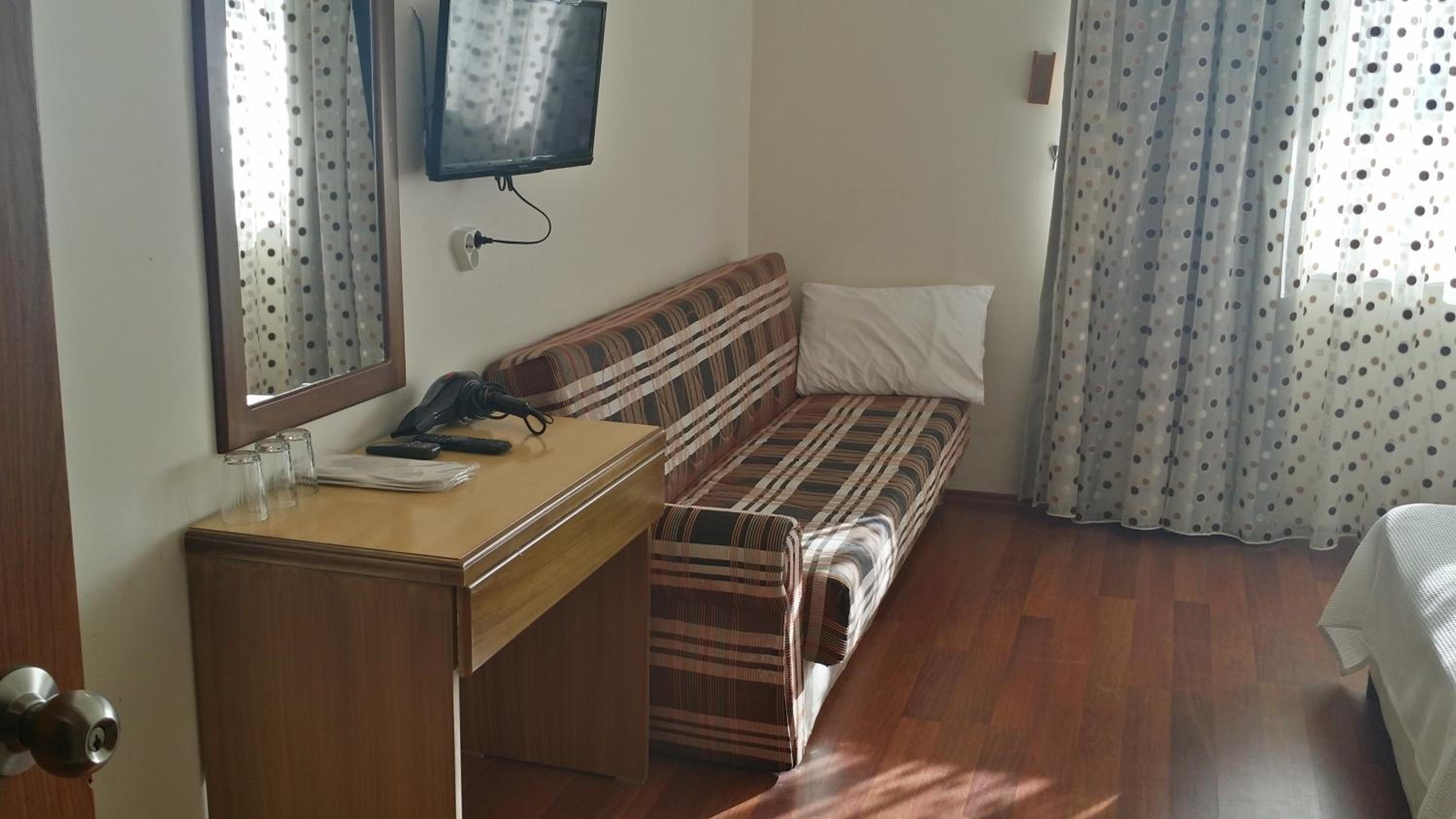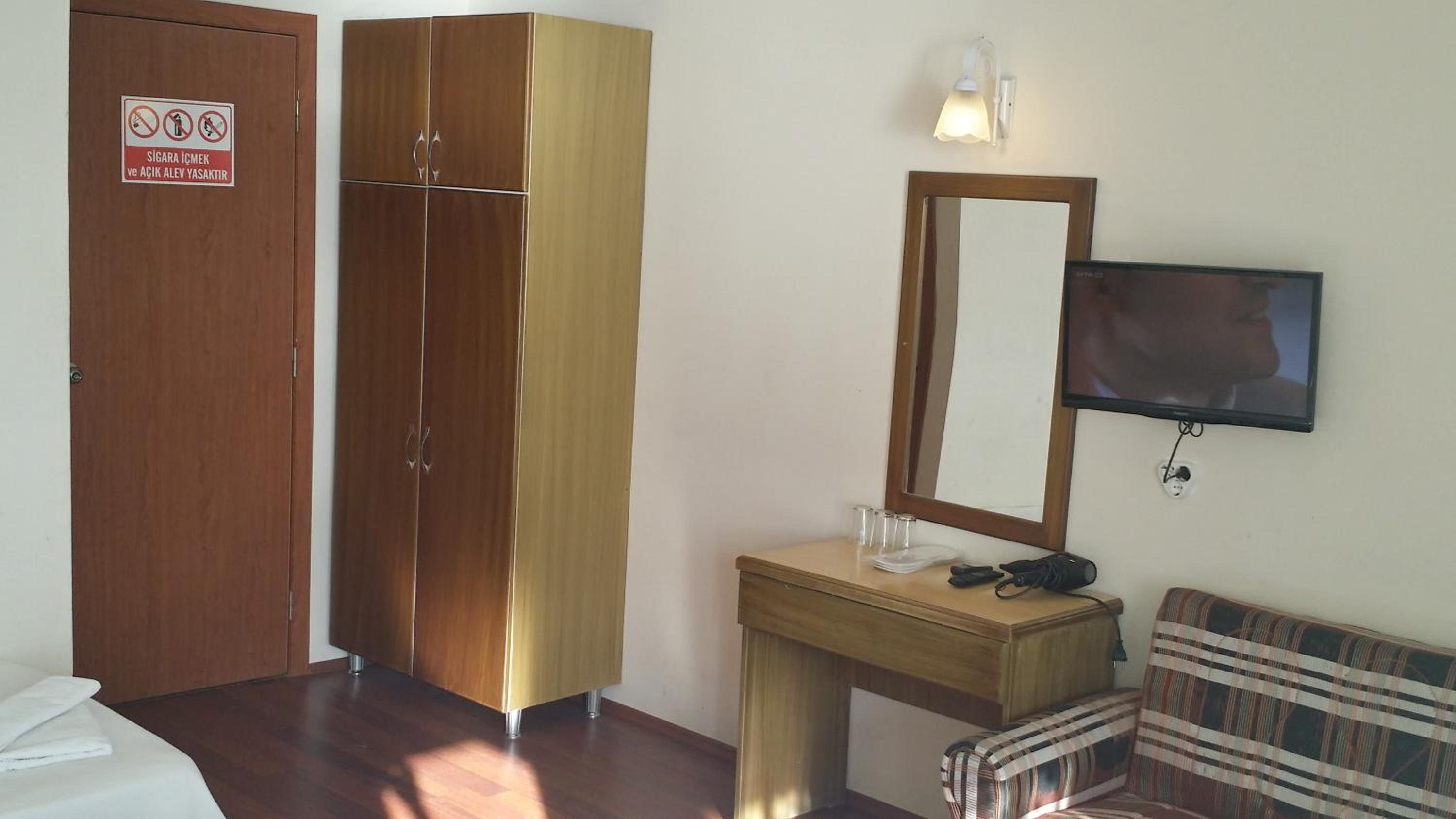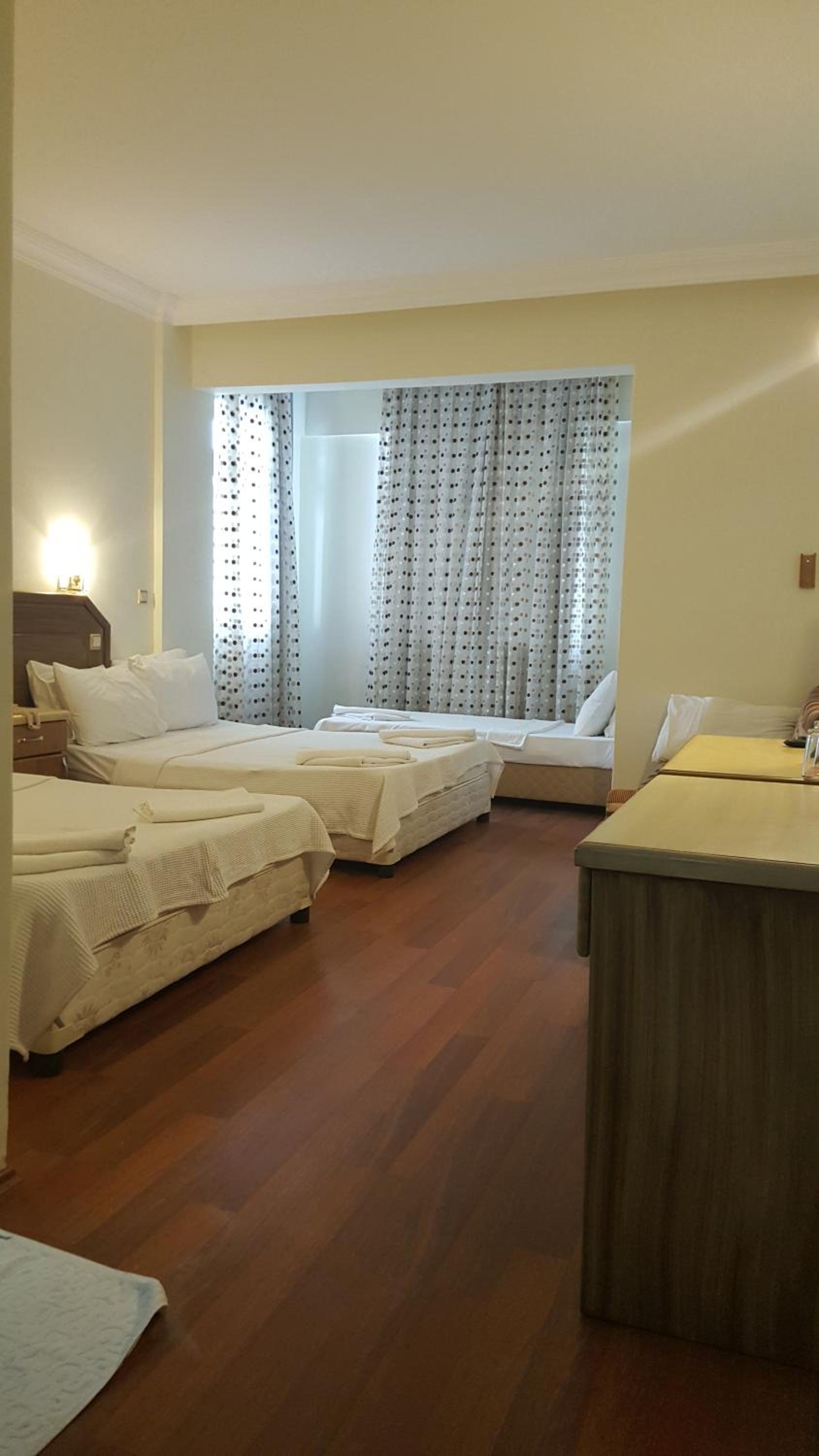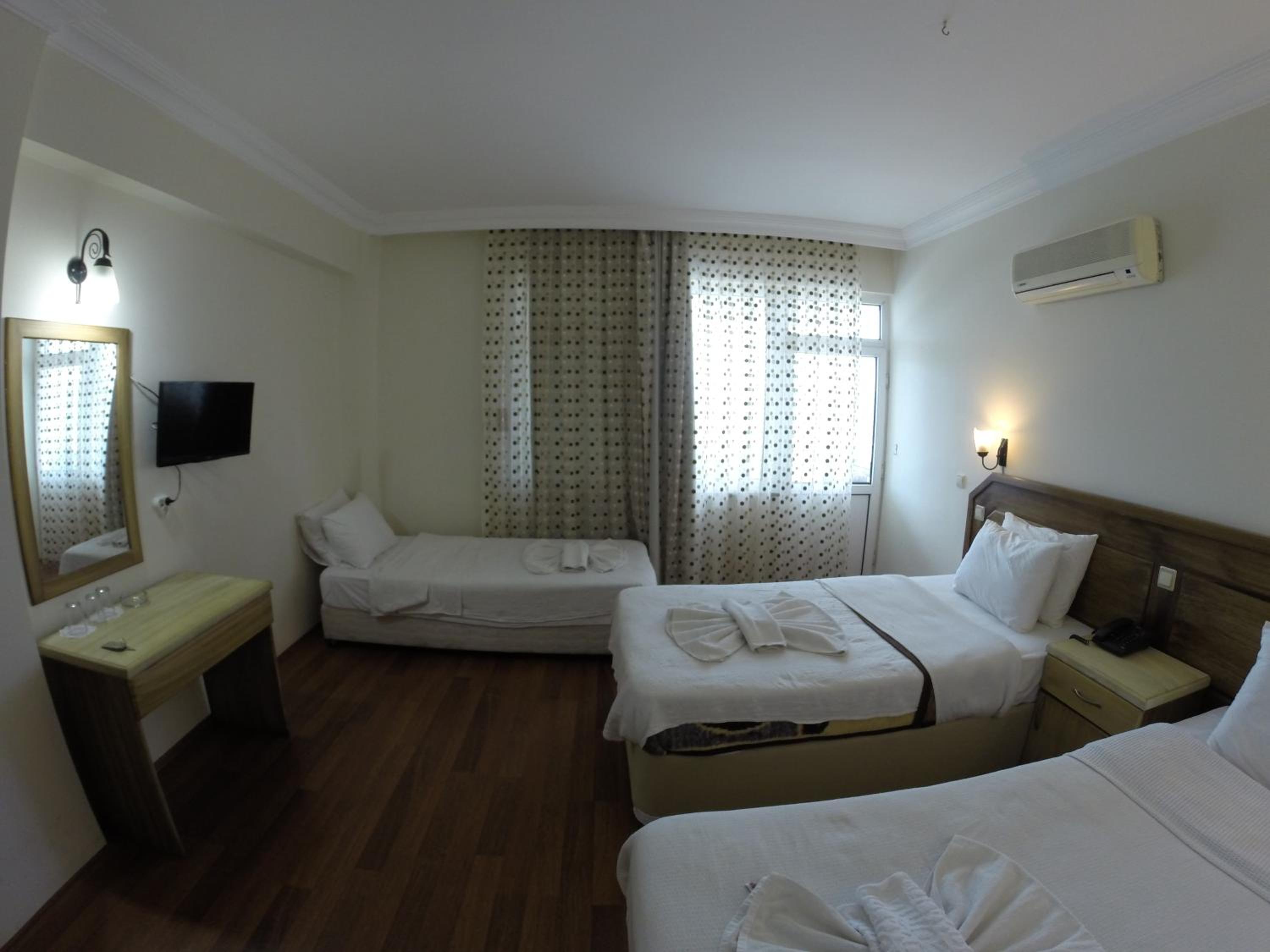 I booked this hotel because of the location - right on front of a beach. There are a few supermarkets nearby, and in 5 minutes of walk you reach the promenade that goes to central Fethiye, the walk is about 45-60 minutes, quite enjoyable, as there are parks and cafeterias and beautiful views to the sea. There are free public parking spaces in front of the hotel. There is a very nice balcony, where you can sit and enjoy the views to the mountains and the nearby boat channel. The WiFi was strong, the place also has a restaurant, but I did not try it. The rooms need renovation, but for the price I paid I am happy with what I got.