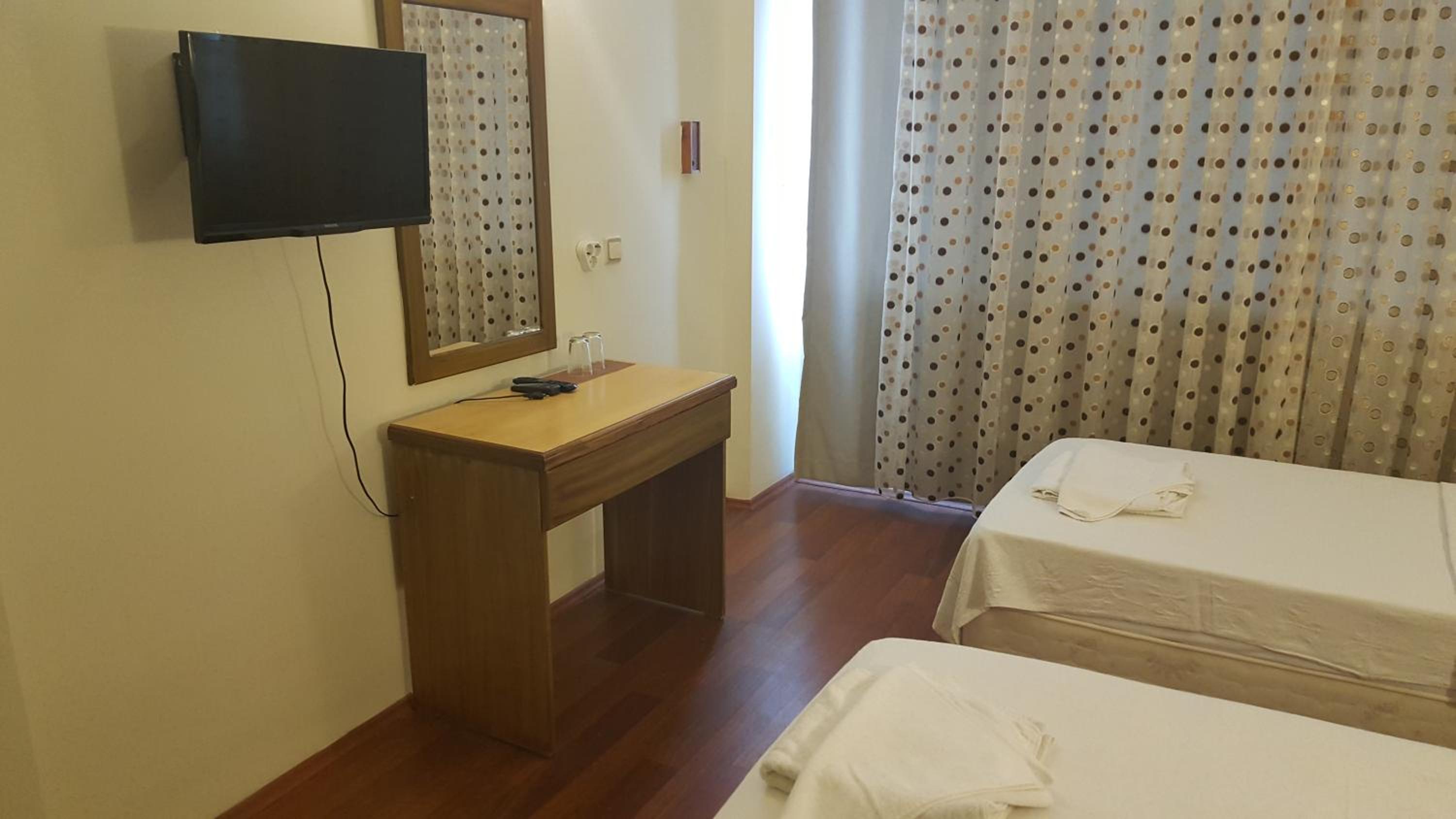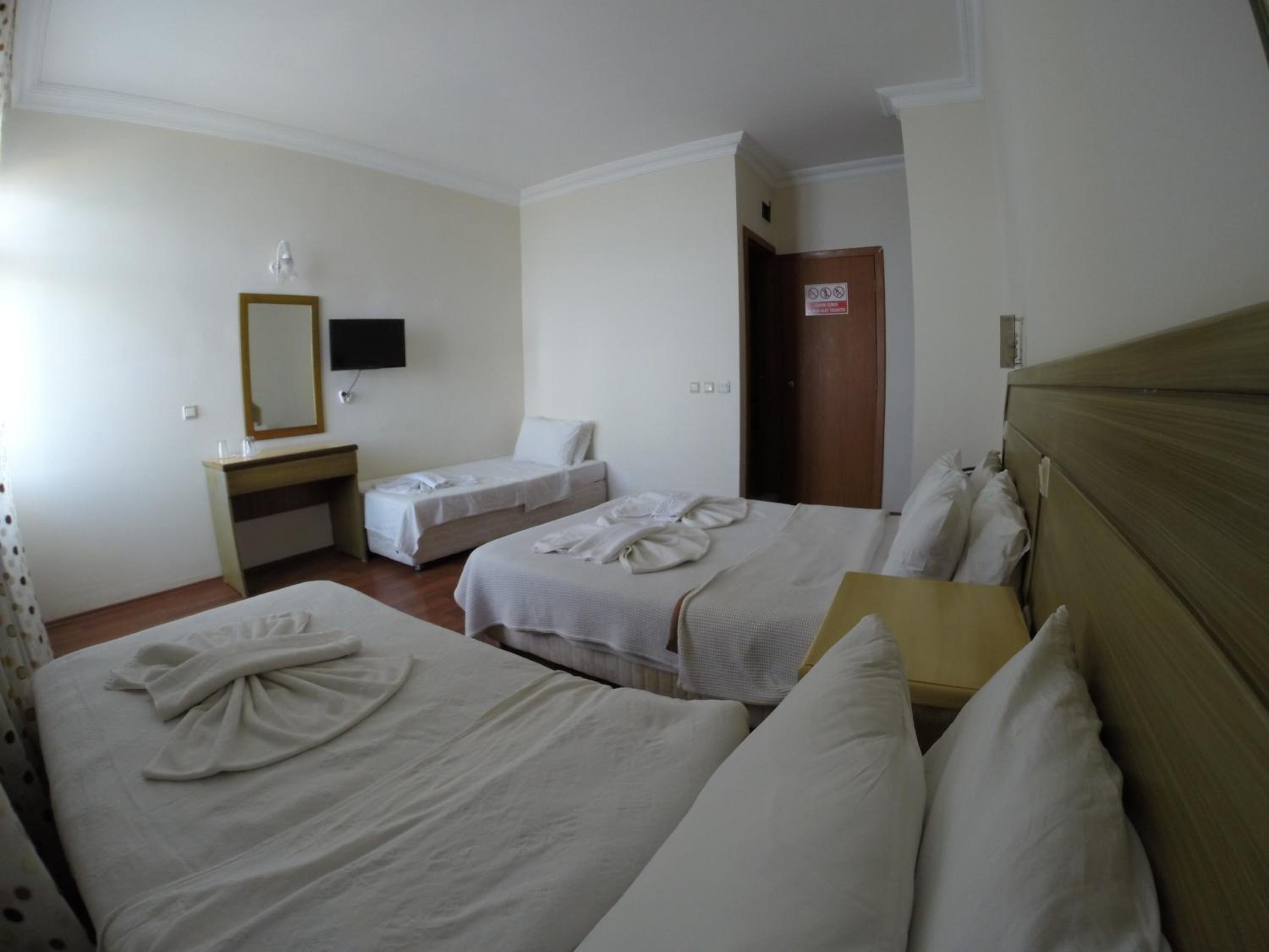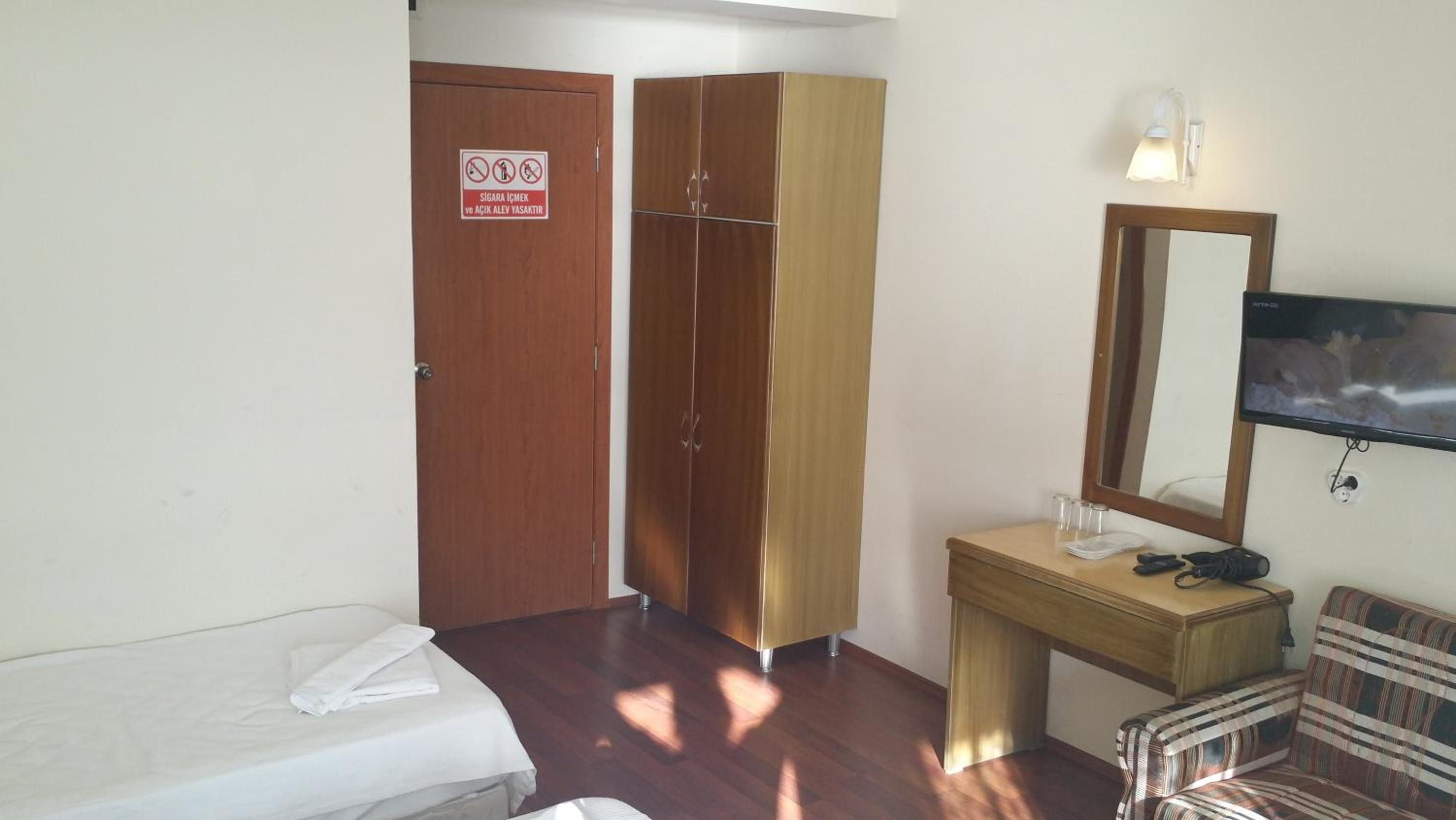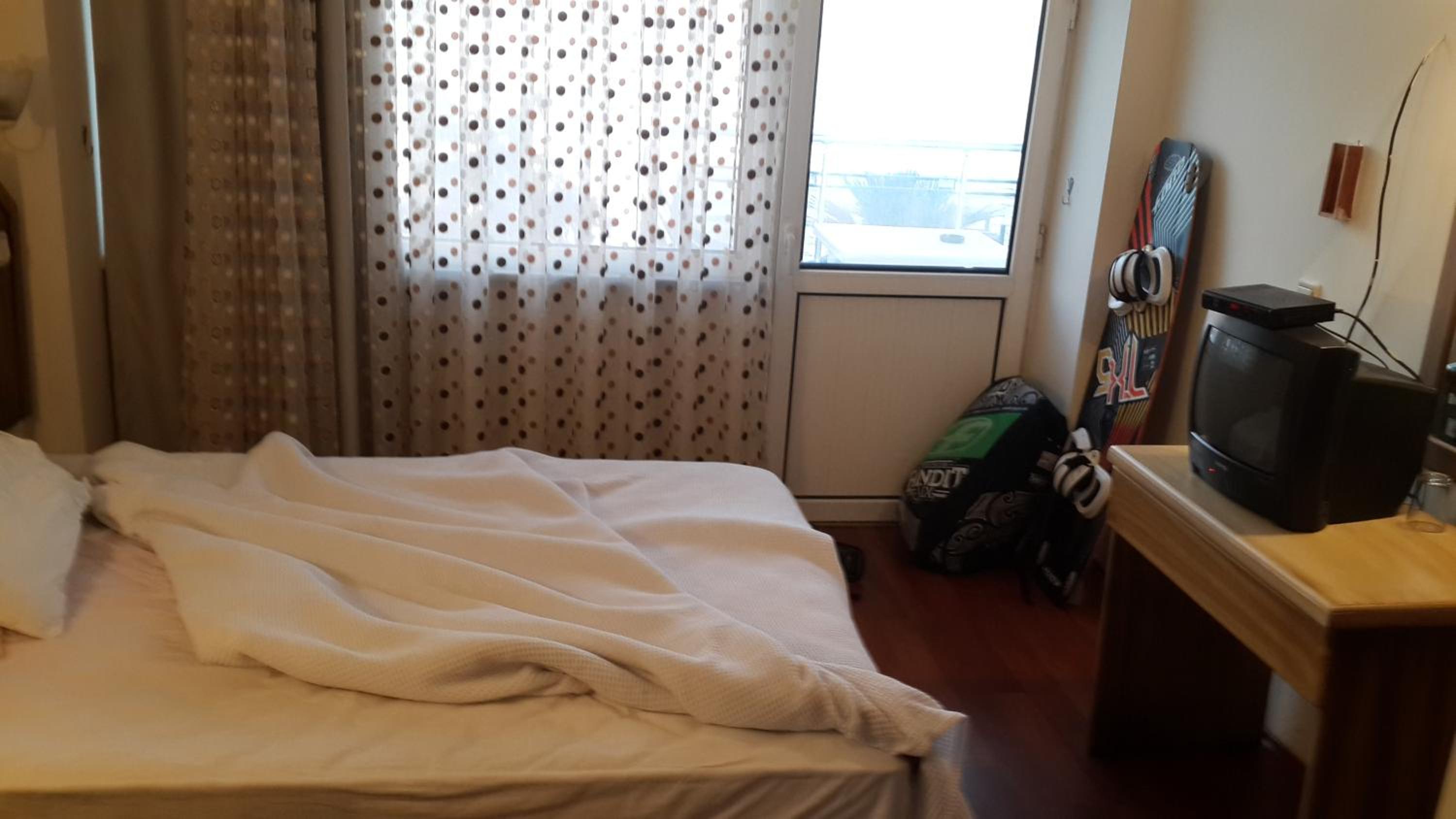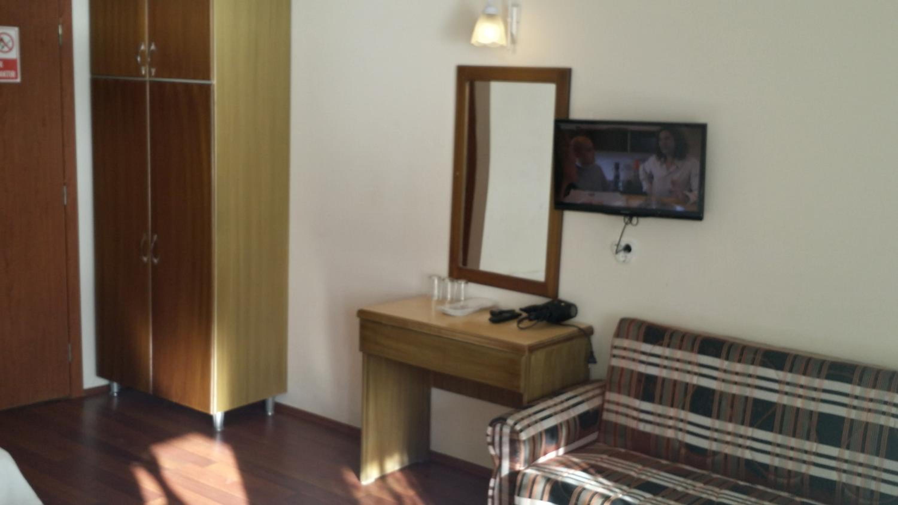 I booked this hotel because of the location - right on front of a beach. There are a few supermarkets nearby, and in 5 minutes of walk you reach the promenade that goes to central Fethiye, the walk is about 45-60 minutes, quite enjoyable, as there are parks and cafeterias and beautiful views to the sea. There are free public parking spaces in front of the hotel. There is a very nice balcony, where you can sit and enjoy the views to the mountains and the nearby boat channel. The WiFi was strong, the place also has a restaurant, but I did not try it. The rooms need renovation, but for the price I paid I am happy with what I got.