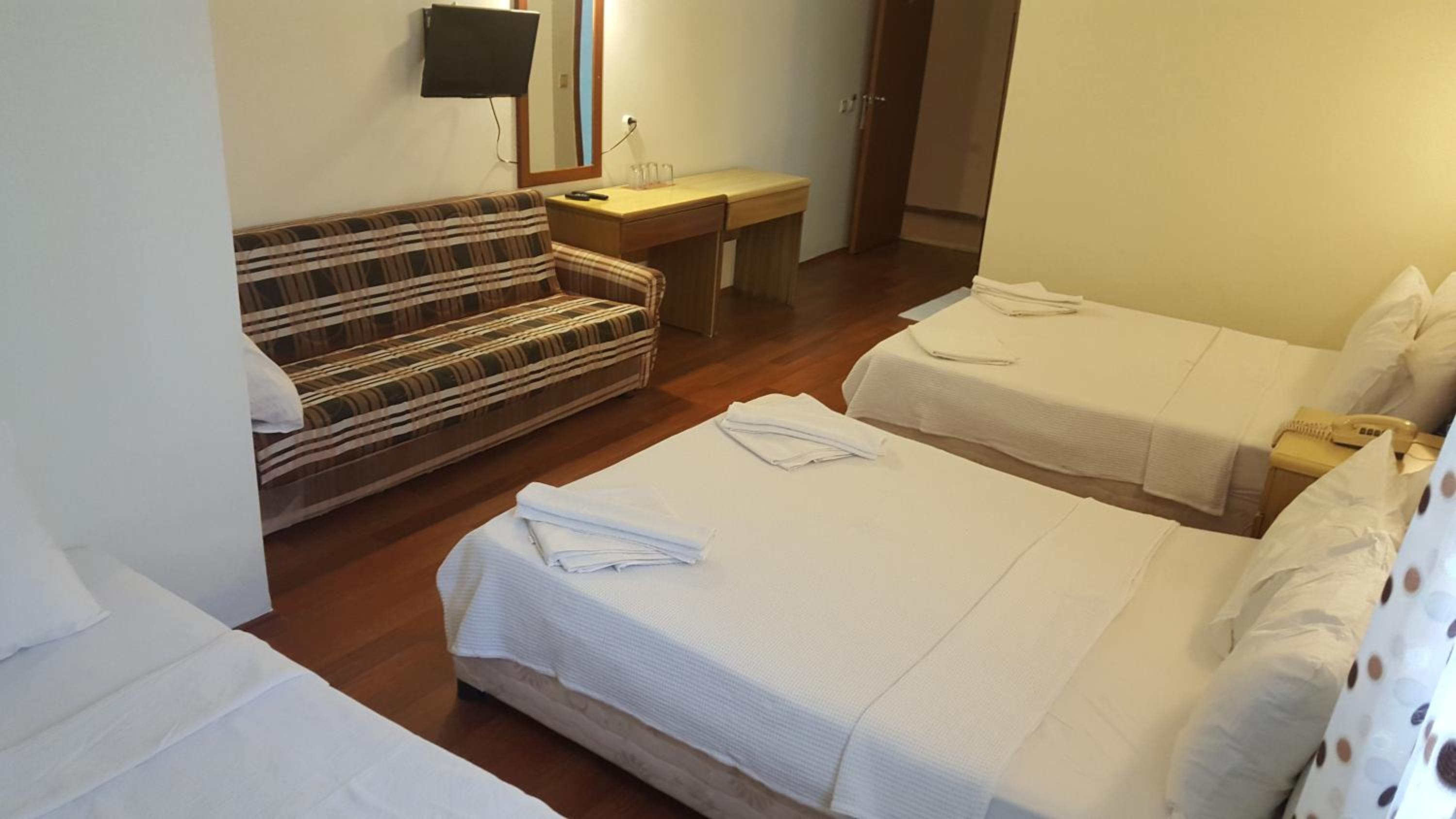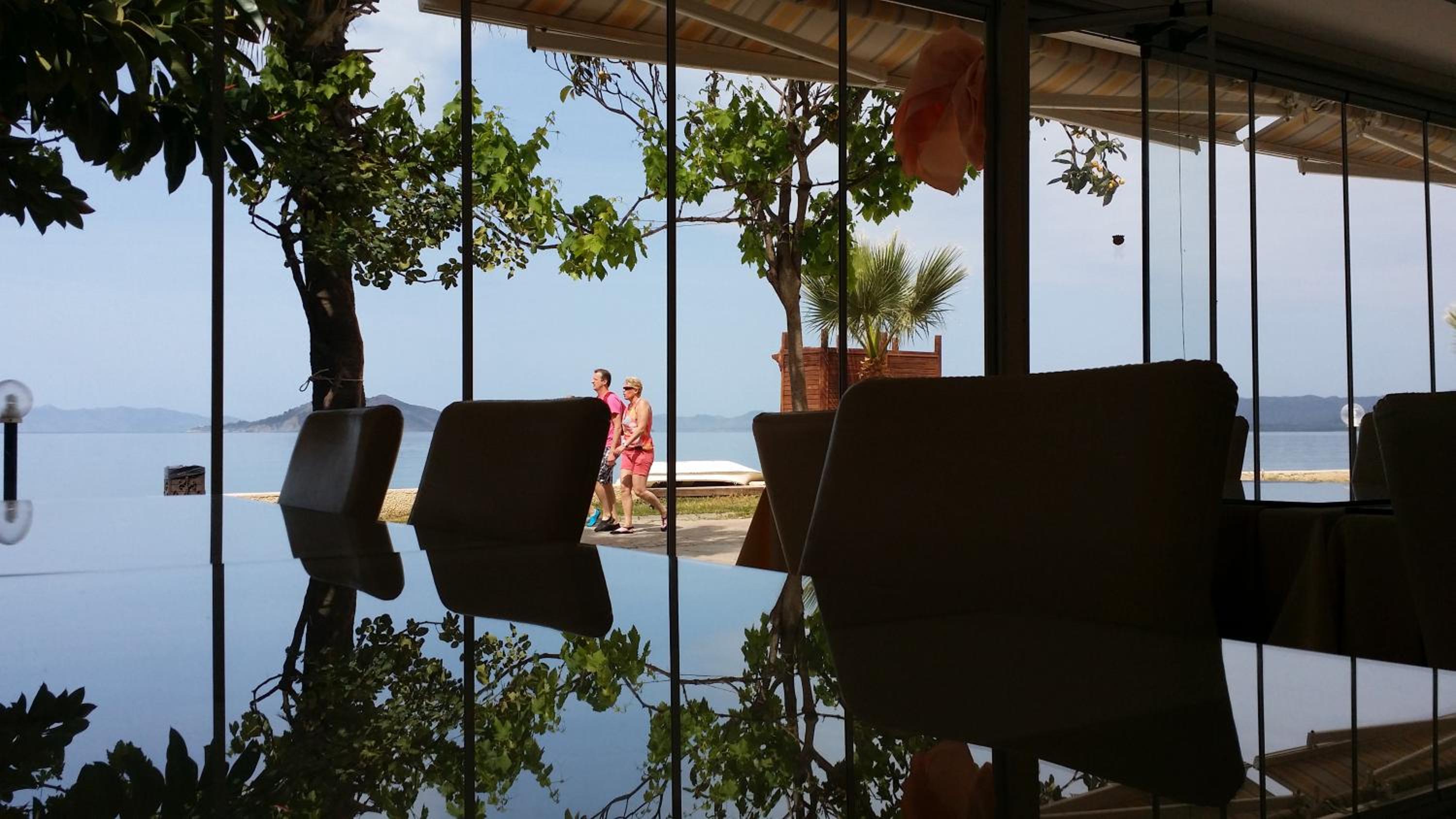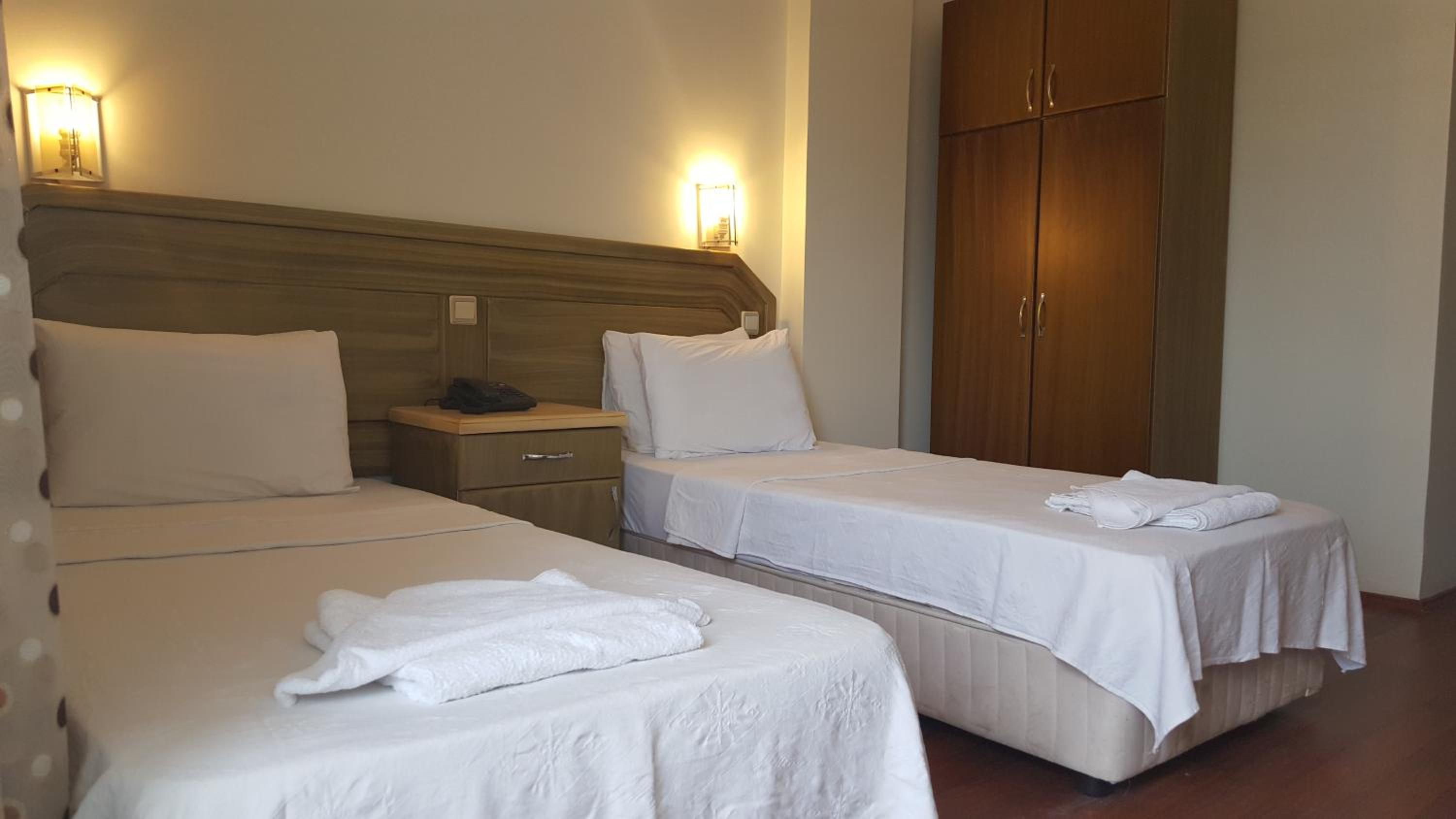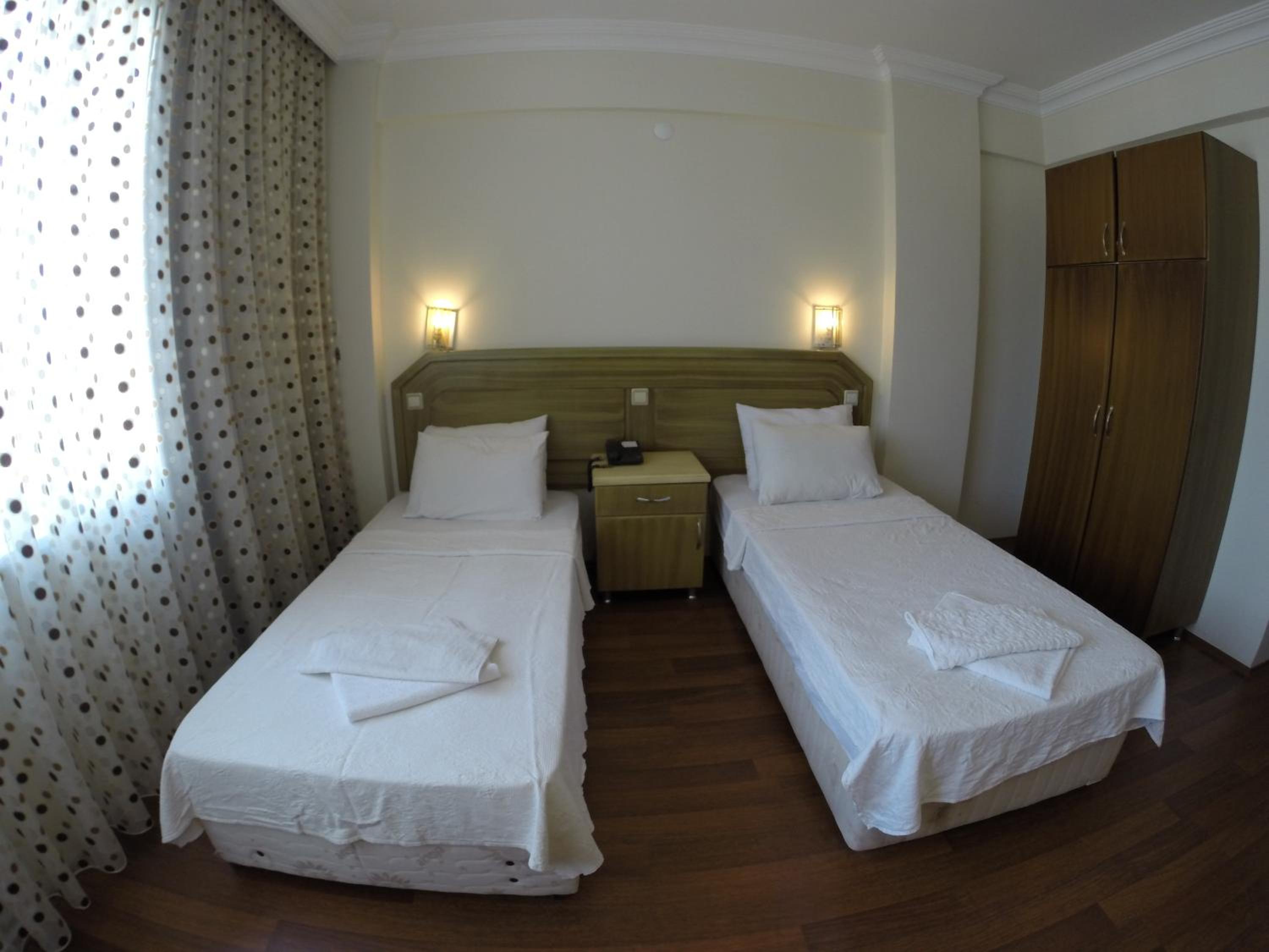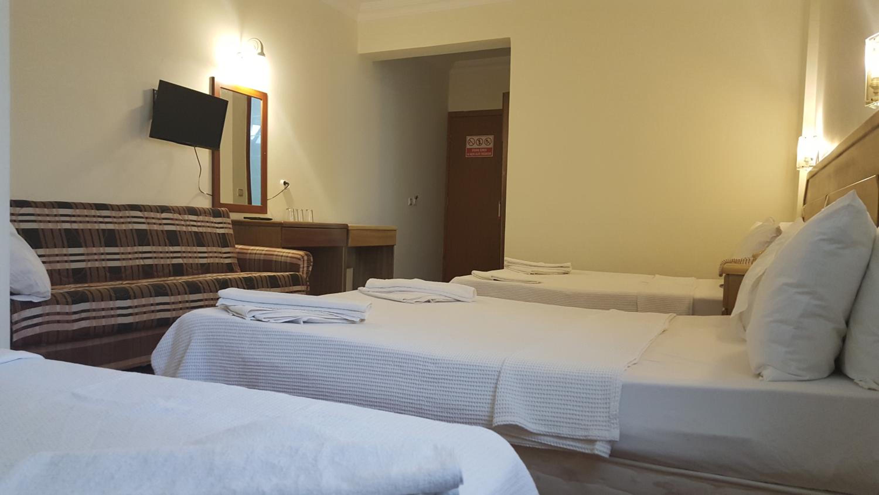 I booked this hotel because of the location - right on front of a beach. There are a few supermarkets nearby, and in 5 minutes of walk you reach the promenade that goes to central Fethiye, the walk is about 45-60 minutes, quite enjoyable, as there are parks and cafeterias and beautiful views to the sea. There are free public parking spaces in front of the hotel. There is a very nice balcony, where you can sit and enjoy the views to the mountains and the nearby boat channel. The WiFi was strong, the place also has a restaurant, but I did not try it. The rooms need renovation, but for the price I paid I am happy with what I got.
