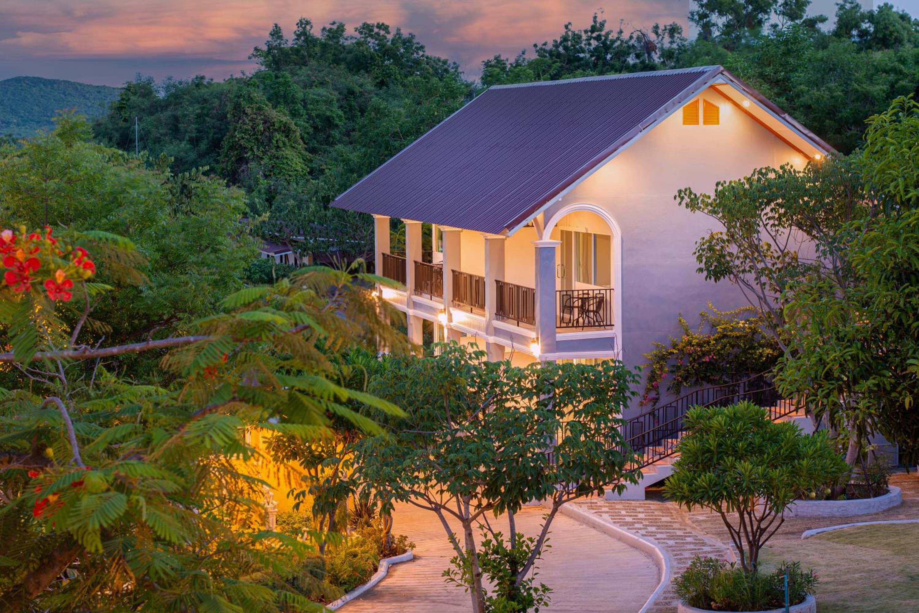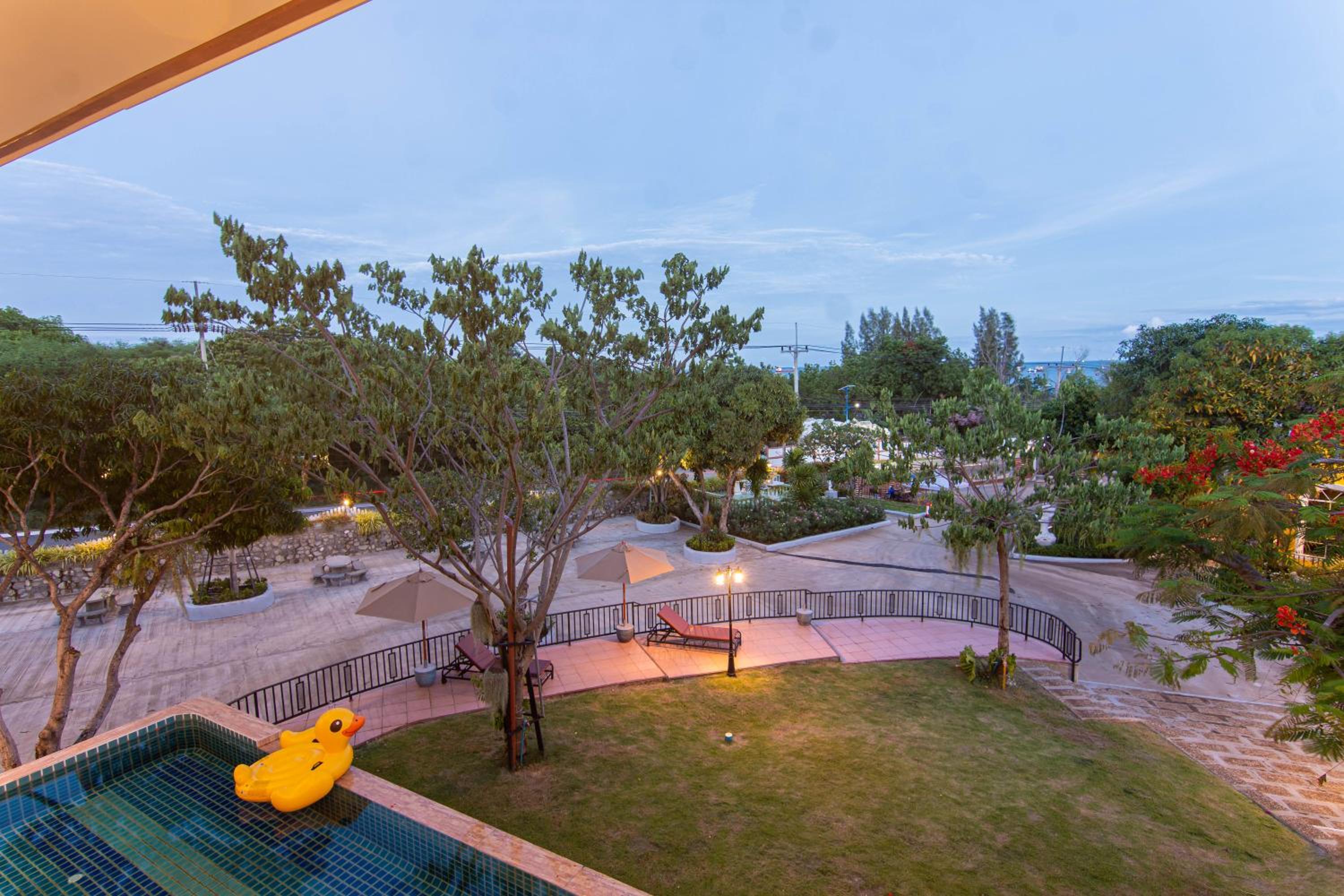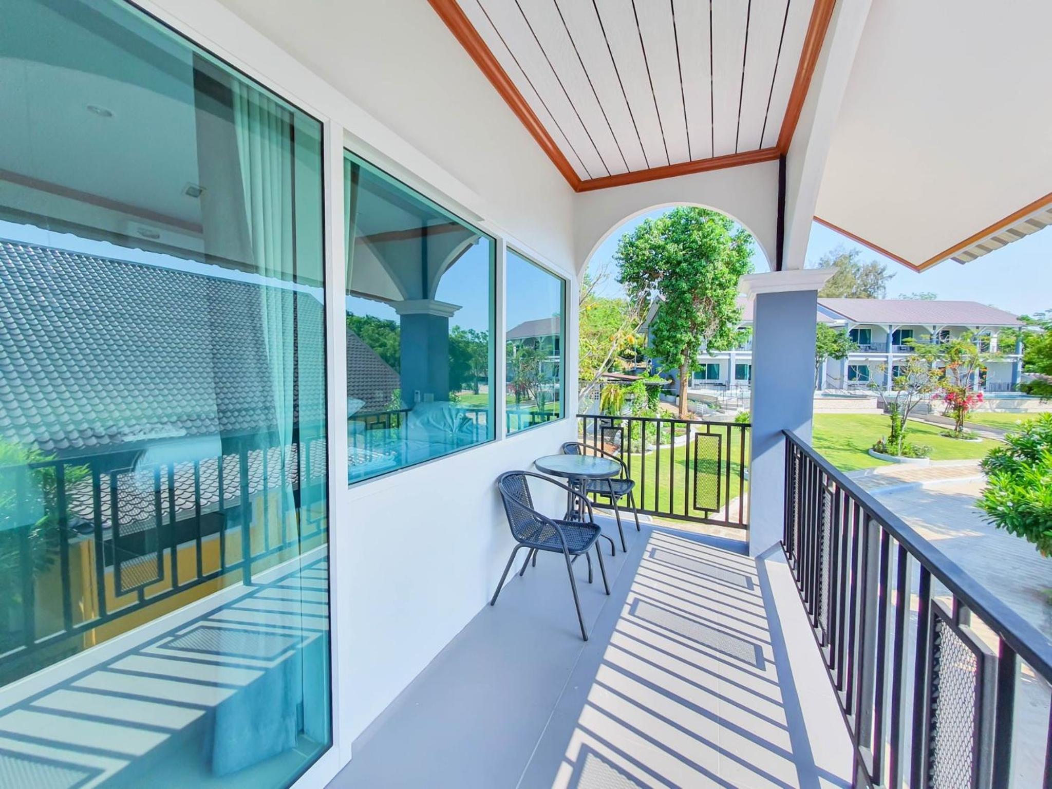 Enjoy the lush garden surroundings and unwind on the terrace at Seattle Samaesarn Resort.