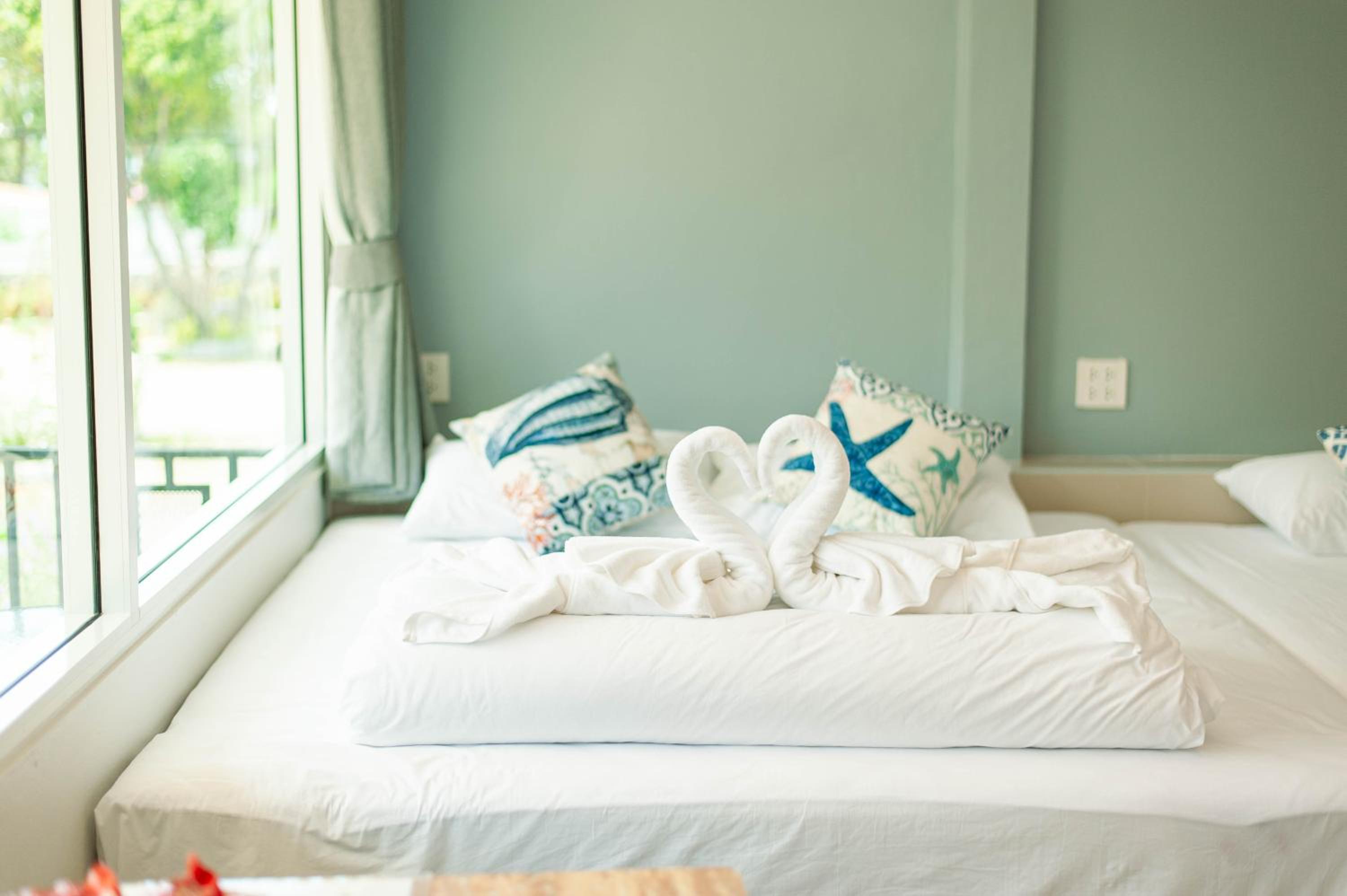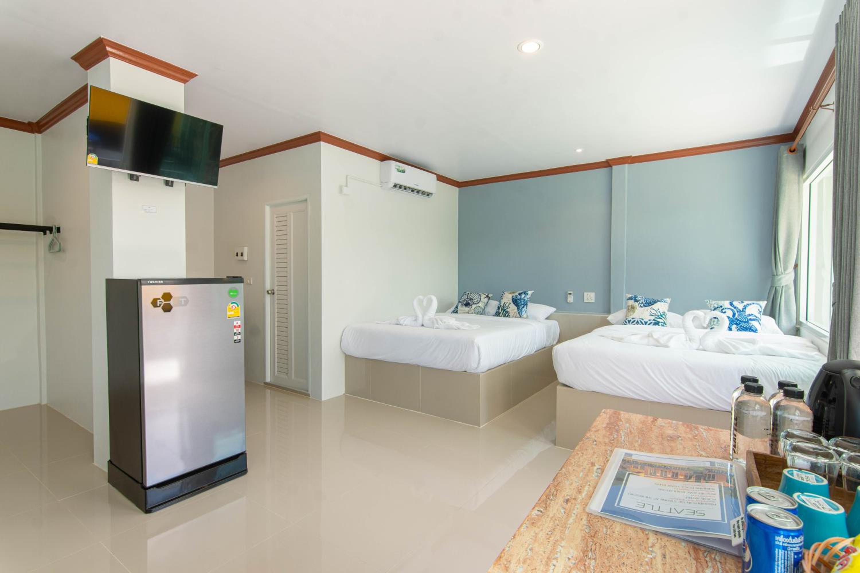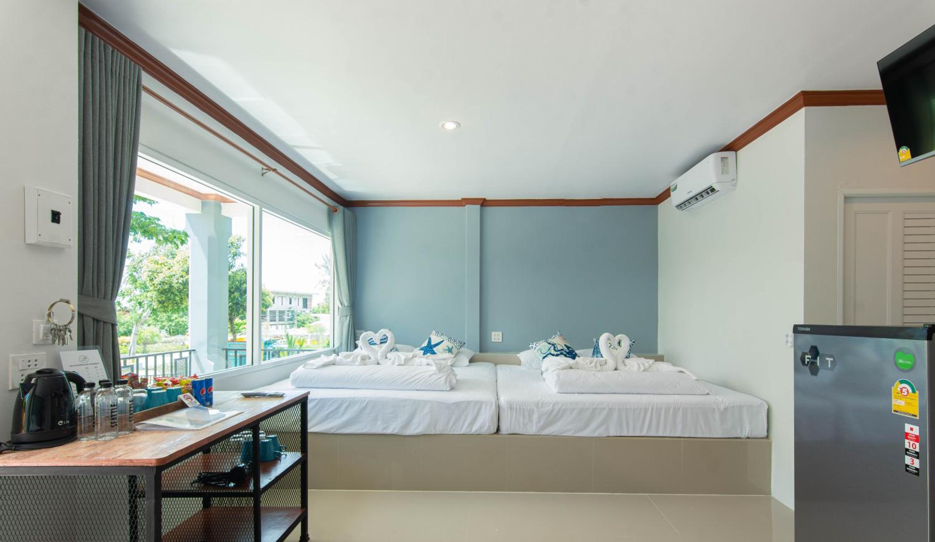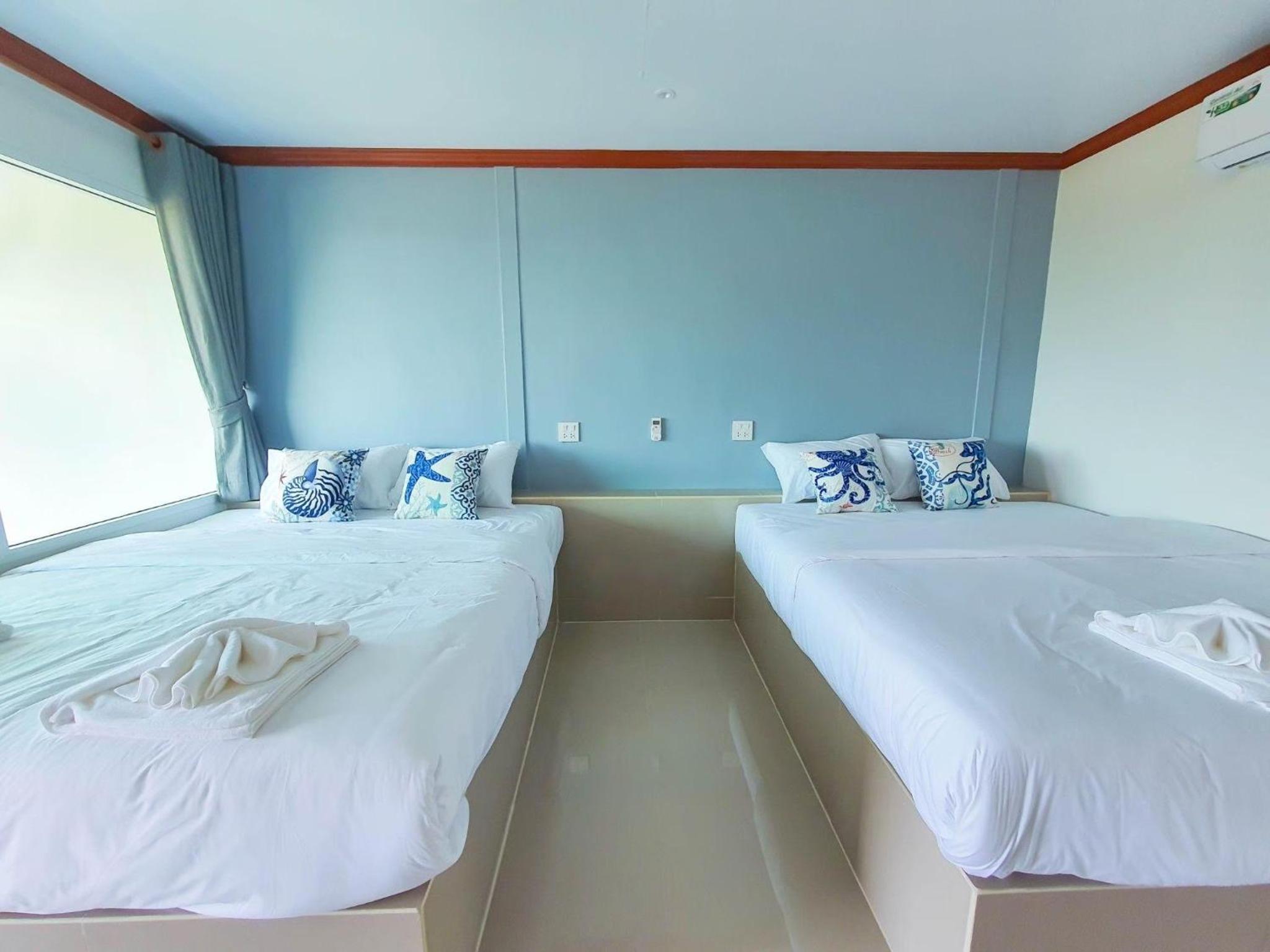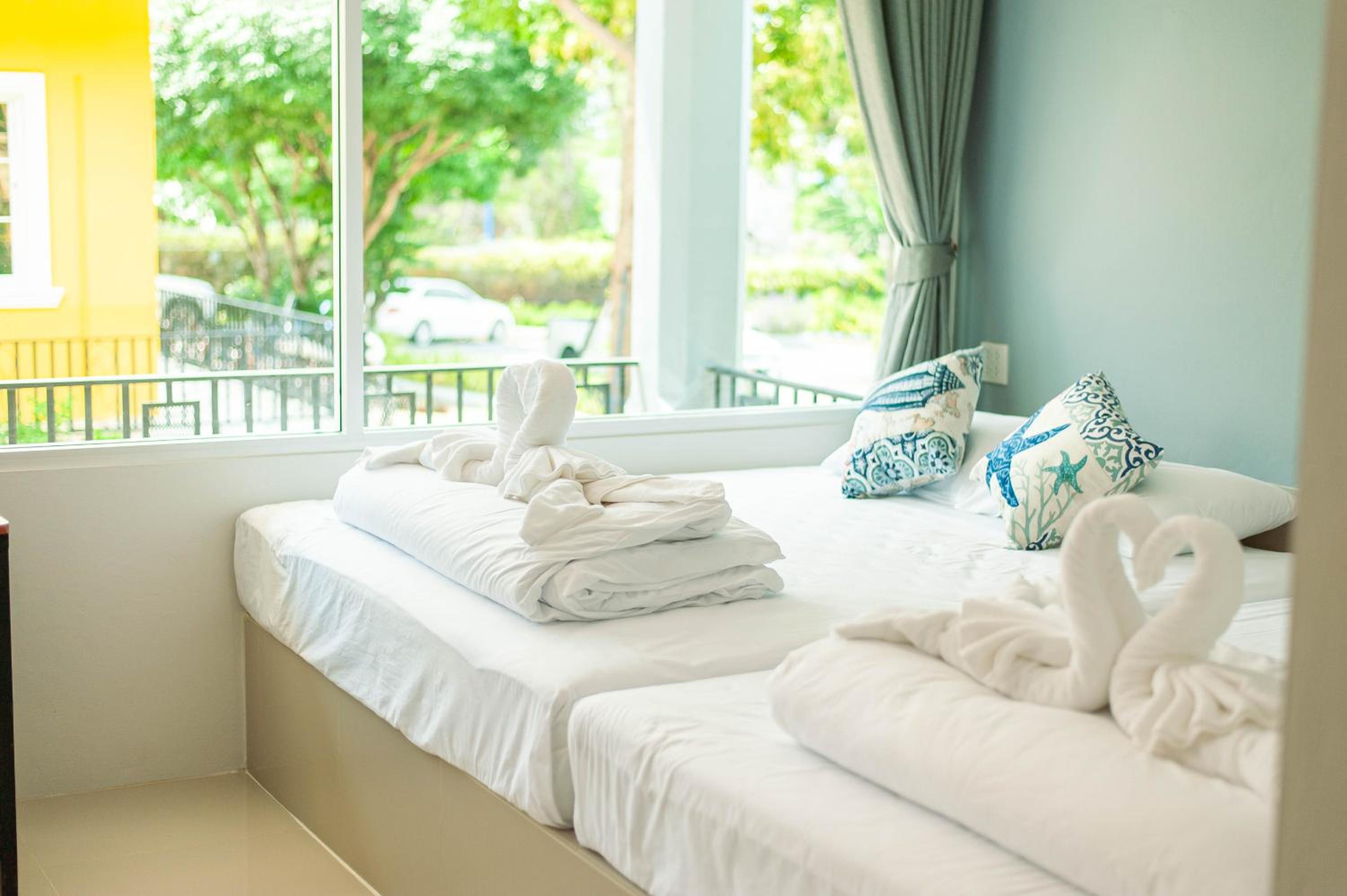 Standard beds for Thailand which are a bit hard. Should be complemented with a topper to make beds softer.