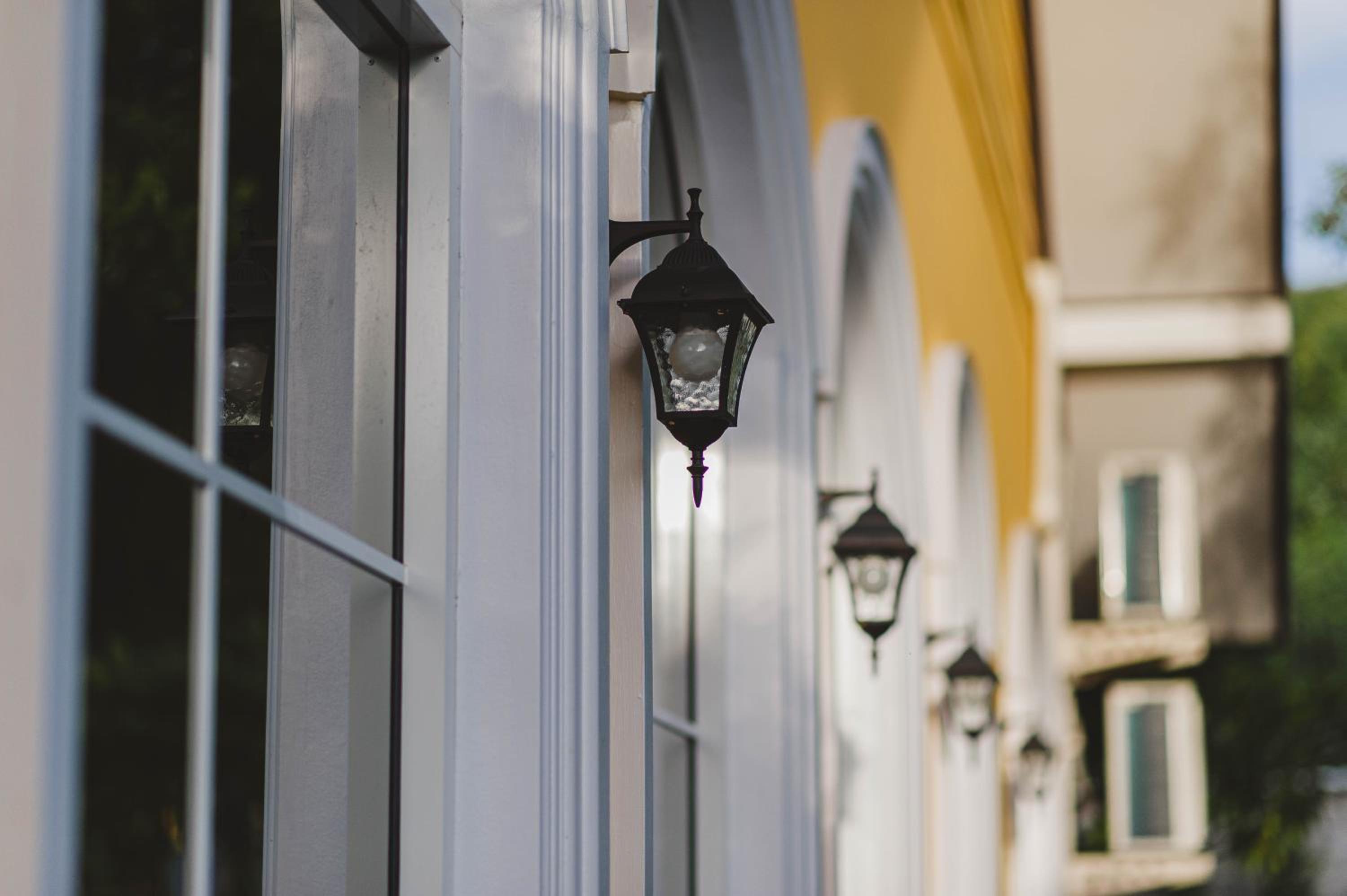 Hotel looks fresh and modern, beautiful main building.