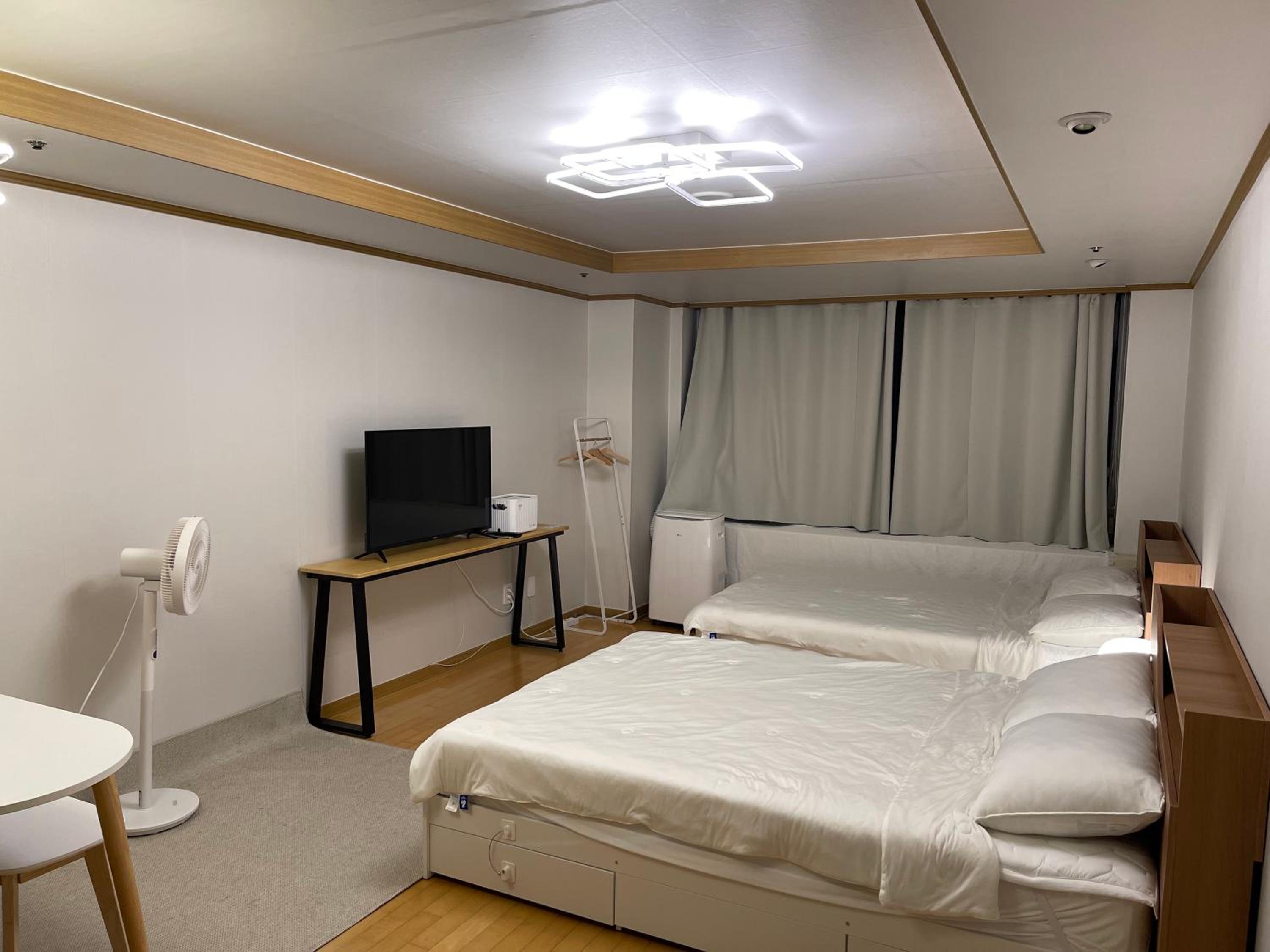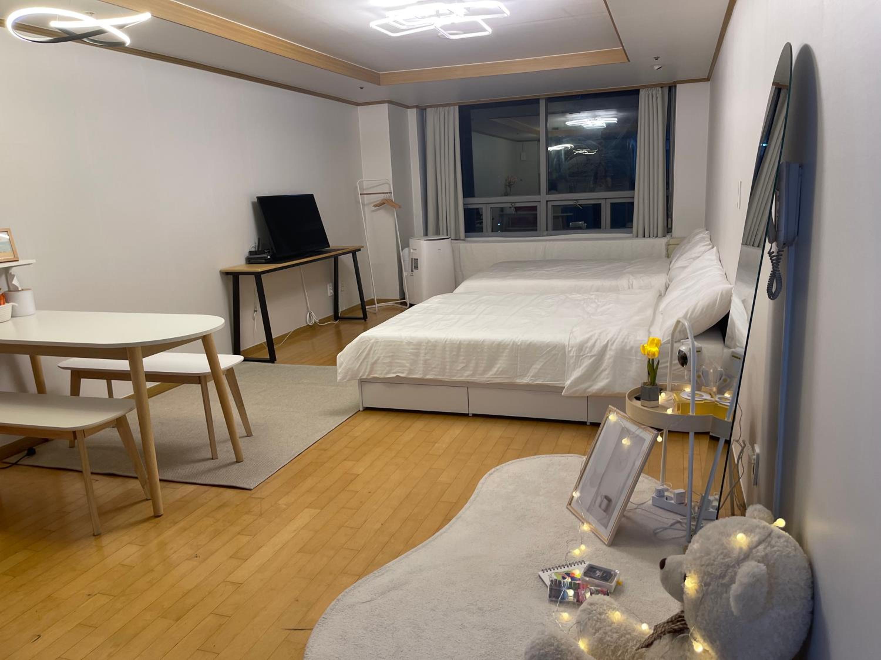 They are very thoughful and sweet! They already prepare everything for you! The host is super nice and friendly to help us solve problems. And the location is very very gooood! It's the best location in Hongdae university station. And the welcome food for us was a nice touch👍And I was so grateful that they prepared a mobile air conditioner in addition to the room air conditioner, saying that the weather has gotten hotter these days. There is also a foot massage machine, so it is good to relieve fatigue every evening and the host is really kind🫶