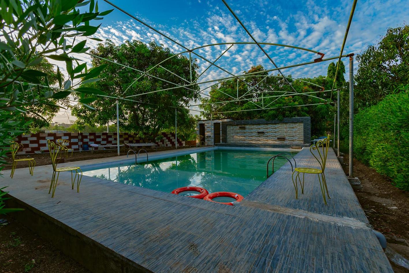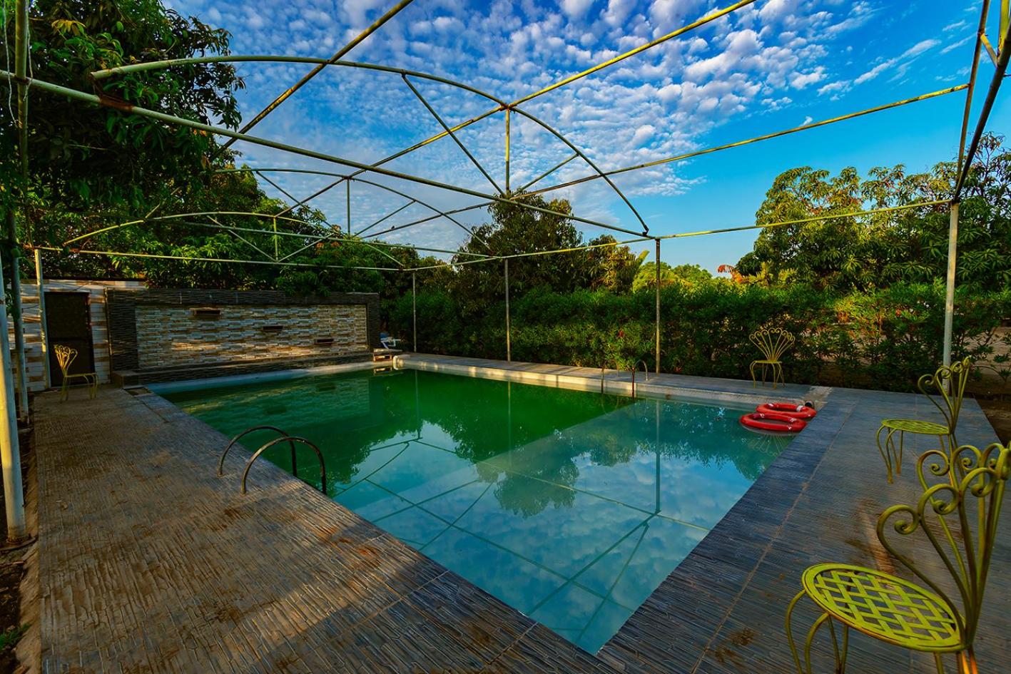 Immerse yourself in relaxation at Amber Resort's stunning outdoor swimming pool, offering a perfect retreat to unwind and soak up the sun with pool and garden views.