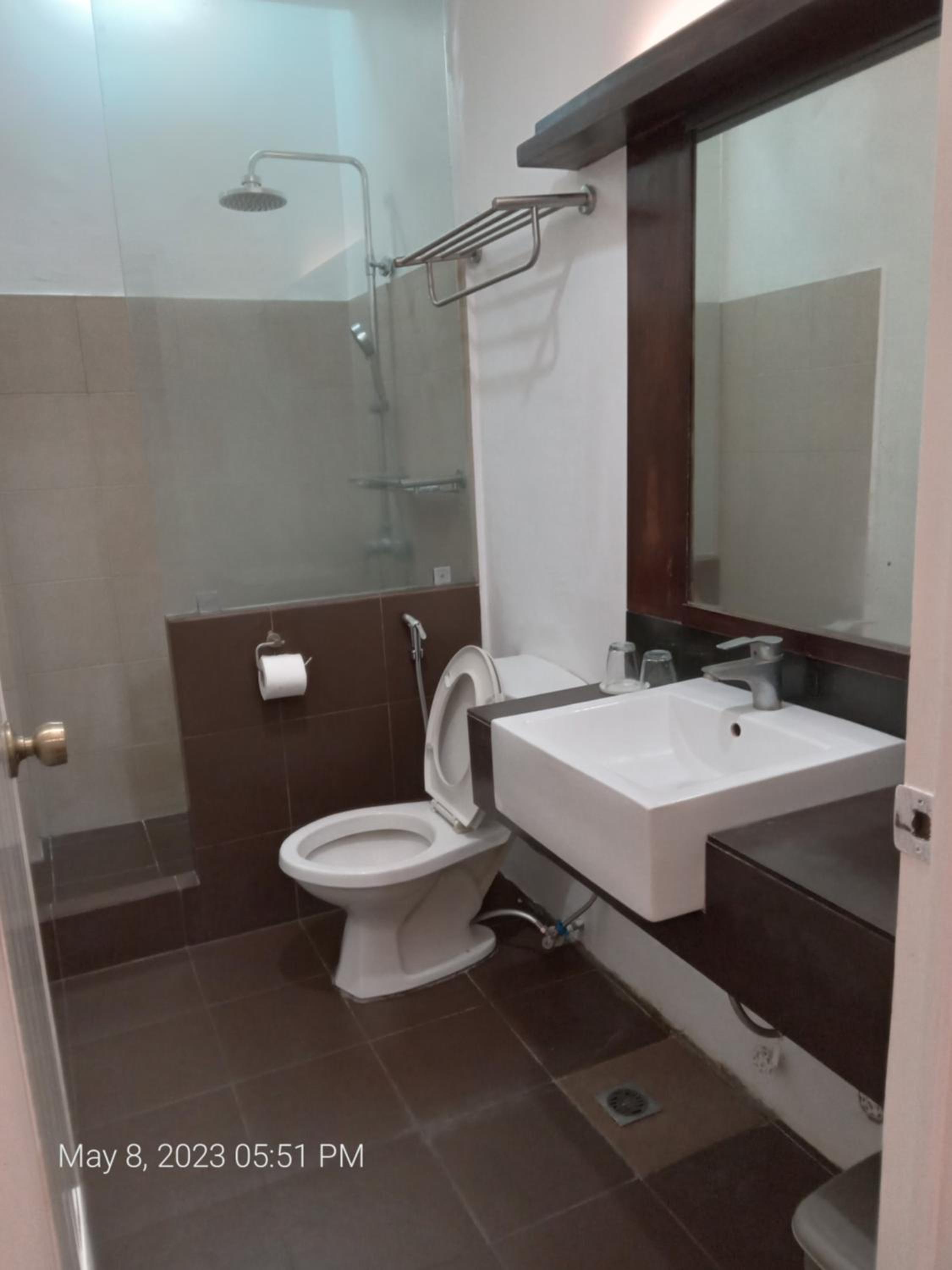Showers and toilet are not cleaned. Towels are old and no wash cloth.