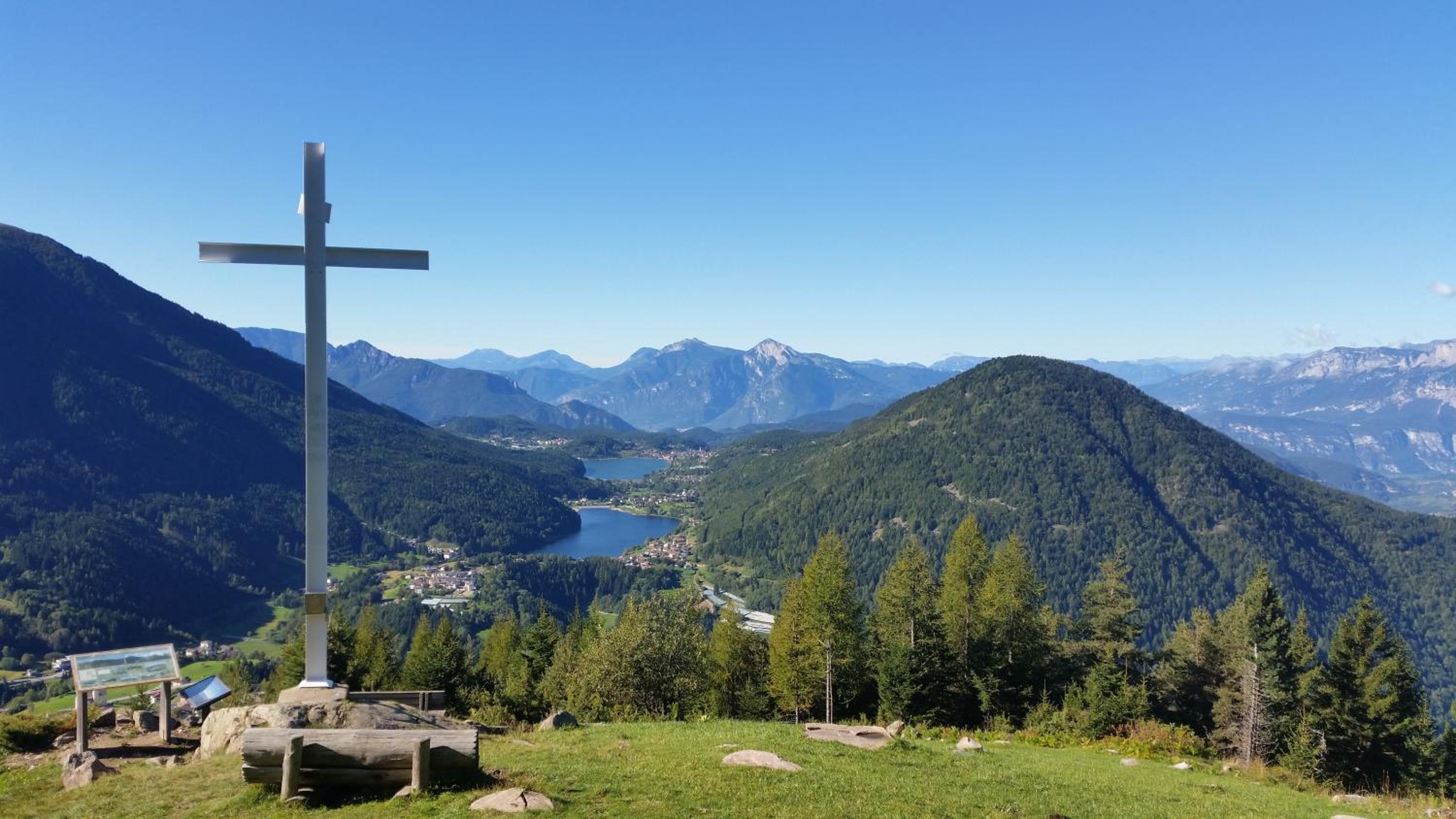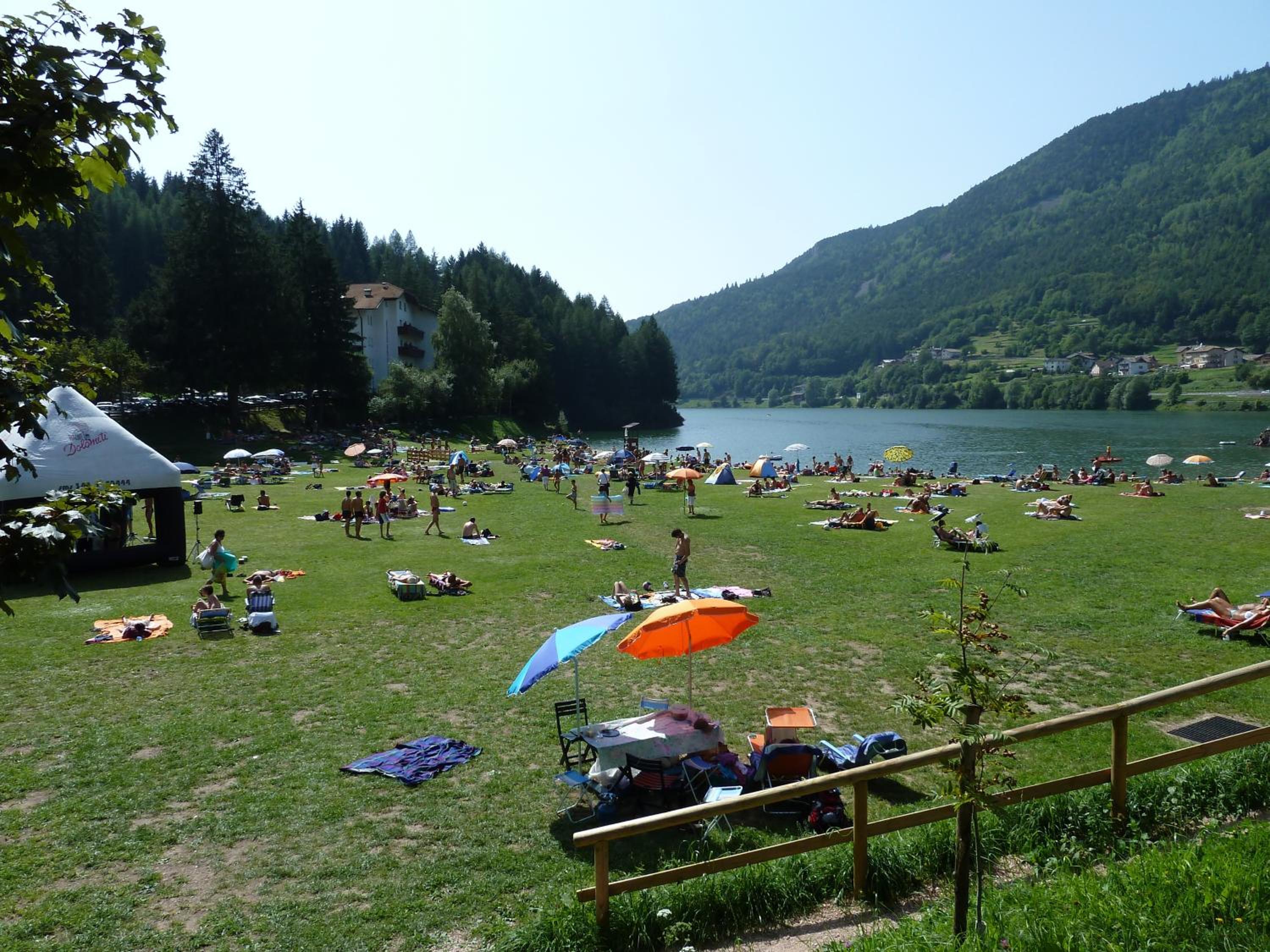 Hatten ein großes Zimmer mit Balkon für zwei Übernachtungen, ausreichendes Frühstück: Wurst, Käse, Croissants, Kuchen, Müsli, Obst; fabelhaft: über eine Stiege geht es zur großen Liegewiese am See; herrliche Laufrunde um die zwei Seen oder Rundwanderweg: Giro de Ceramonte
