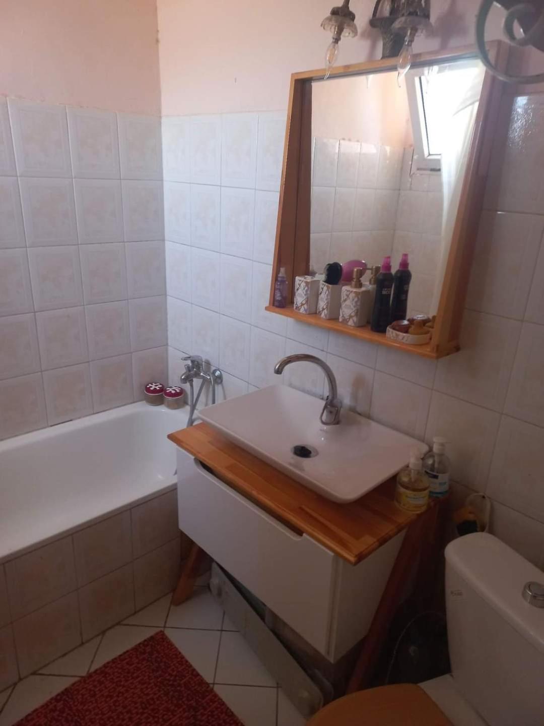 A fürdőszoba és a szoba is régi. A fürdőszoba sürgős elújítasra szorul. Szellőztetni nem lehet a szobát.