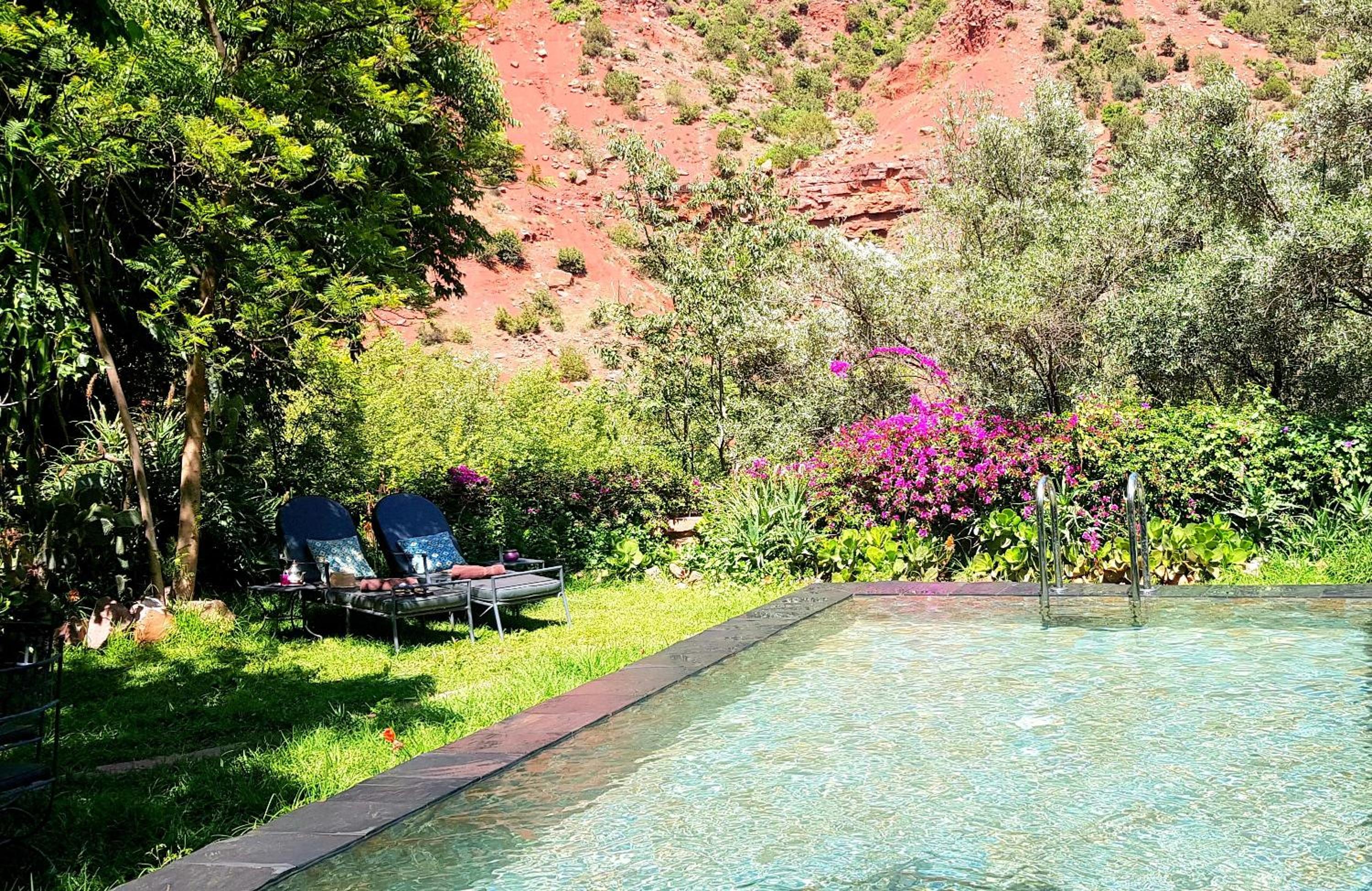 Luxuriate in the open-air bath, private pool, and garden views at Djana Ourika.