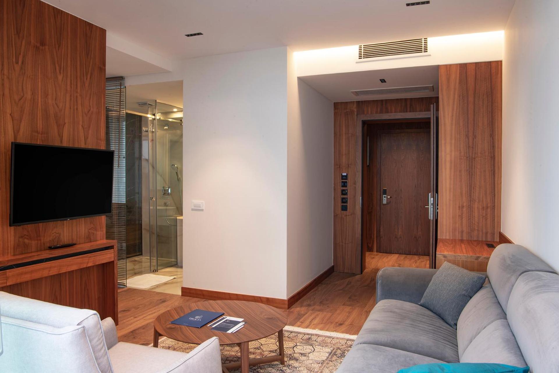 Each room at Hotel Trofta is equipped with air conditioning, a flat-screen TV, and a private bathroom. Guests can enjoy mountain views from their balcony and make use of amenities like room service and free WiFi throughout the property.