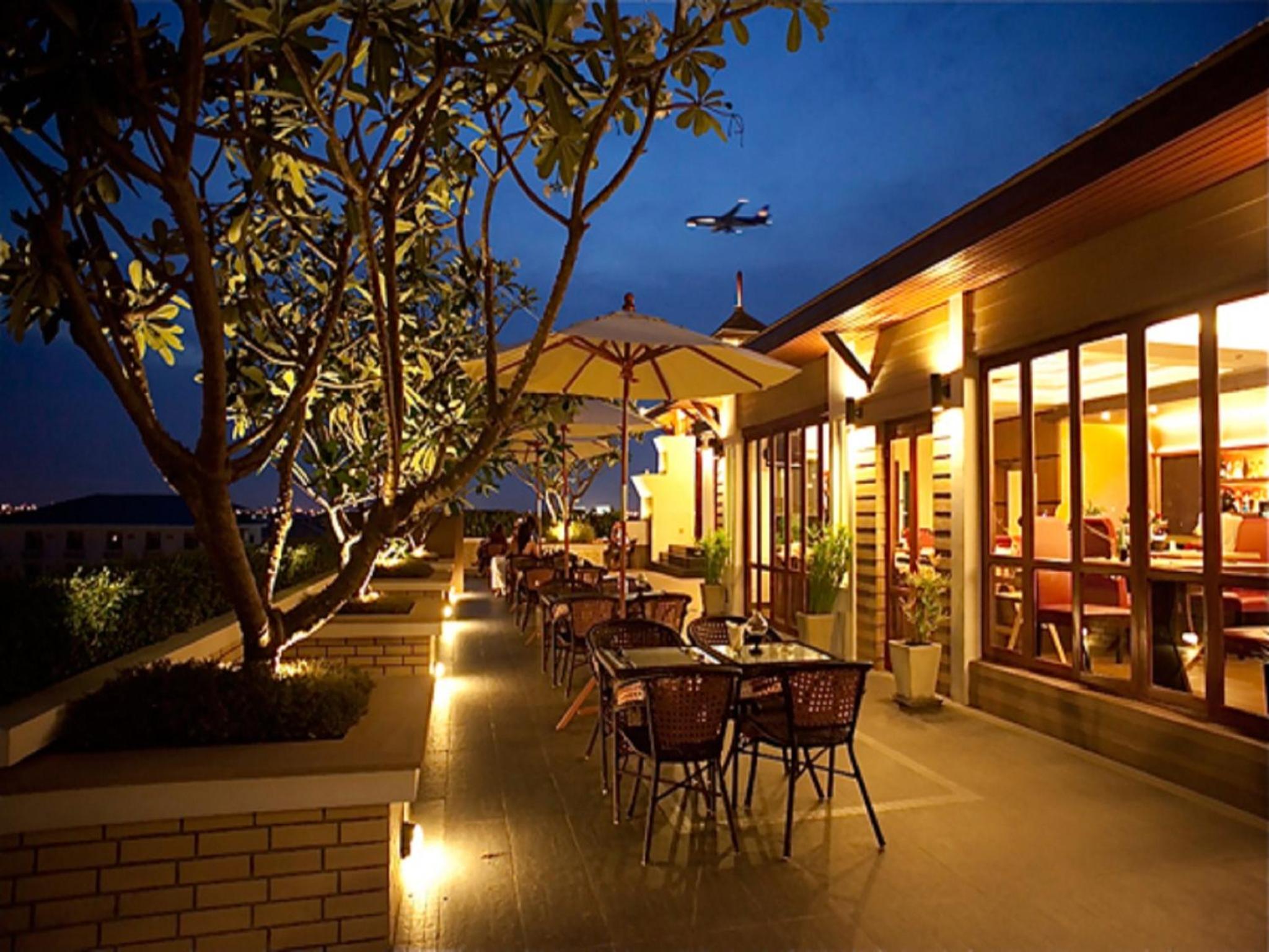 proche de l’aéroport en taxi , pratique pour une dernière nuit sur bangkok, l’hôtel dispose d’un piscine et d’un restaurant en rooftop