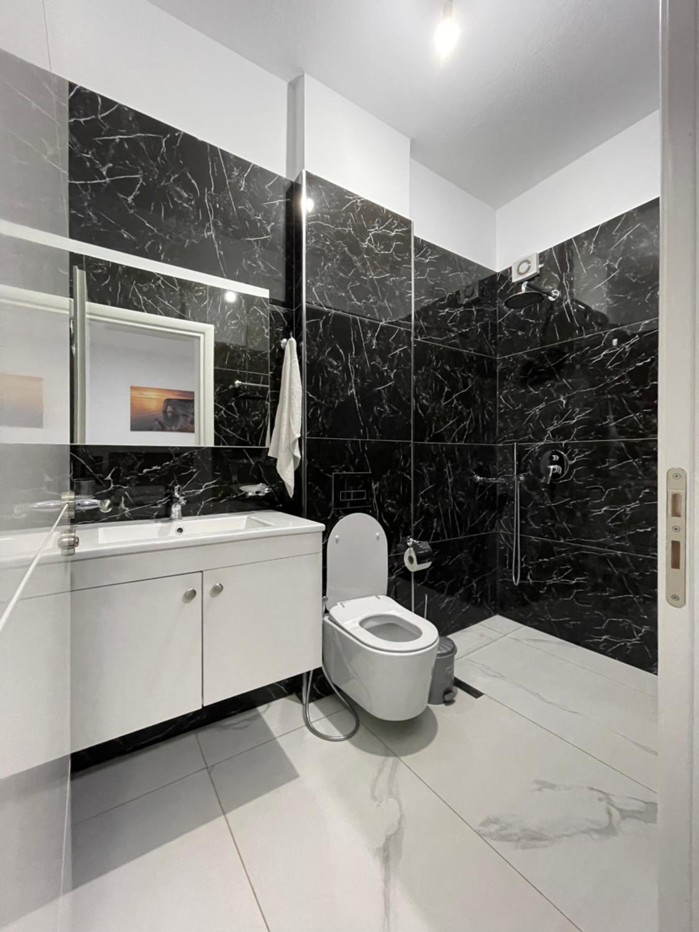 Het is een keurig, iet wat steriel hotel dat gerund wordt door een erg aardige familie. Ze serveren buiten op het terras een lekker divers ontbijt. Niks mee..behalve de koffie. Dit was de enige keer tijdens onze Albanië trip dat we geen lekkere koffie hebben gekregen. Wij hadden een lekkere ruime en moderne kamer met een prima bed. De badkamer is ook goed al zou een douchescherm of -gordijn geen overbodige luxe.