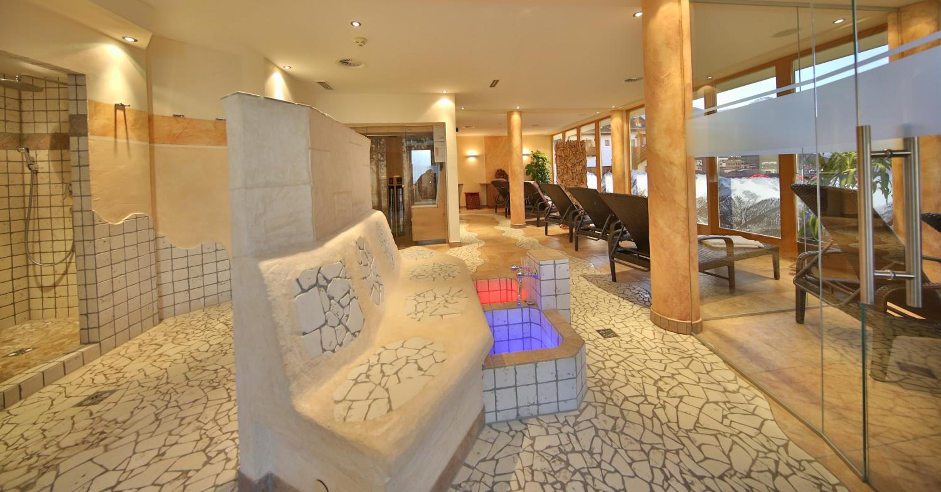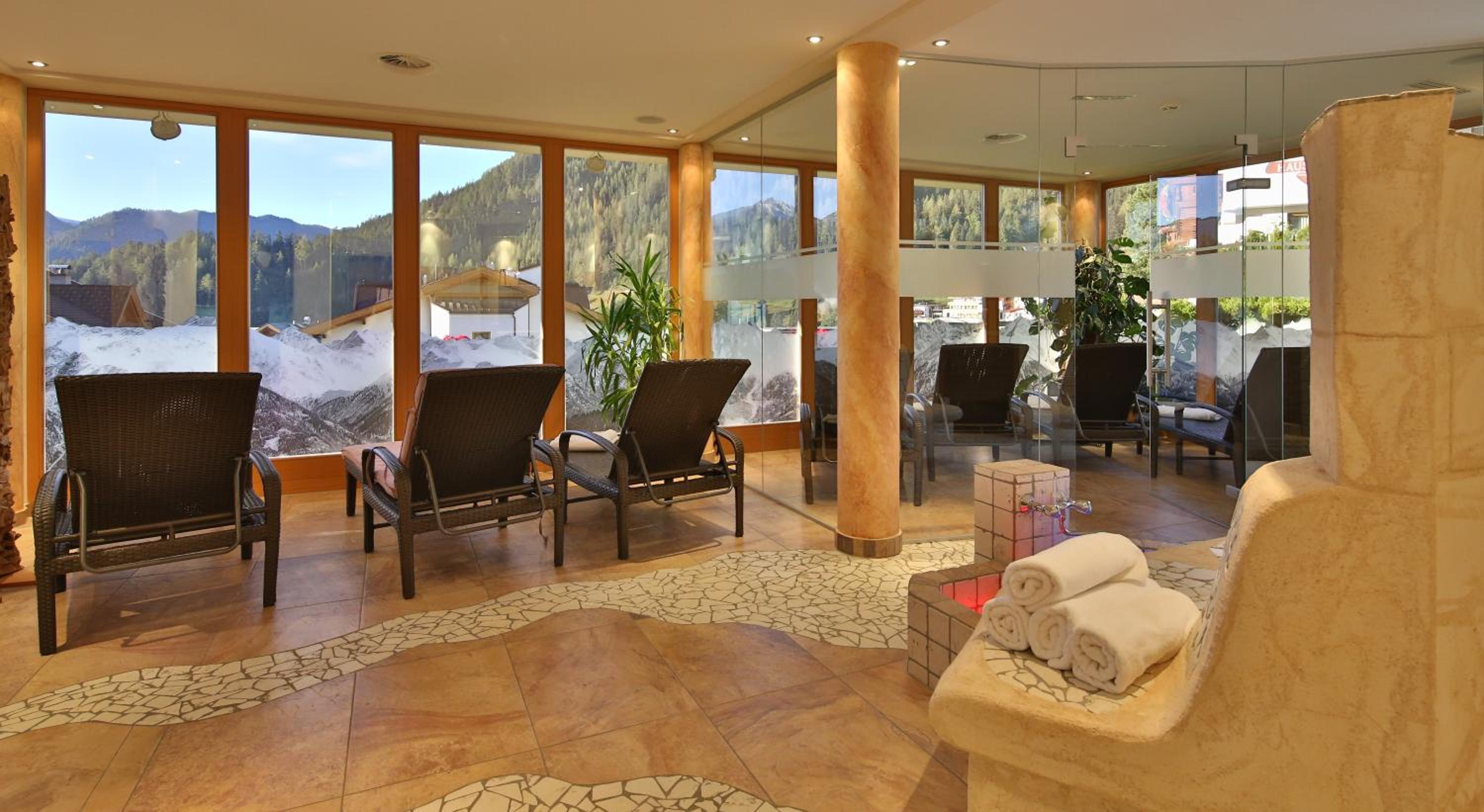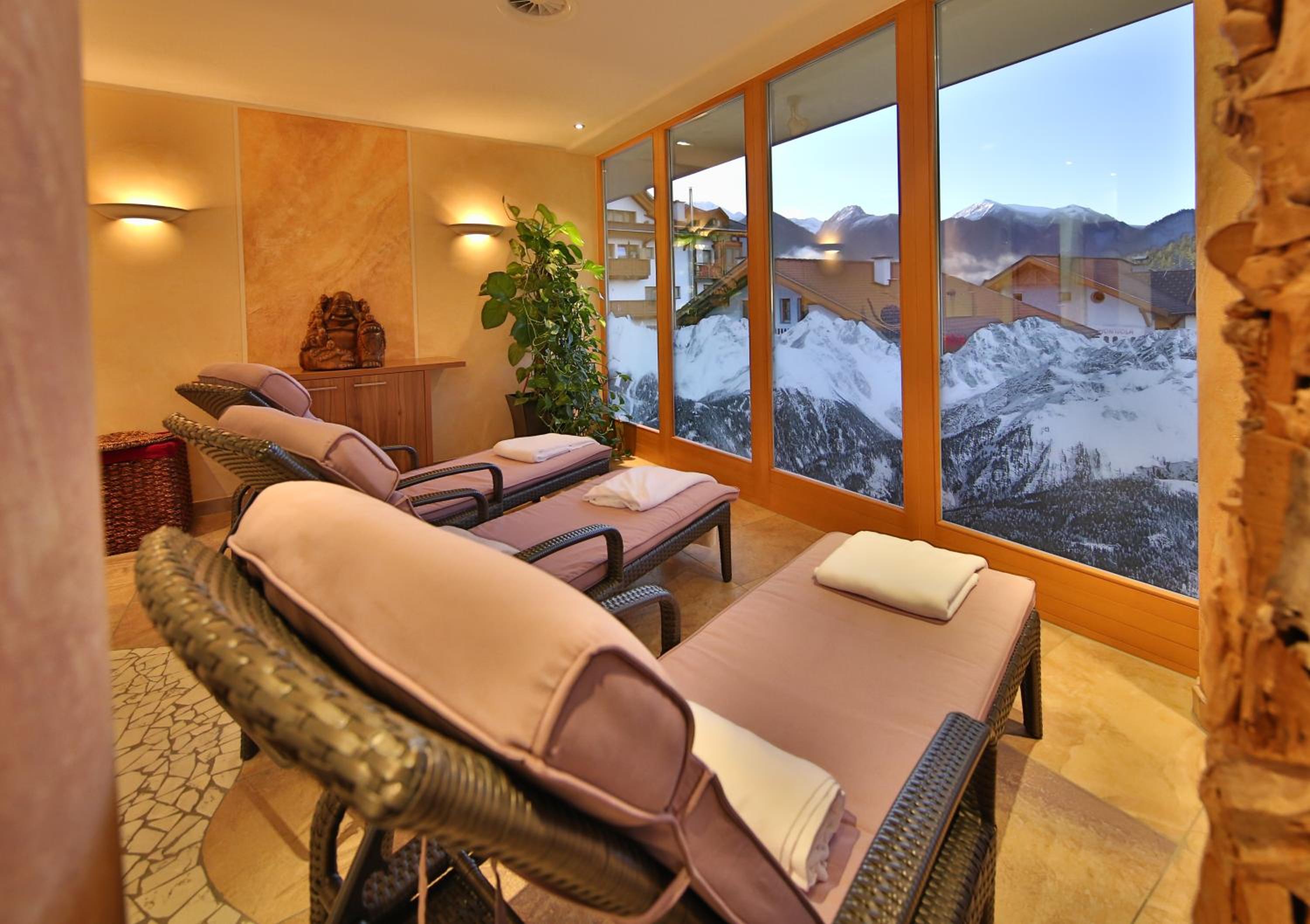 Relaxing Spa and Wellness: Indulge in relaxation at the spa area with panoramic mountain views, featuring a sauna, steam bath, and a variety of wellness treatments. Unwind after a day on the slopes with a soothing massage.