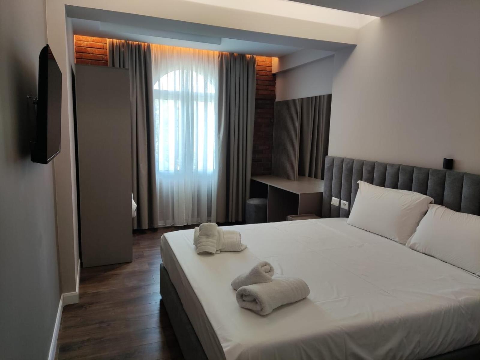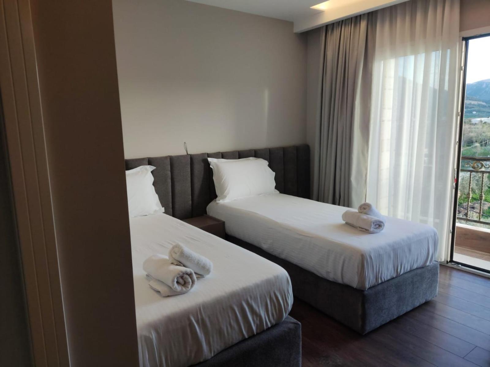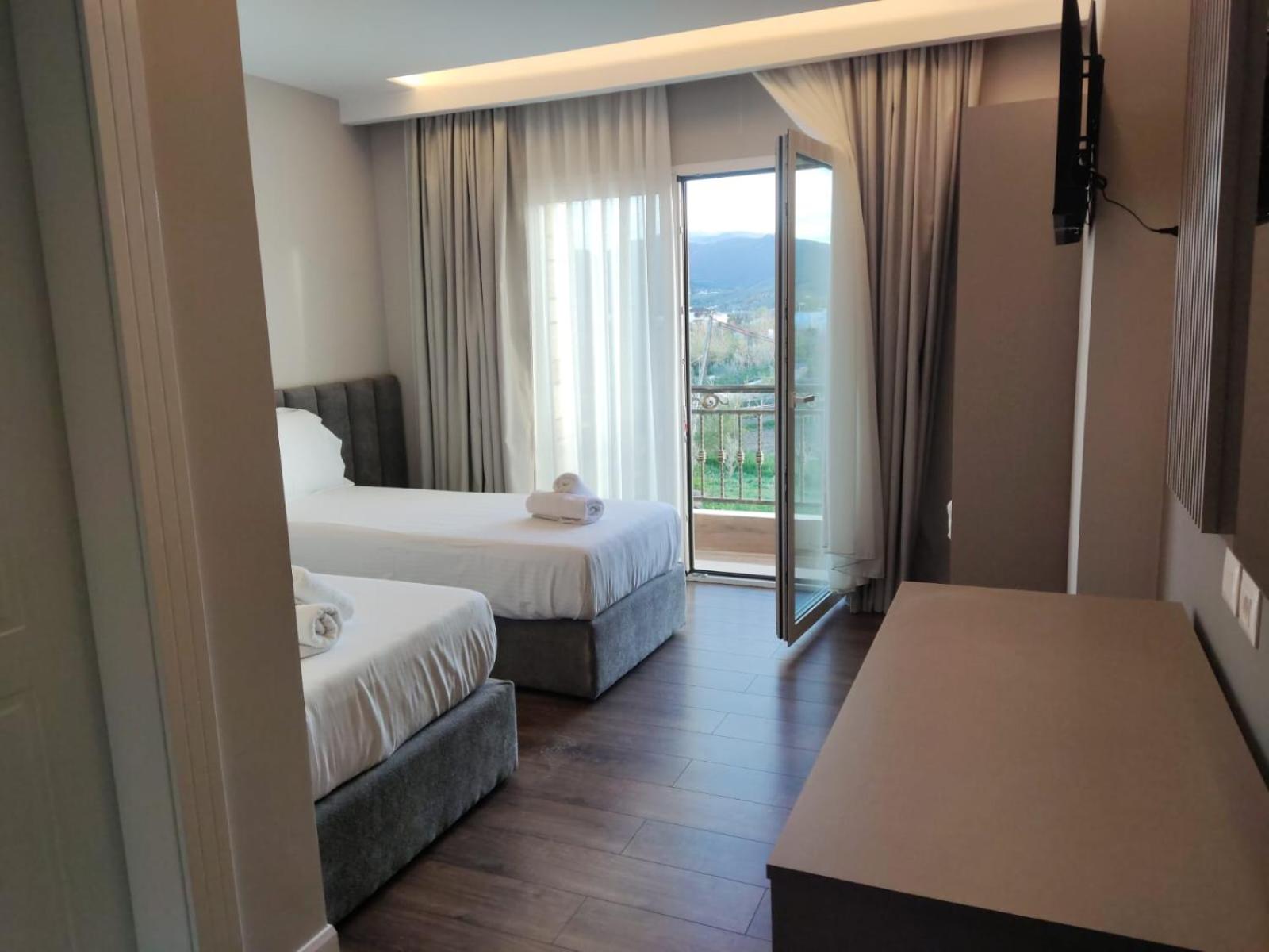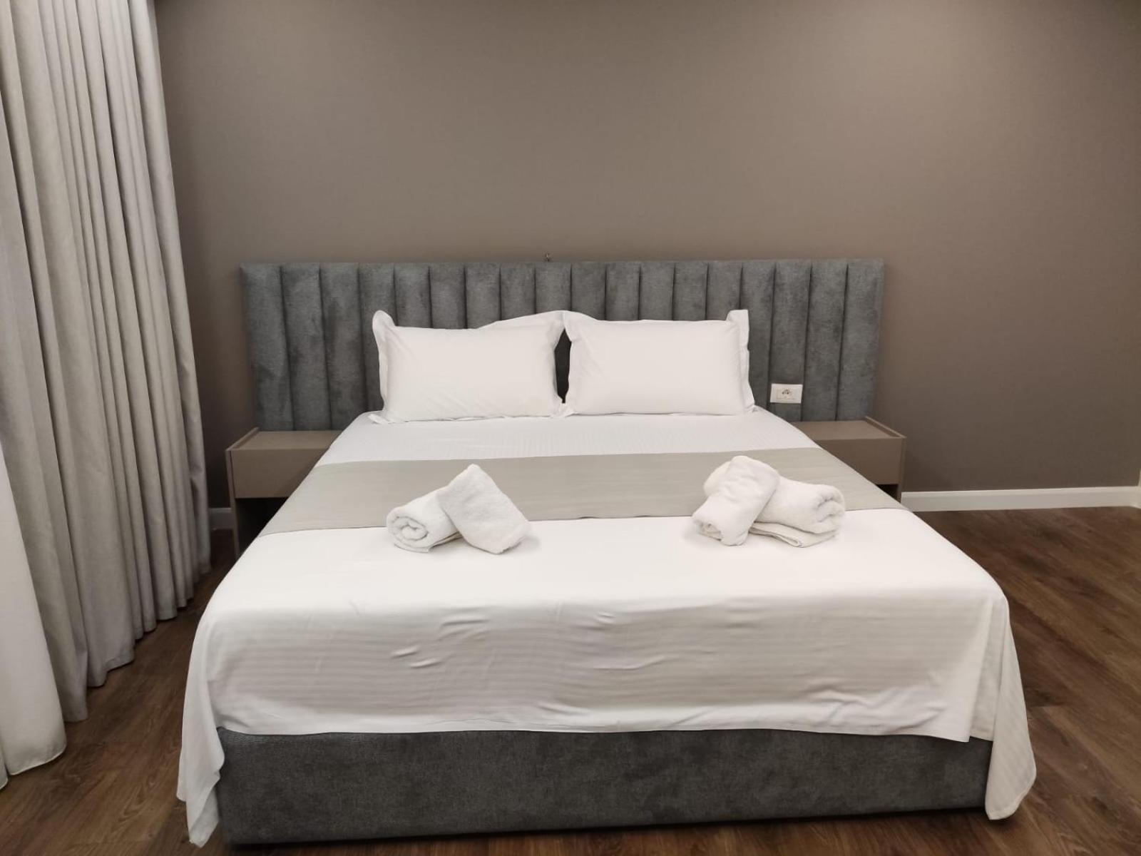 De kamers waren heel nieuw en modern. Van alle gemakken voorzien. Goede airco, goede douche, gratis parking. De prijs was meer dan redelijk. We kregen elke dag een typisch Albanees ontbijt en er was meer dan voldoende met heel lekkere beignets.