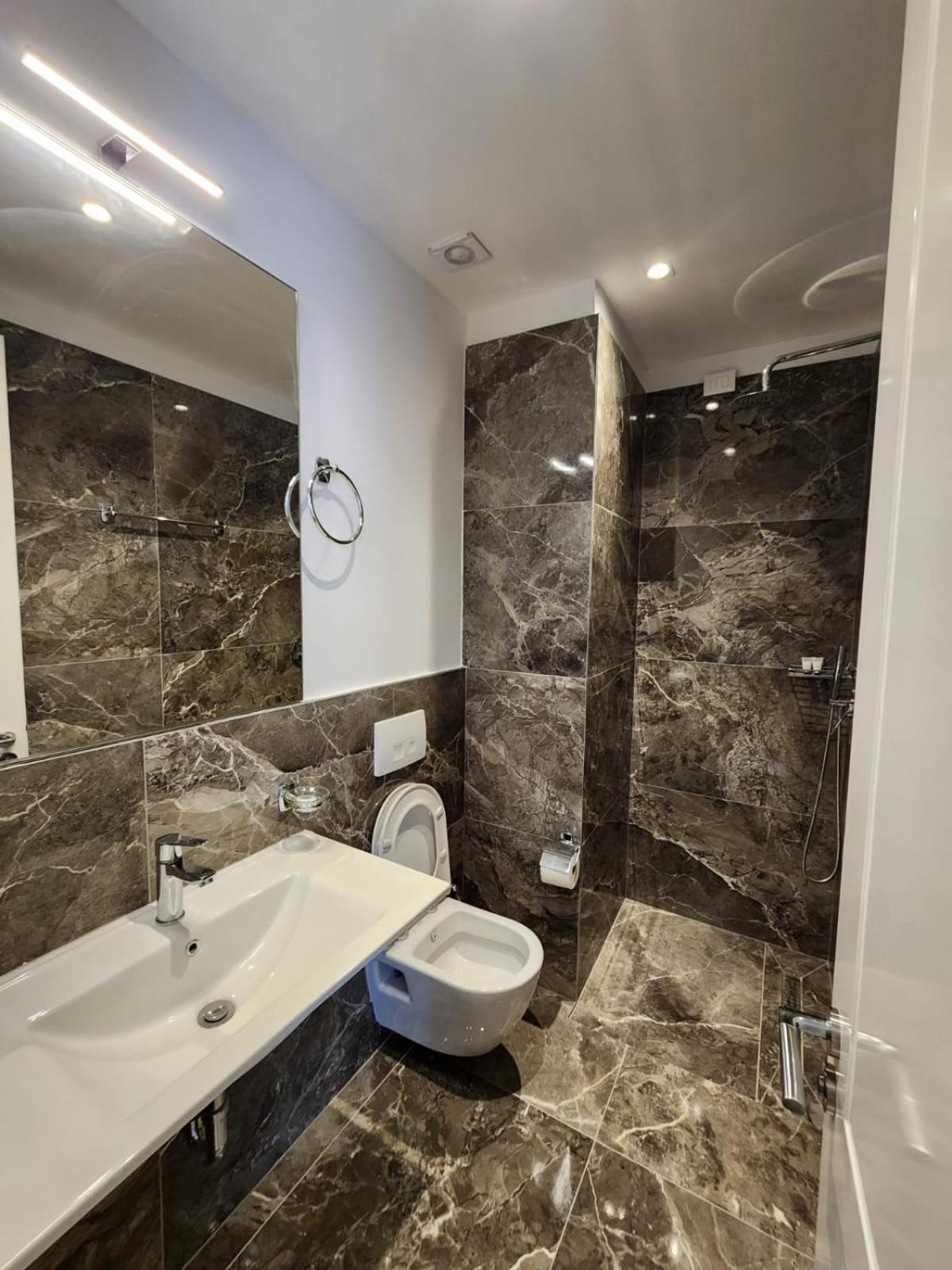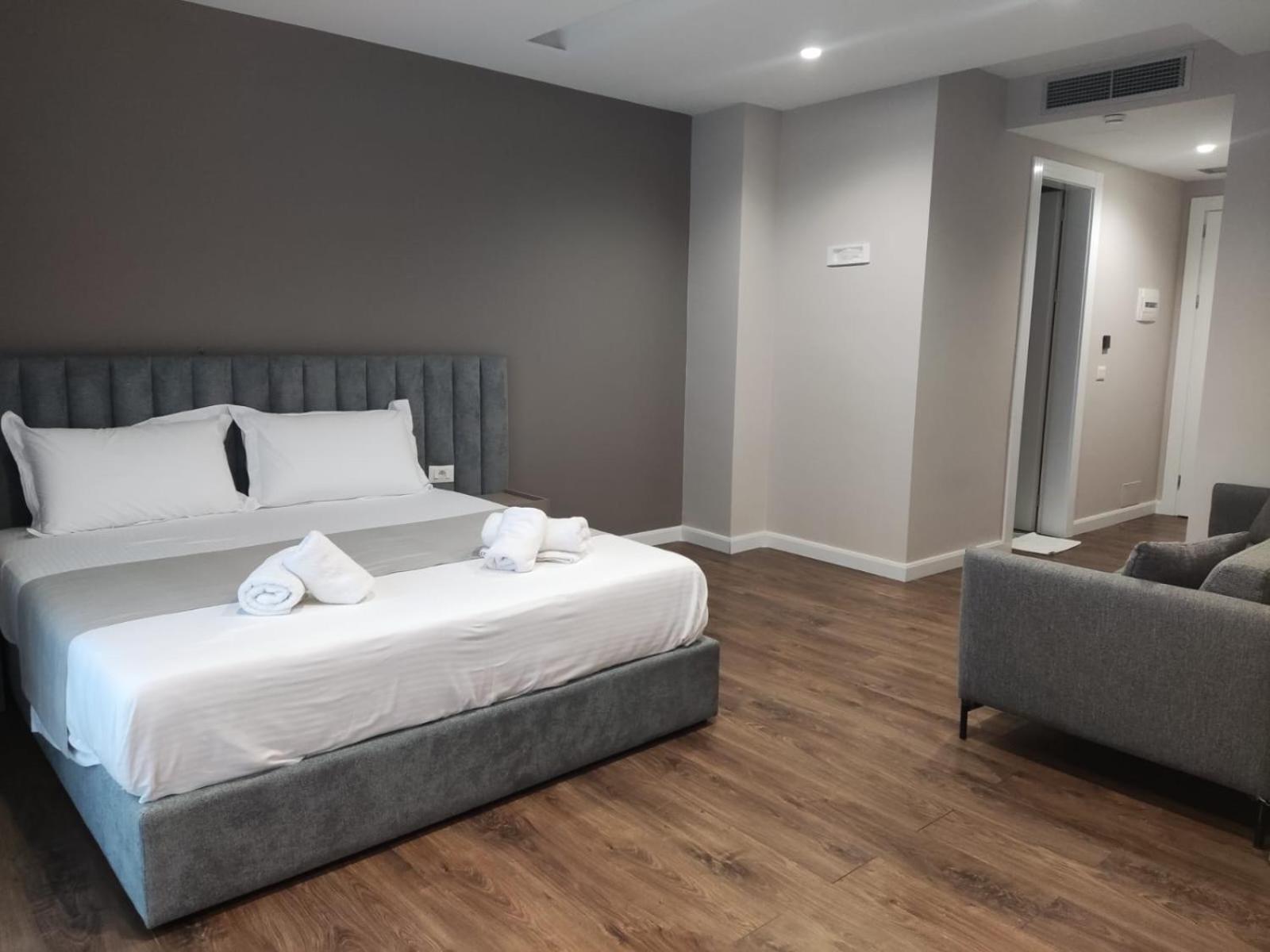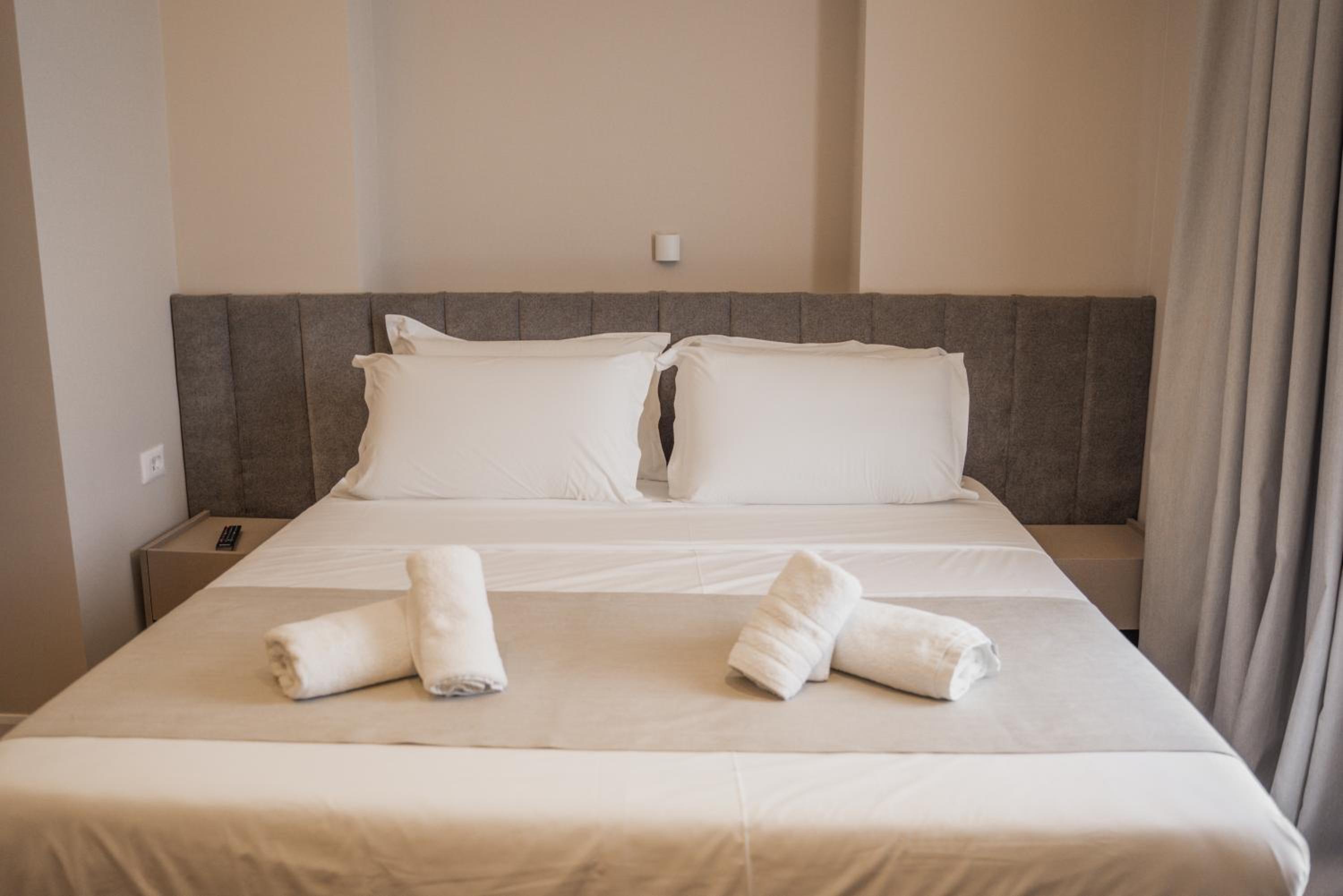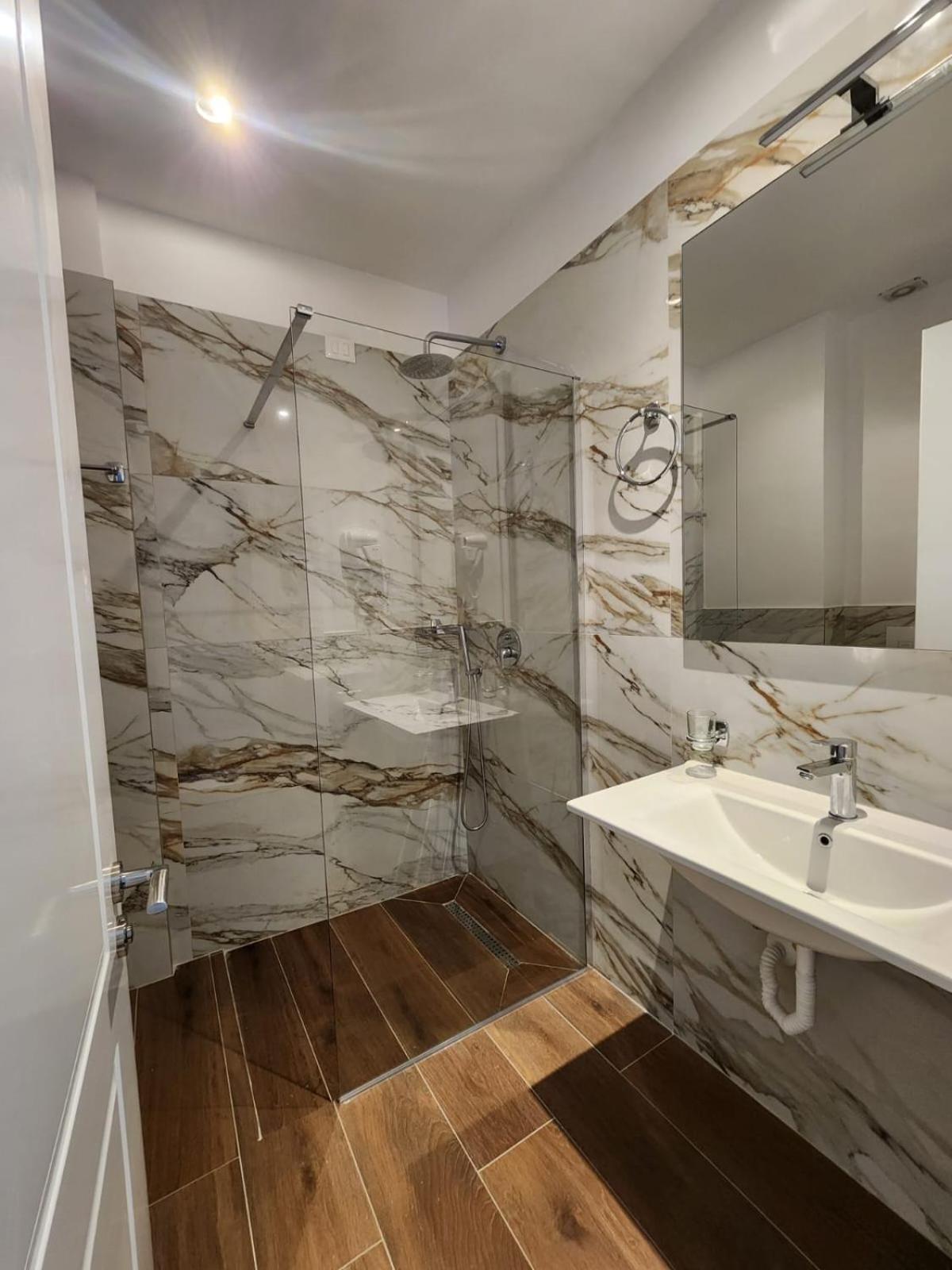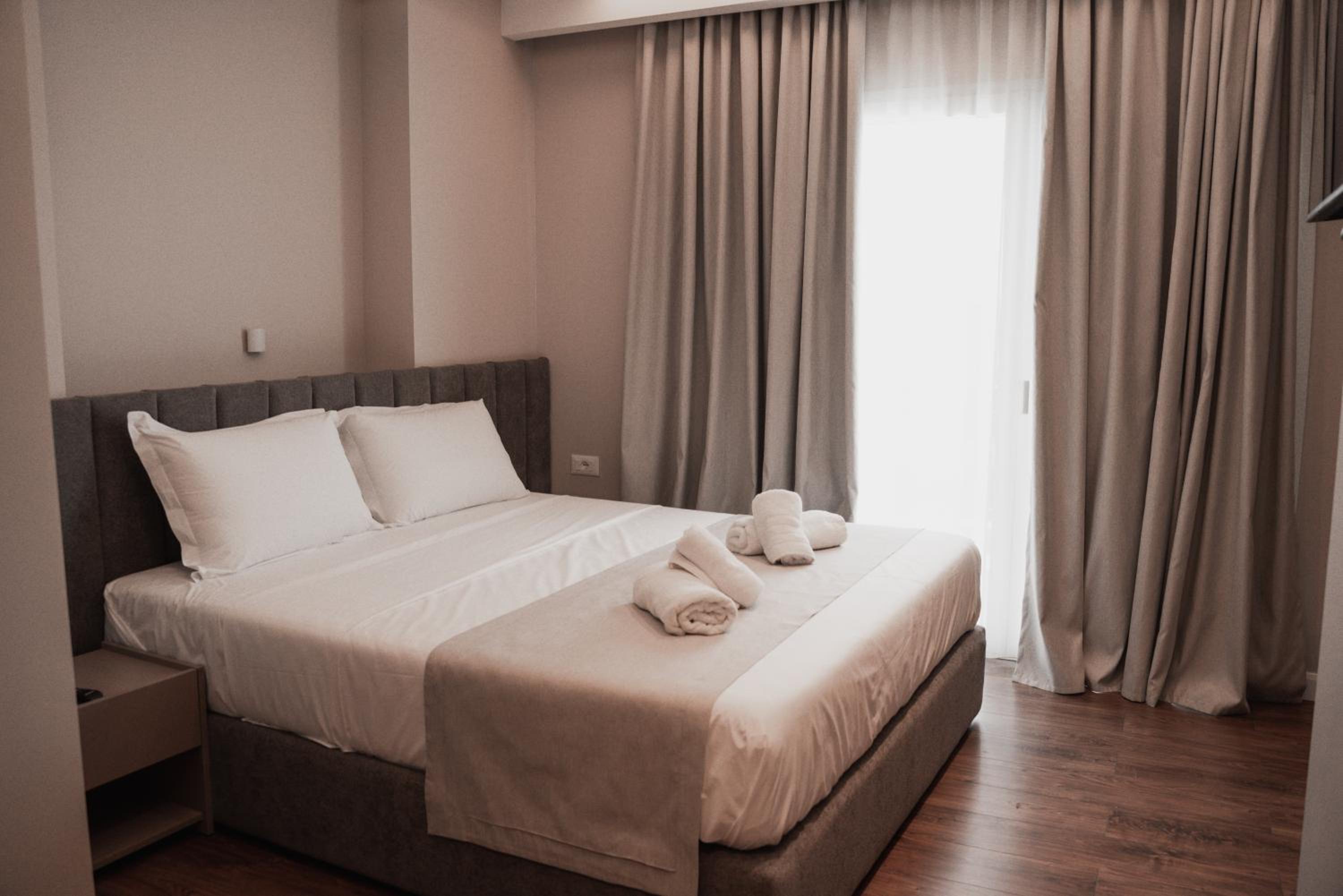 De kamers waren heel nieuw en modern. Van alle gemakken voorzien. Goede airco, goede douche, gratis parking. De prijs was meer dan redelijk. We kregen elke dag een typisch Albanees ontbijt en er was meer dan voldoende met heel lekkere beignets.