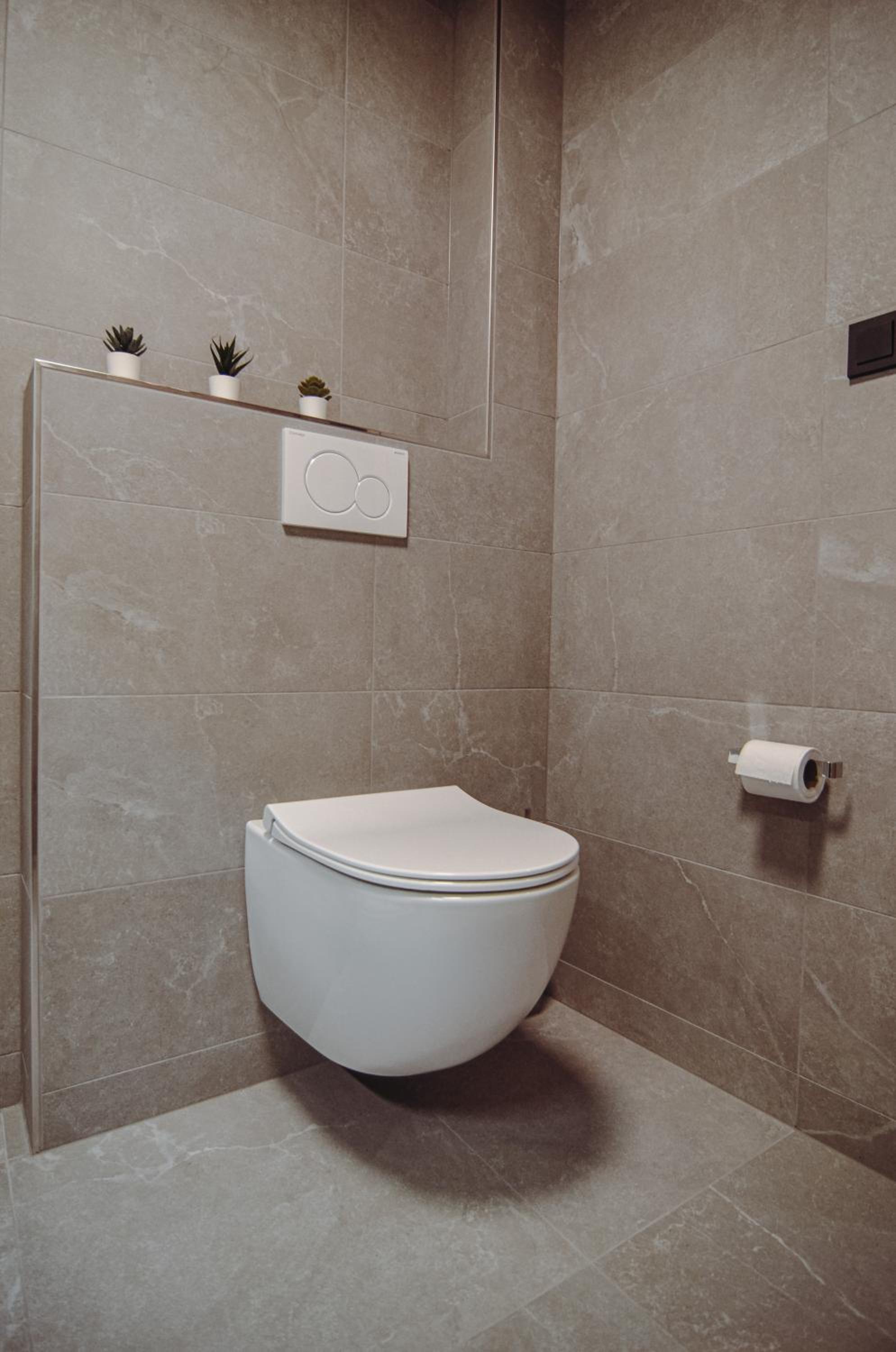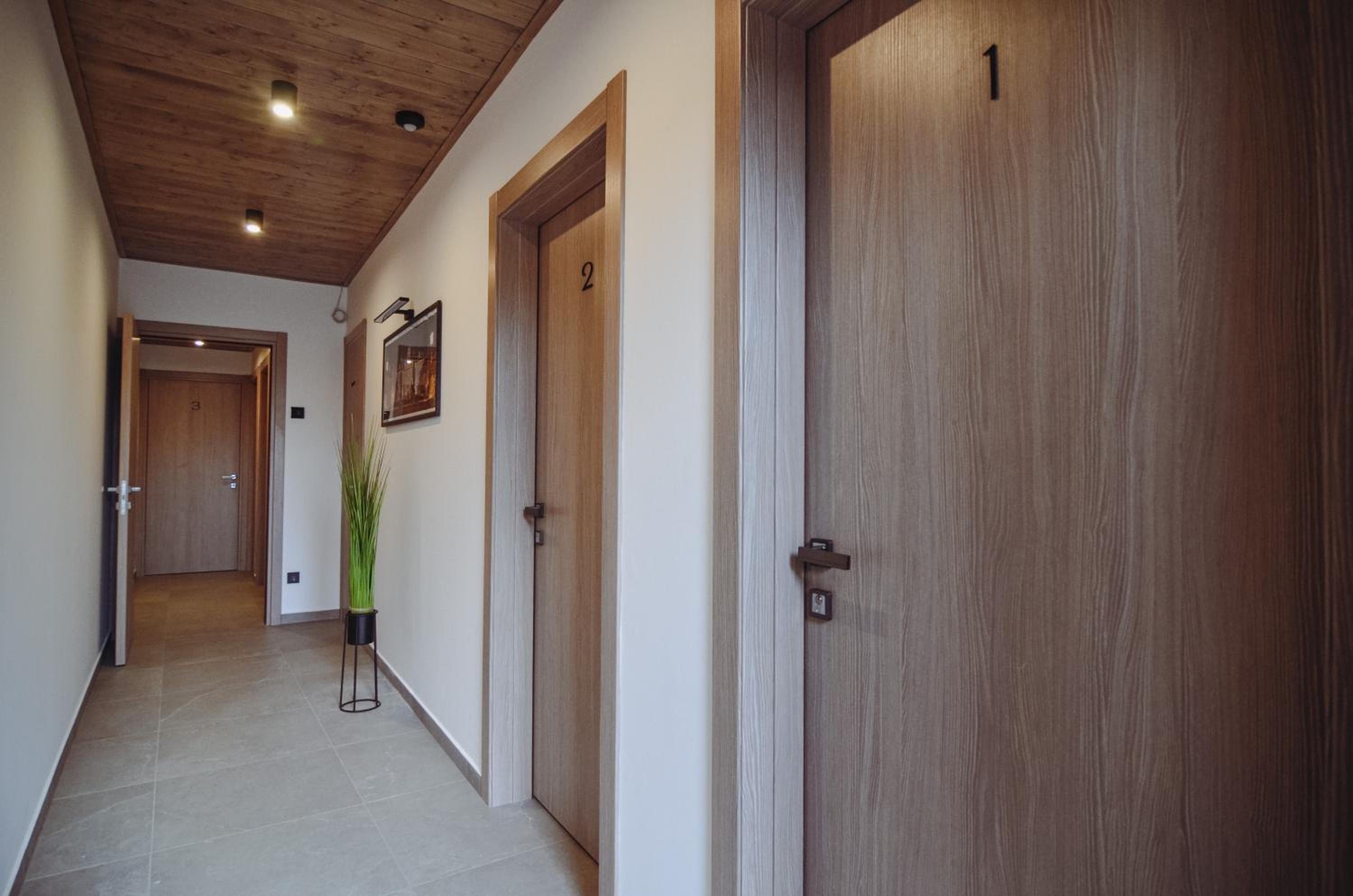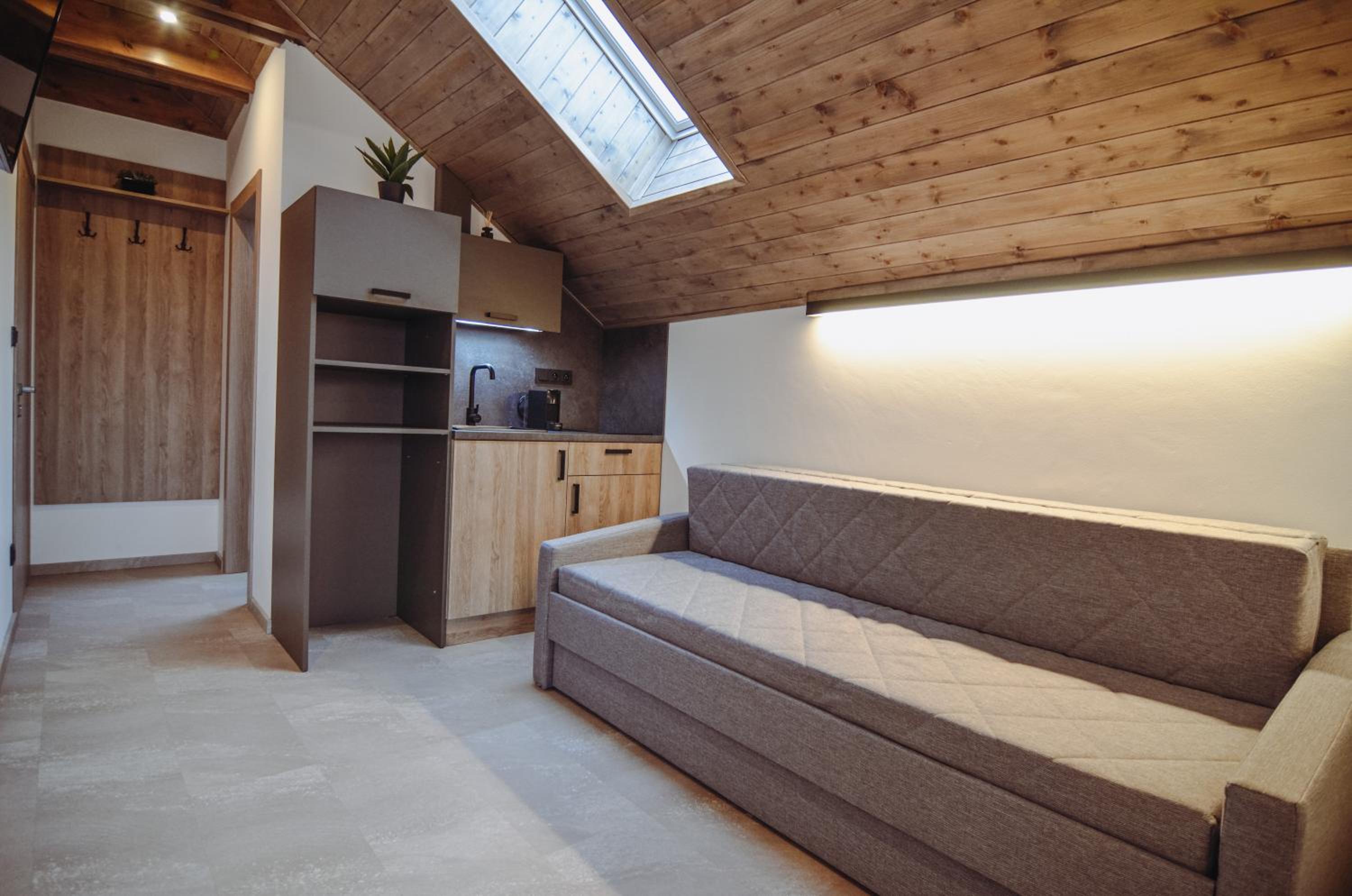 Ubytování není dobře odhlučněné, slyšeli jsme veškeré aktivity svých sousedů - ať již toaletní tak i ostatní. Studio č.1 je velmi malé, téměř budilo dojem předělané garáže - jediné venkovní okno bylo odpoledne již ve stínu a moderně šedivé obklady dělaly místnost ještě tmavší. Nicméně spalo se zde dobře