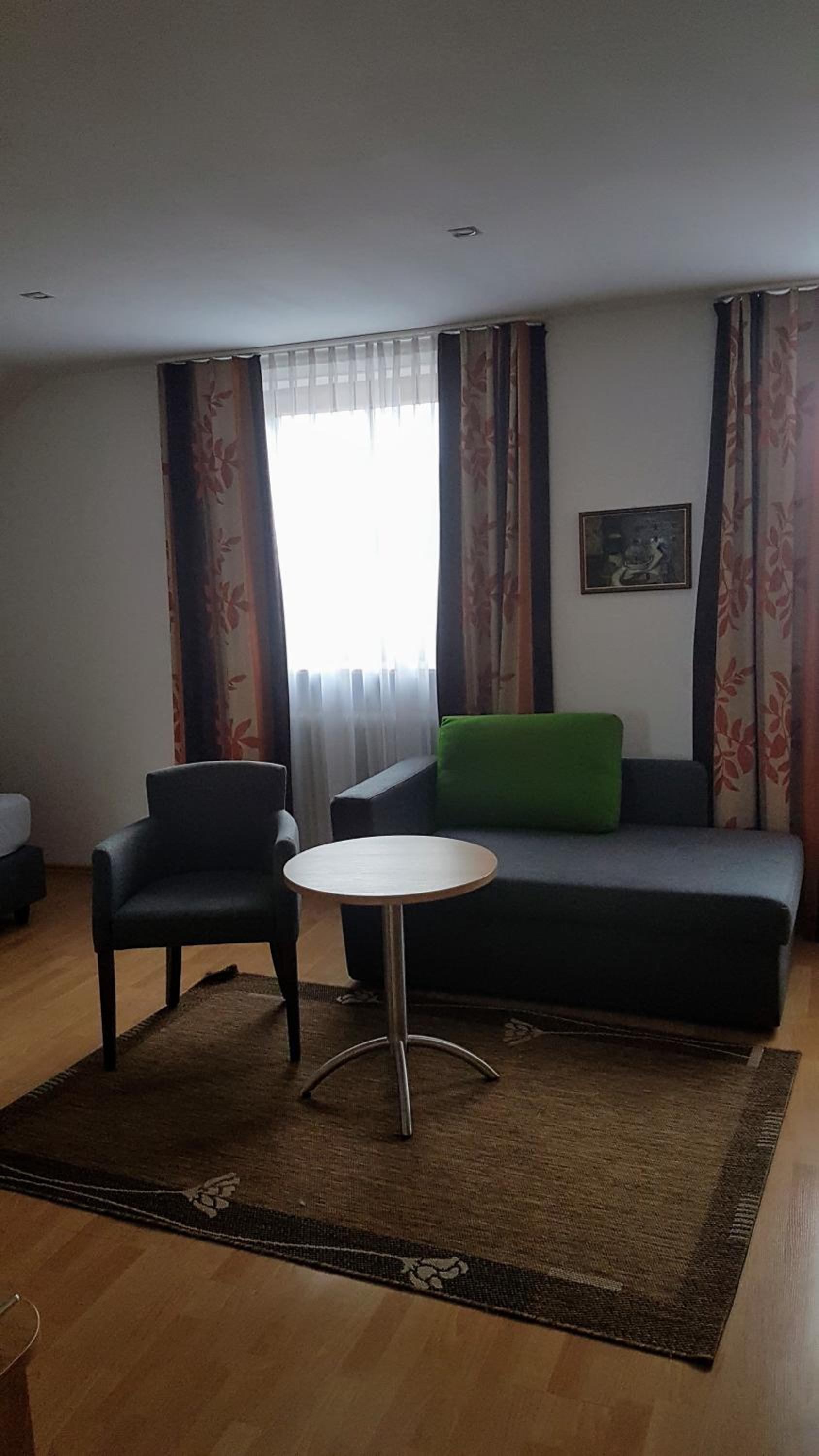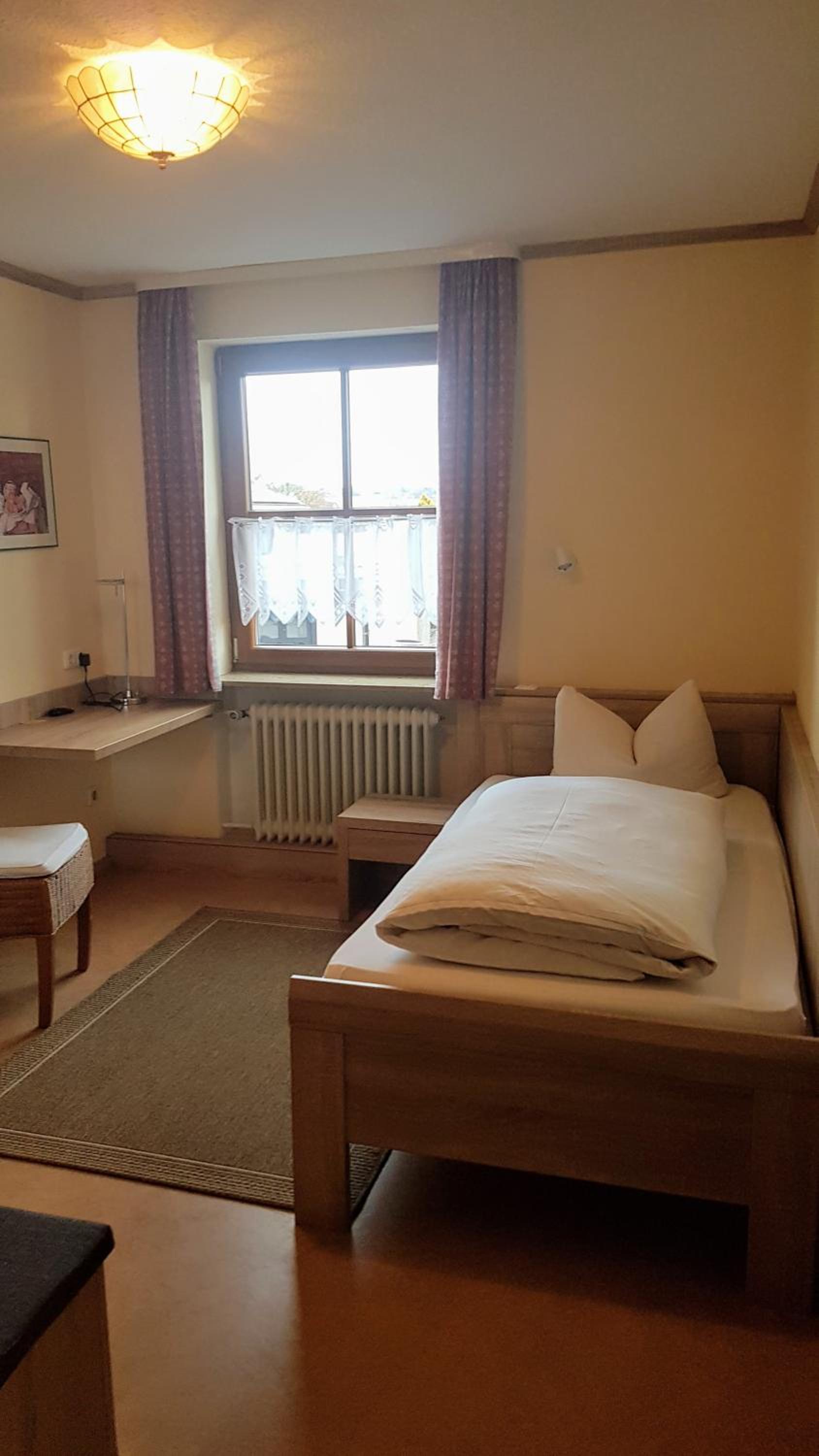 Tolles Zimmer mit Erker dafür ohne Balkon. Essen war sehr gut. Beim Frühstück war alles bereit ohne Personal - aber gut vorbereitet . Parkplatz direkt vor dem Gasthof.