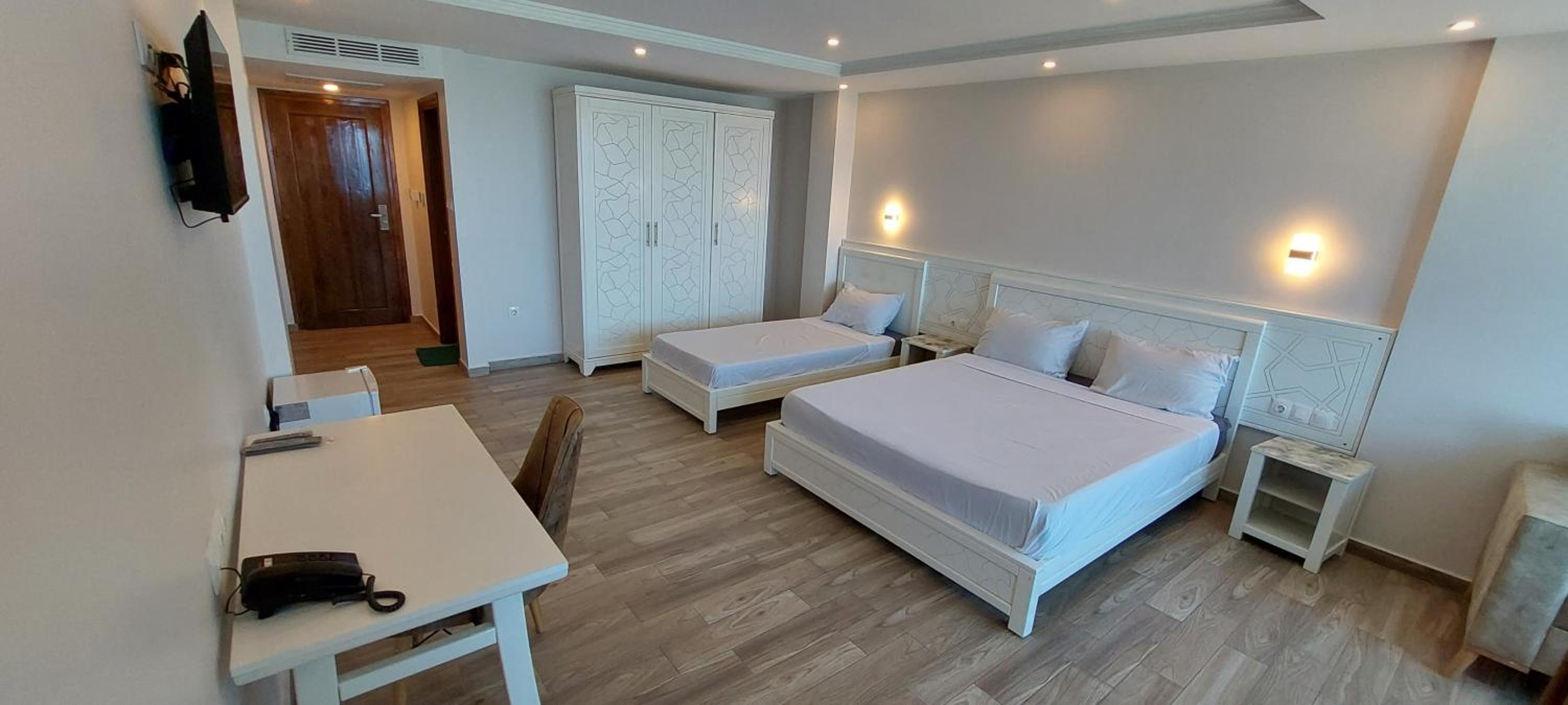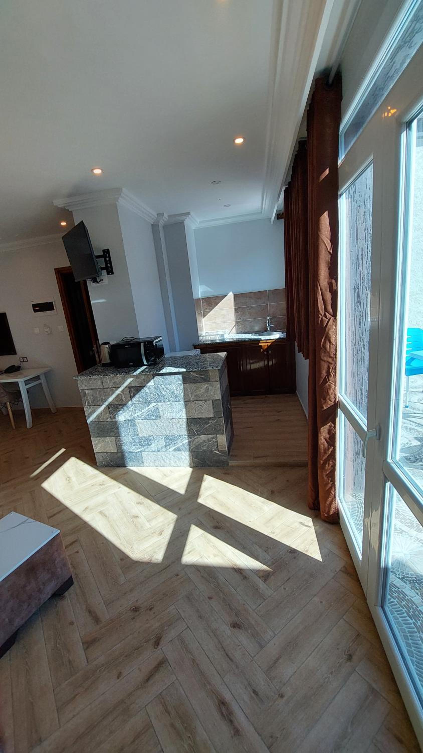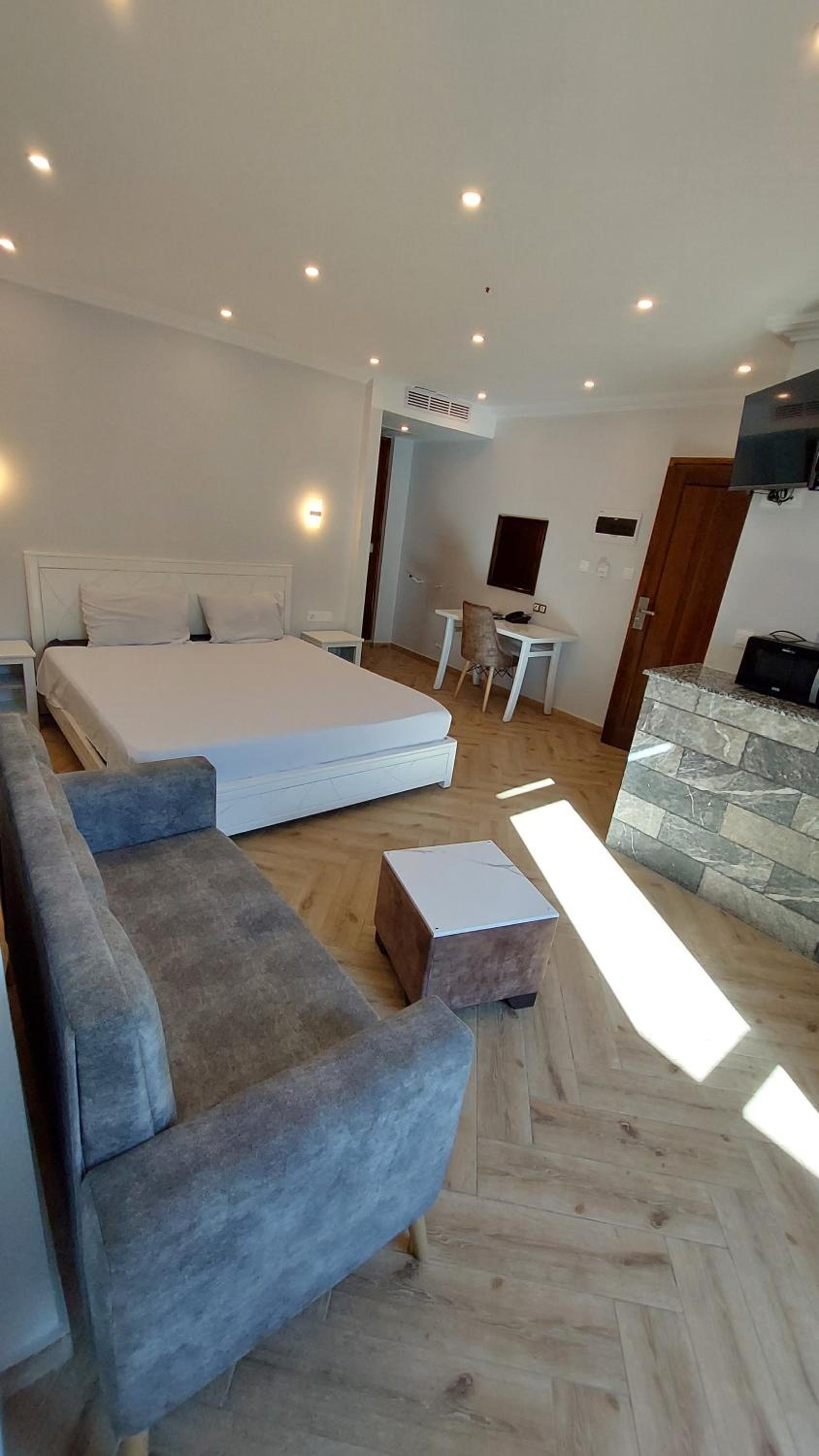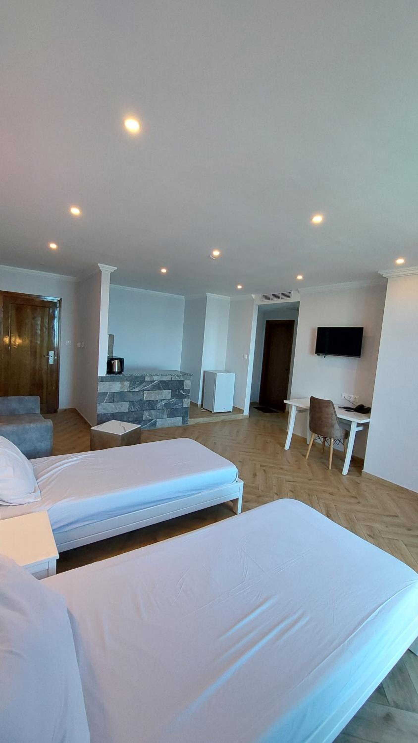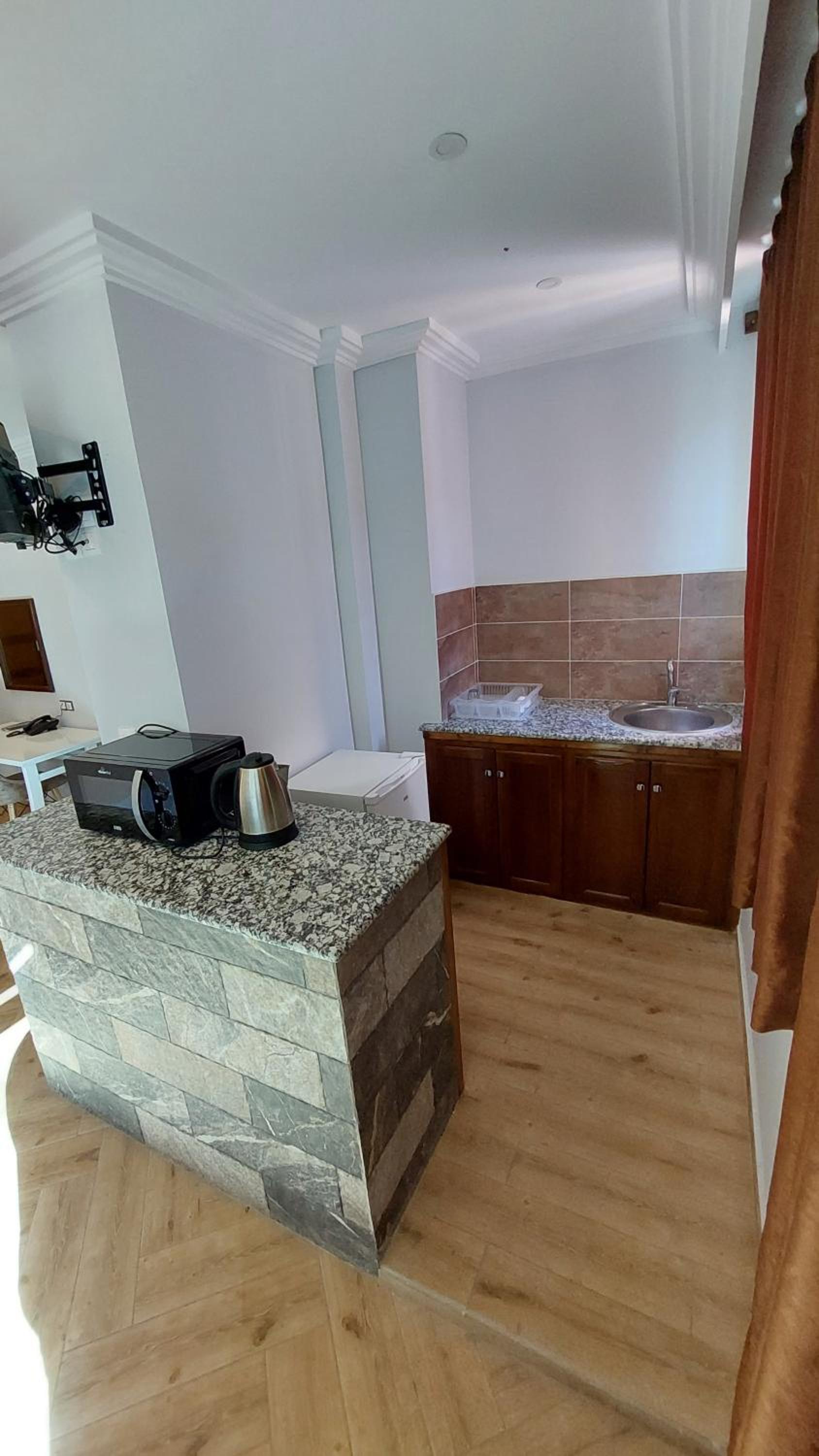 A very neat and clean place to stay. The hotel is located in beautiful Tichy, facing kilometres of beaches from public and private and green mountains behind you. It has a great view all day and all night. You get to eat delicious food also just downstairs or a few steps away from the hotel. The location is perfect as it has many restaurants, traditional wear shops, supermarkets, and a pharmacy all in walking distance. We booked a suite since we were travelling as a family, so we enjoyed our beautiful big balcony facing the sea. The room was incredibly clean, all the linens were clean, the smell was amazing, and all amenities were provided in the kitchen. The staff is very friendly and helpful, too. They are attentive and ready to help their guest. Thank you for our great experience. We will definitely come back again.